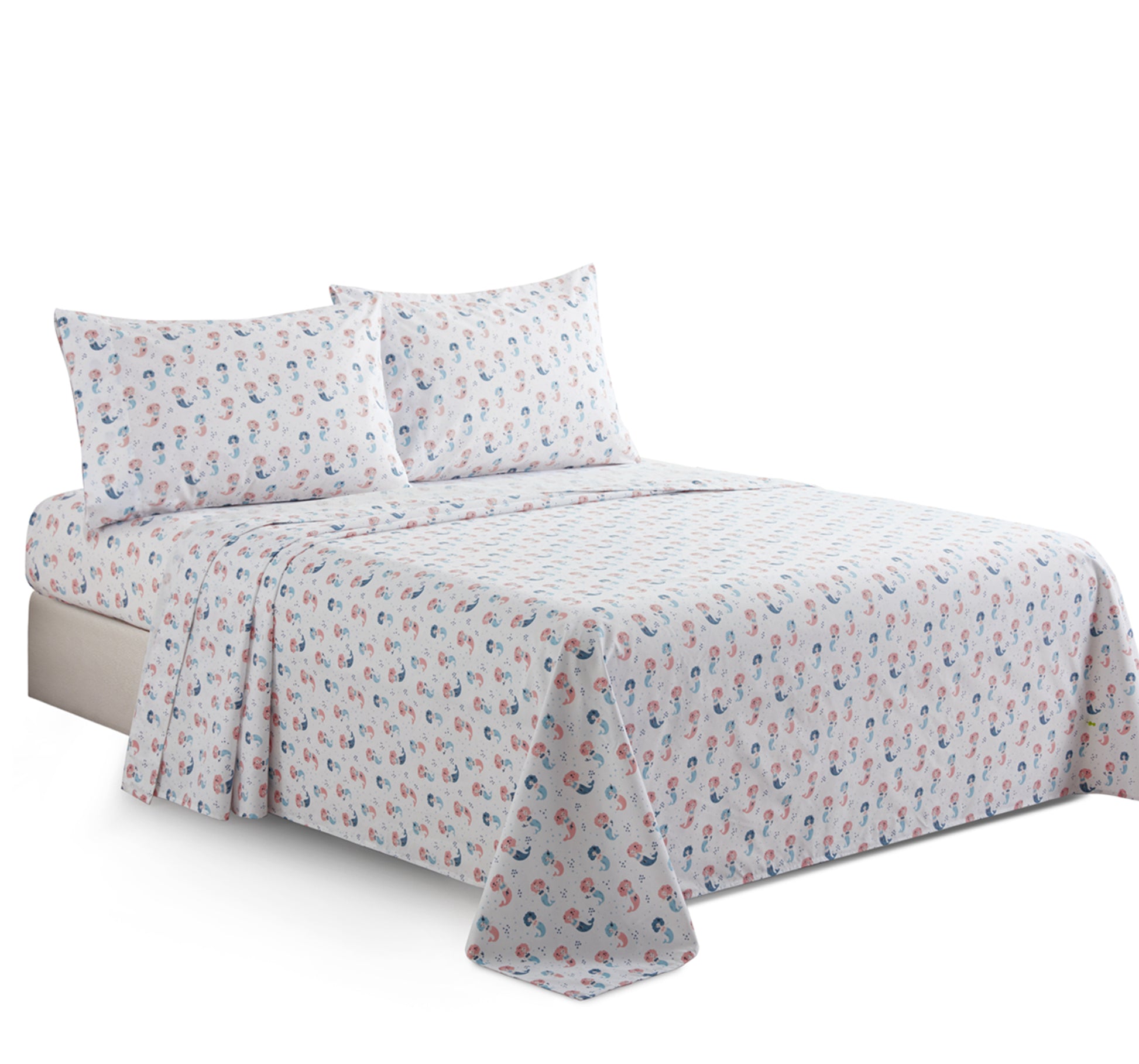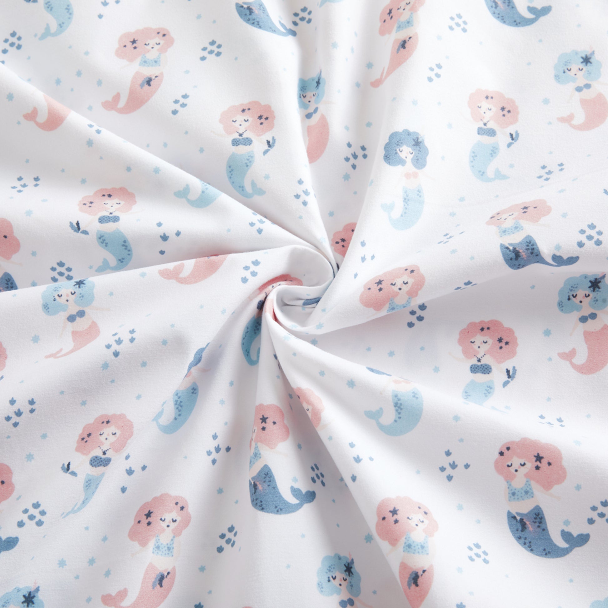 Kids Girls Toddlers Printed 600 Thread Count Soft Deep Pocket Cotton Percale All Season Bedding Sheet Set, Cartoon Mermaid