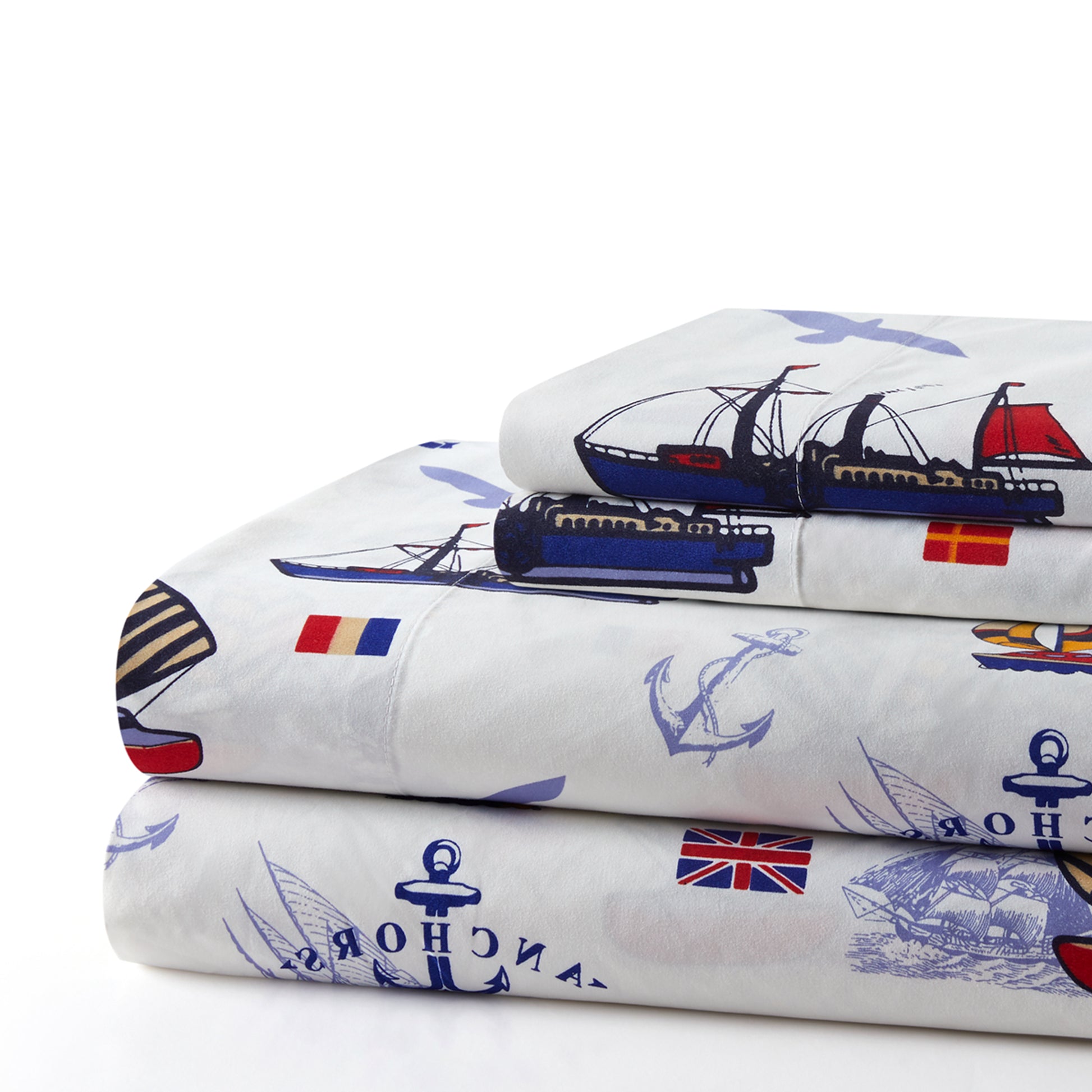 Kids Boys Toddlers Printed 600 Thread Count Soft Deep Pocket Cotton Percale All Season Bedding Sheet Set, Nautical Sailing Boat