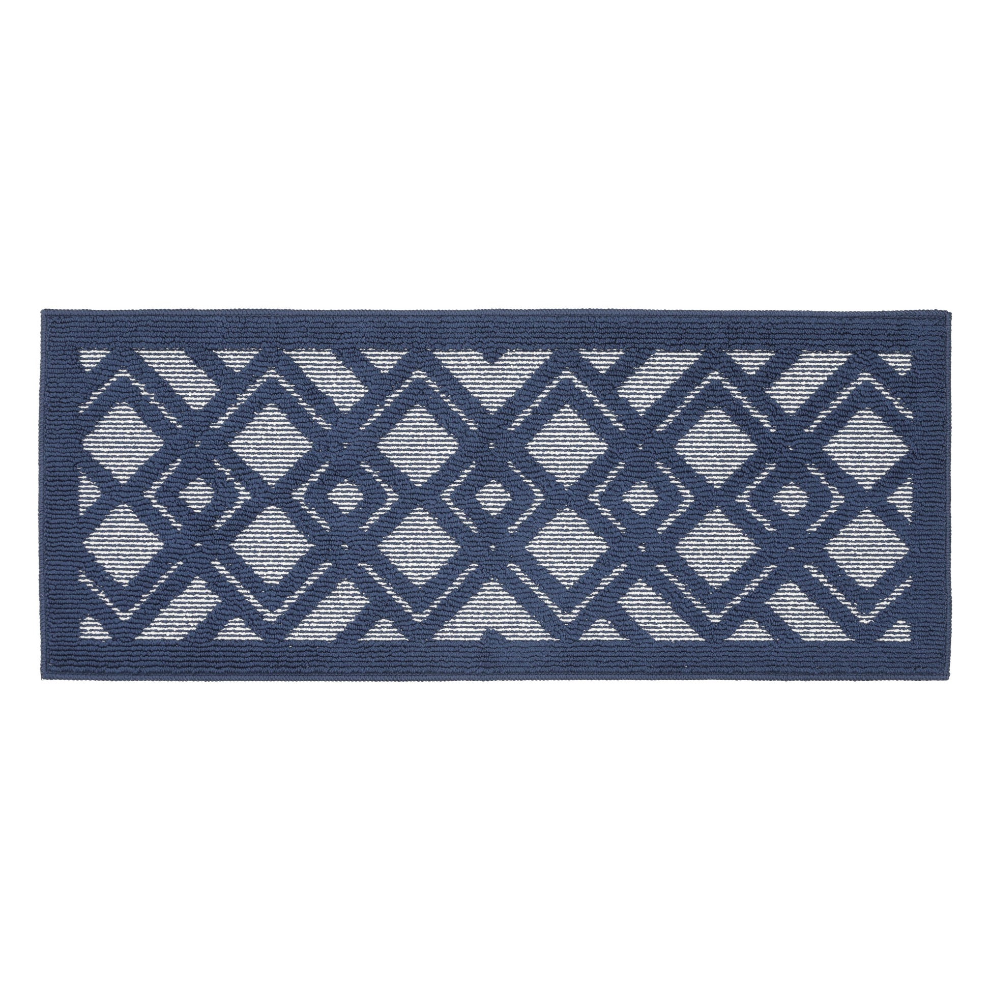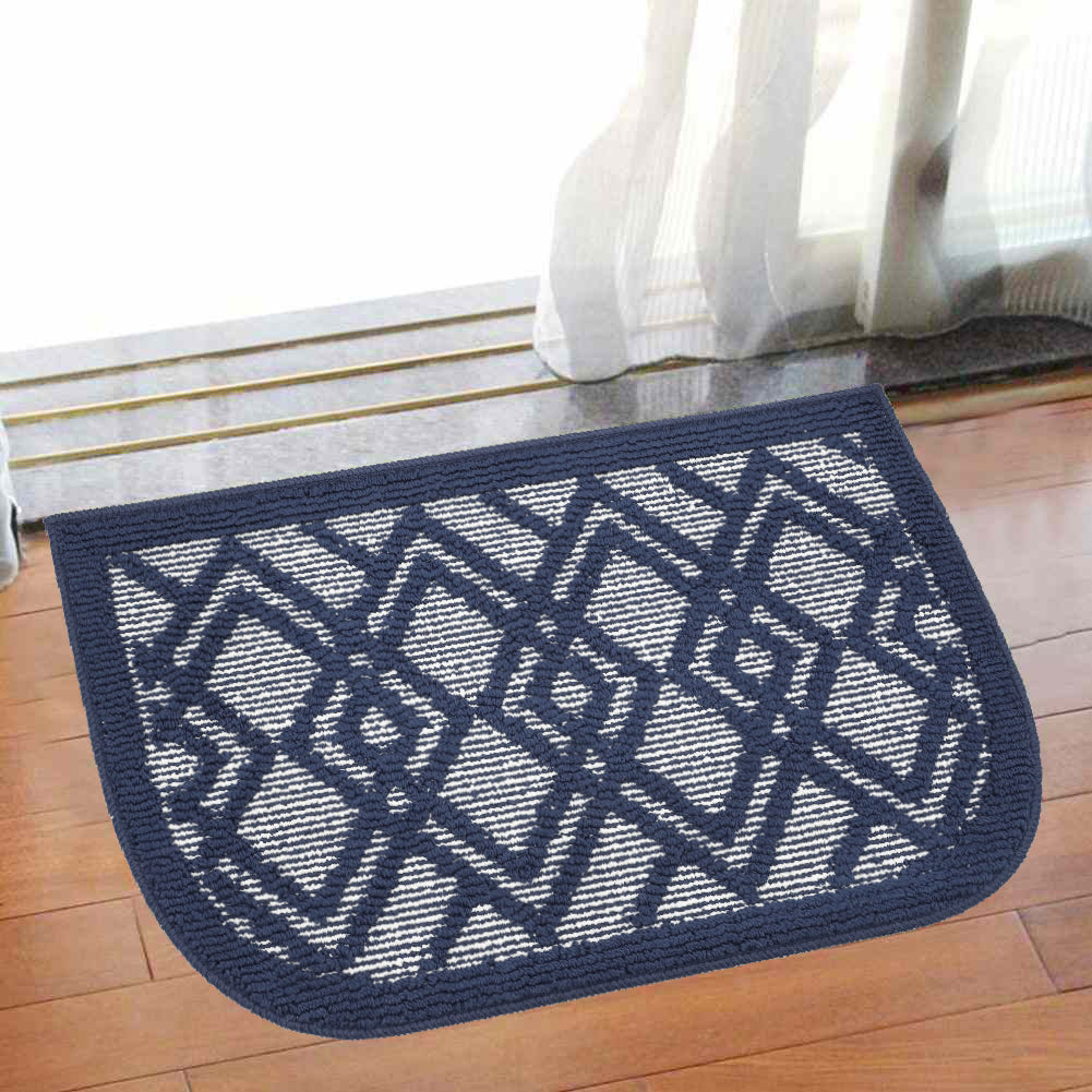Decor Non-Slip Back Water Absorbent Soft Woven Runner Area Carpet Floor Mat Indoor Kitchen Rug, Navy Blue Geometric Design