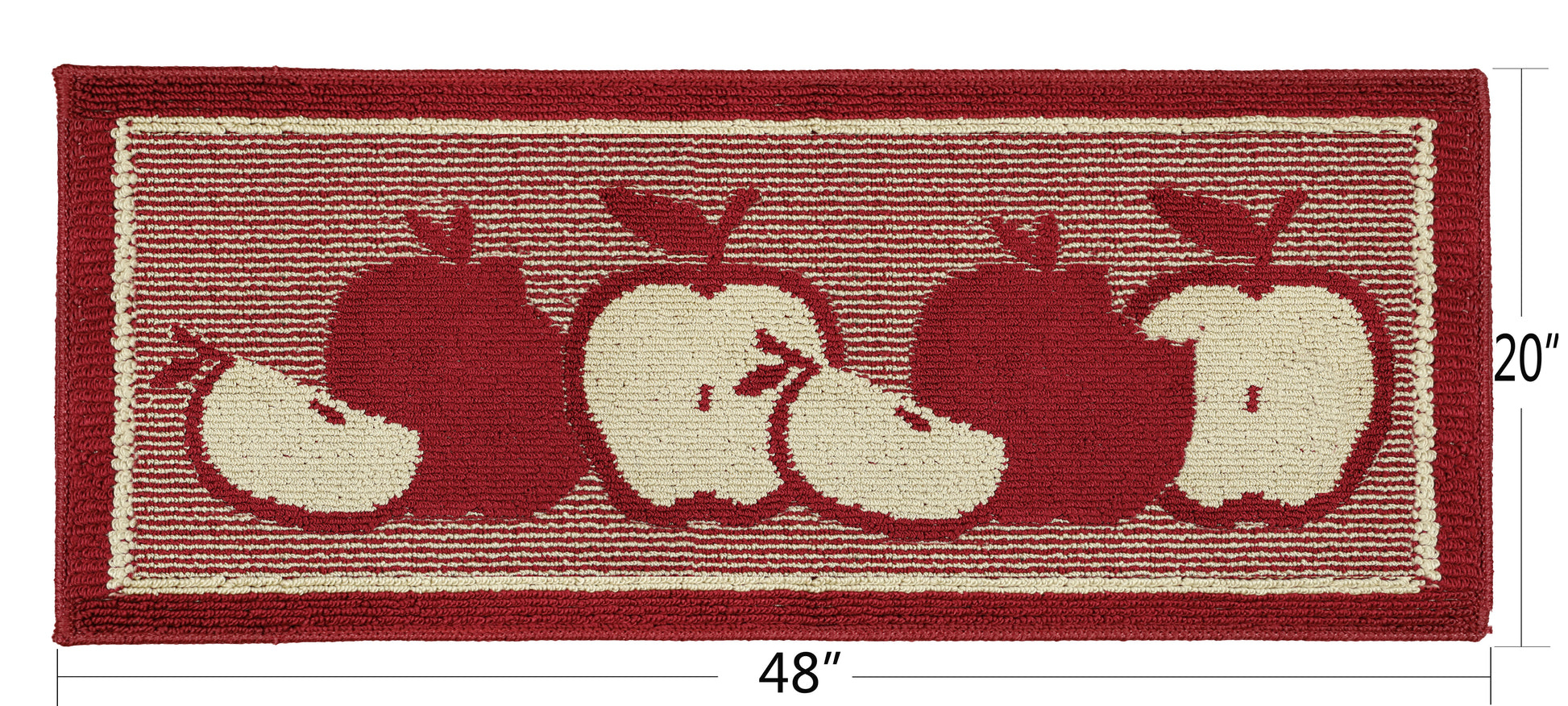 Decor Non-Slip Back Water Absorbent Soft Woven Runner Area Carpet Floor Mat Indoor Kitchen Rug, Red Apple Design
