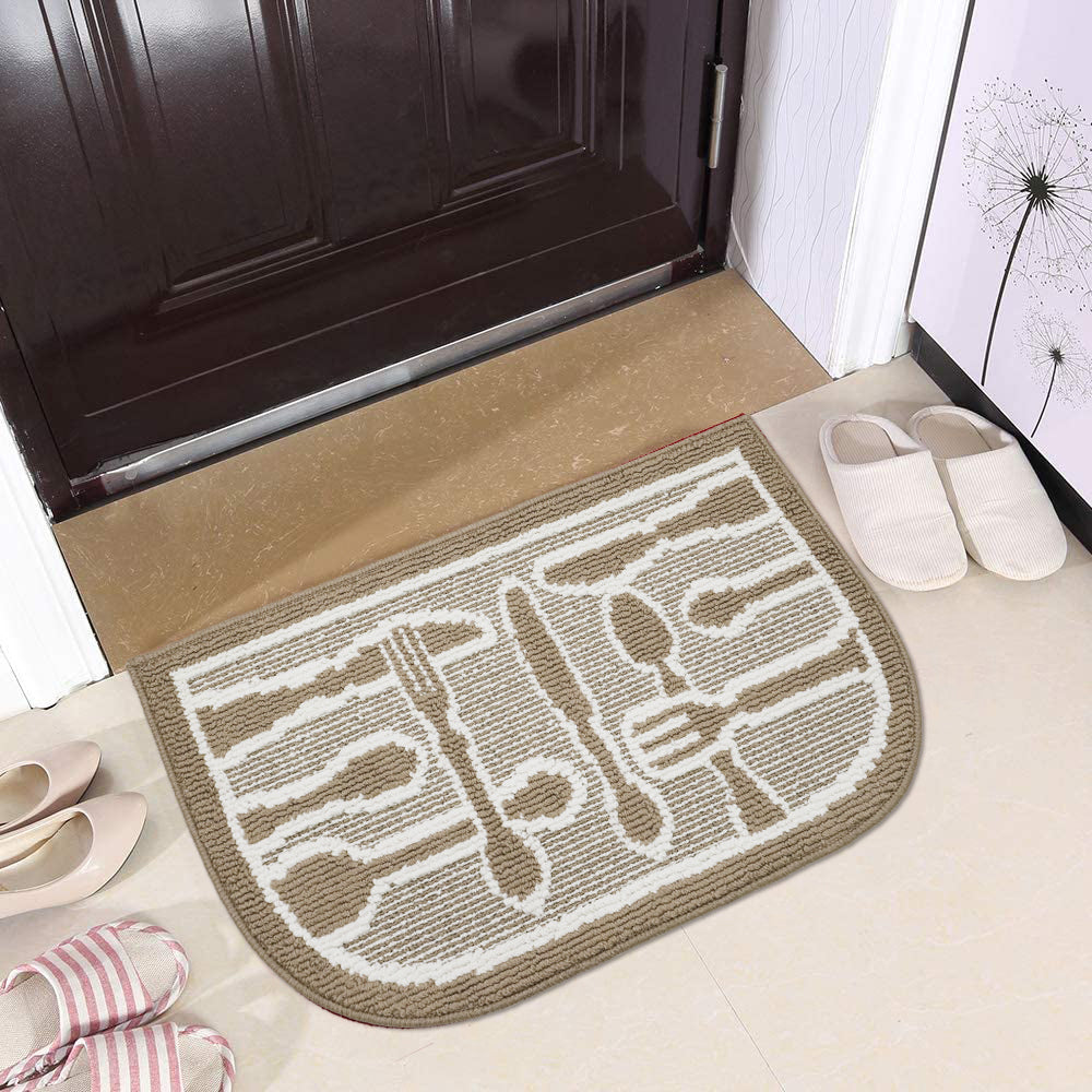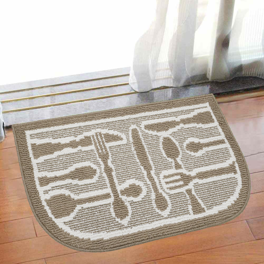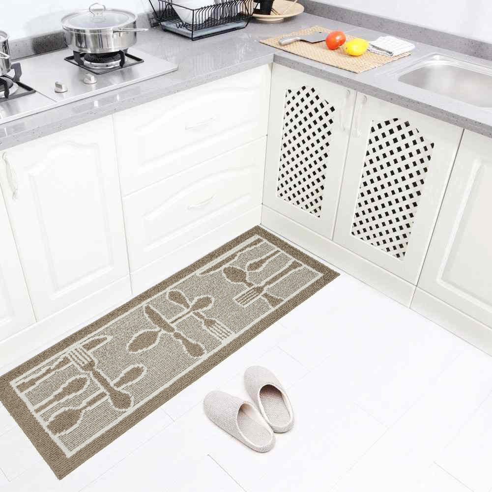 Decor Non-Slip Back Water Absorbent Soft Woven Runner Area Carpet Floor Mat Indoor Kitchen Rug, Taupe Utensils Design