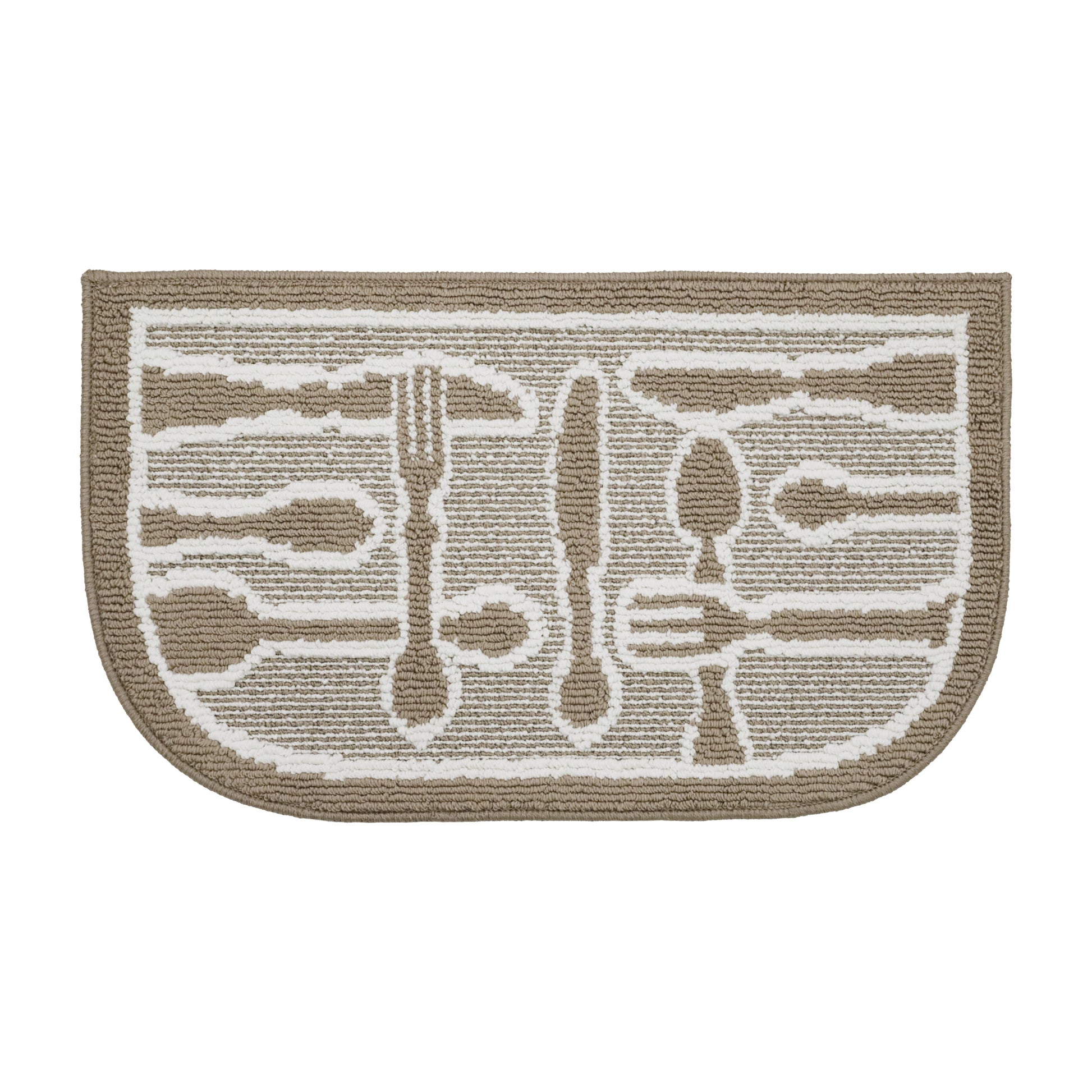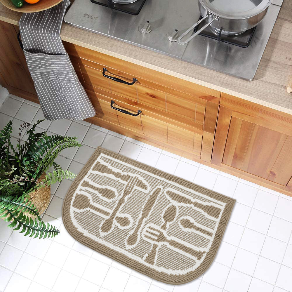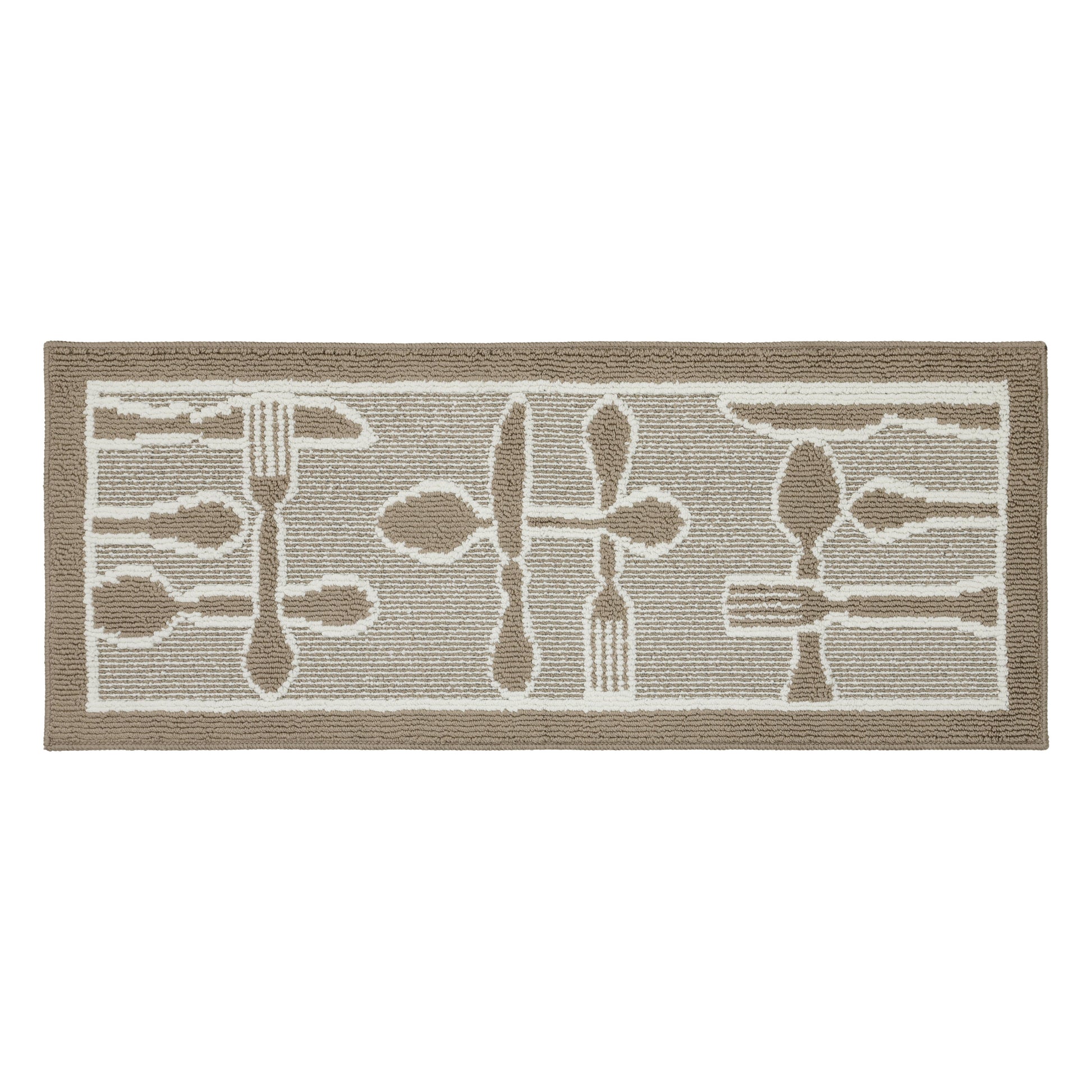 Decor Non-Slip Back Water Absorbent Soft Woven Runner Area Carpet Floor Mat Indoor Kitchen Rug, Taupe Utensils Design