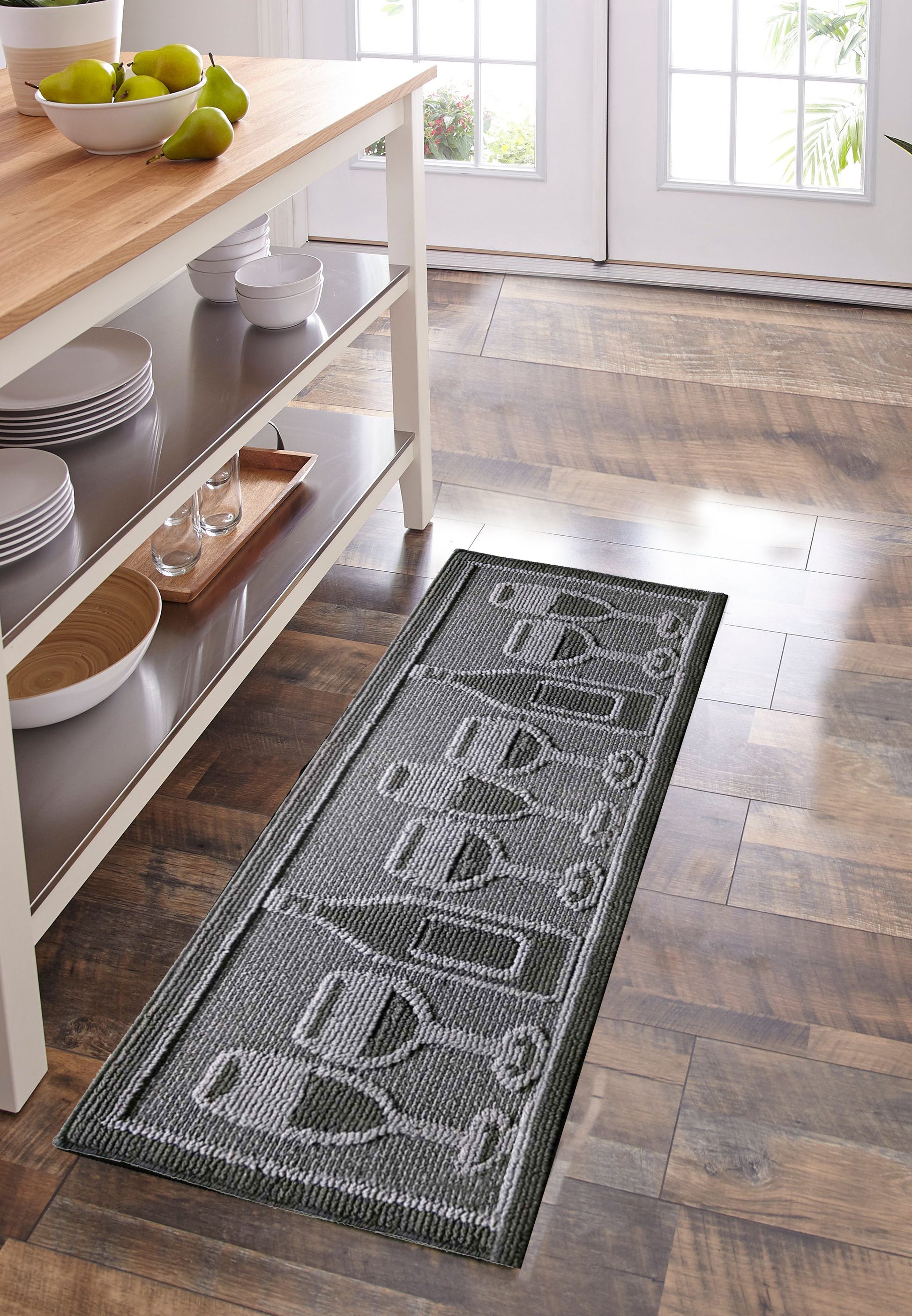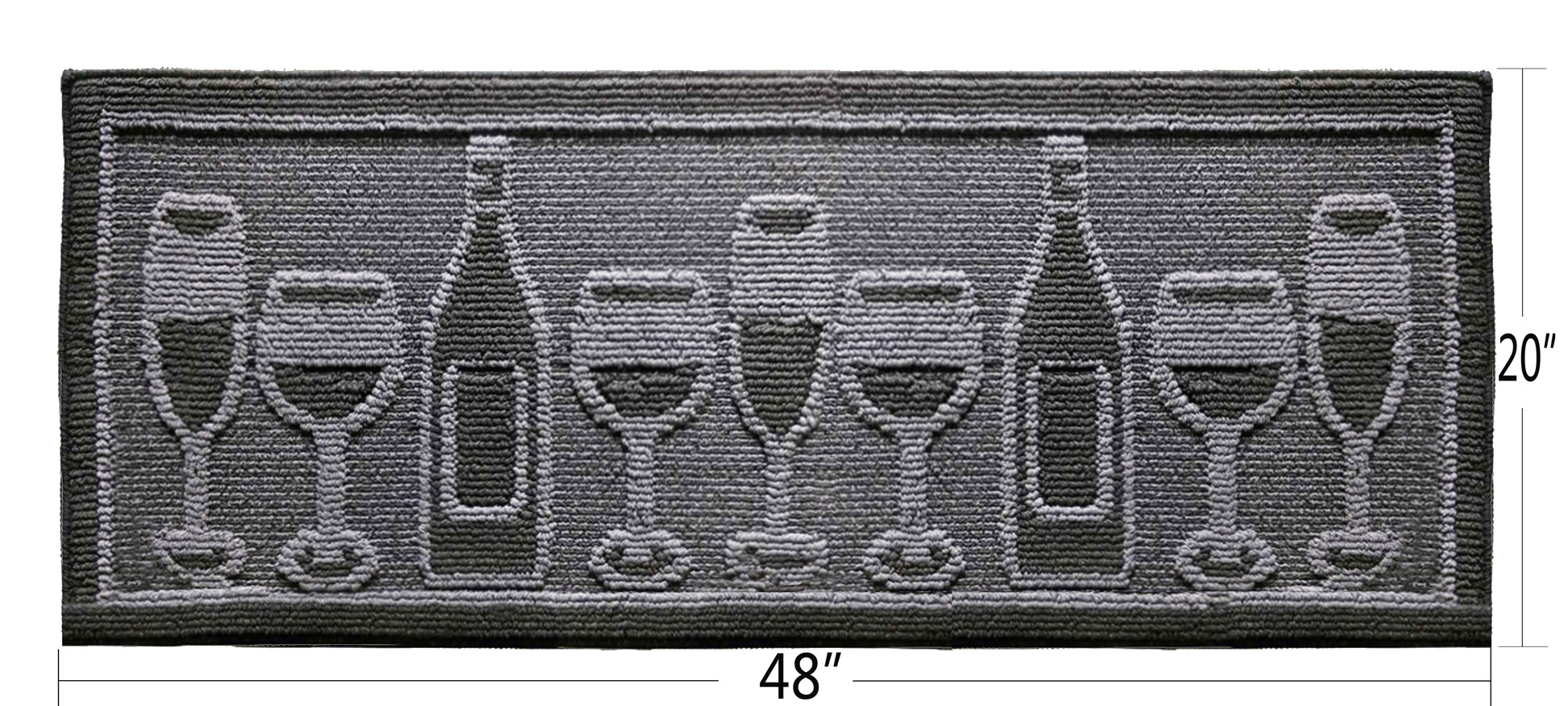 Decor Non-Slip Back Water Absorbent Soft Woven Runner Area Carpet Floor Mat Indoor Kitchen Rug, Black Wine Cheers Design