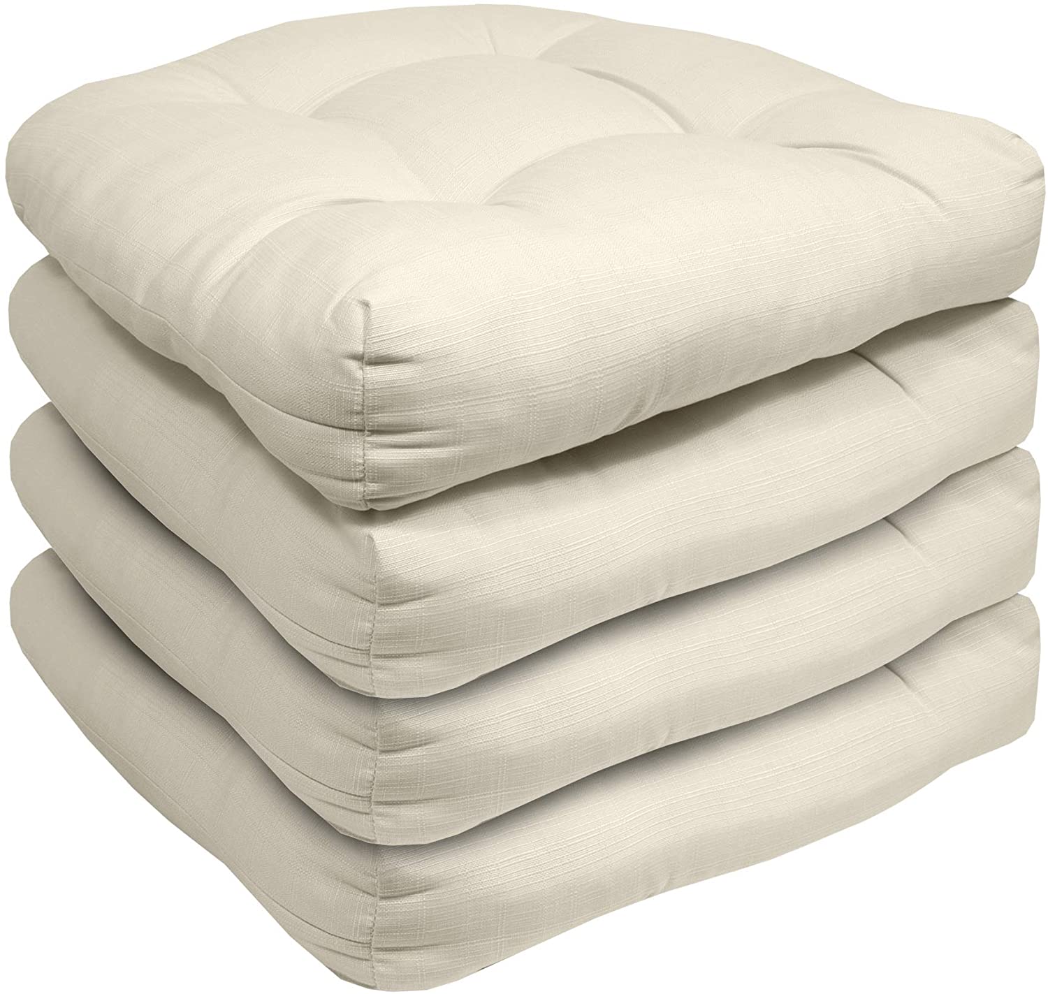 Premium Thick Comfy Seat Patio Pad Tufted Textured Solid Outdoor Chair Cushion 19 x 19 x 4 Inch, Cream