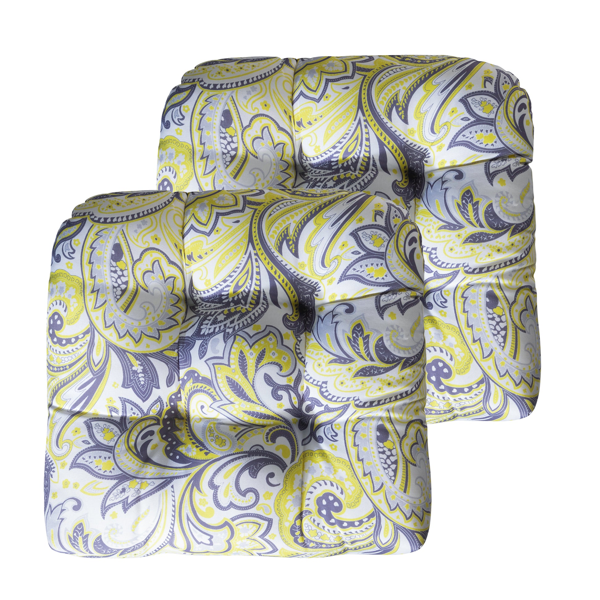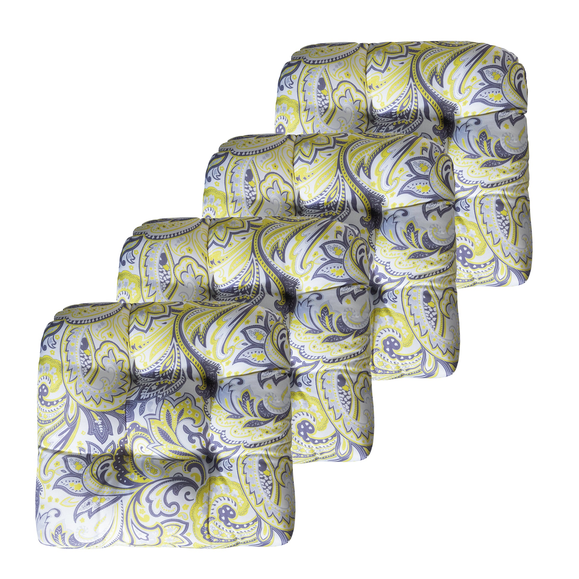 Premium Thick Comfy Seat Patio Pad Tufted Textured Printed Outdoor Chair Cushion 19 x 19 x 4 Inch, Yellow Paisley Floral