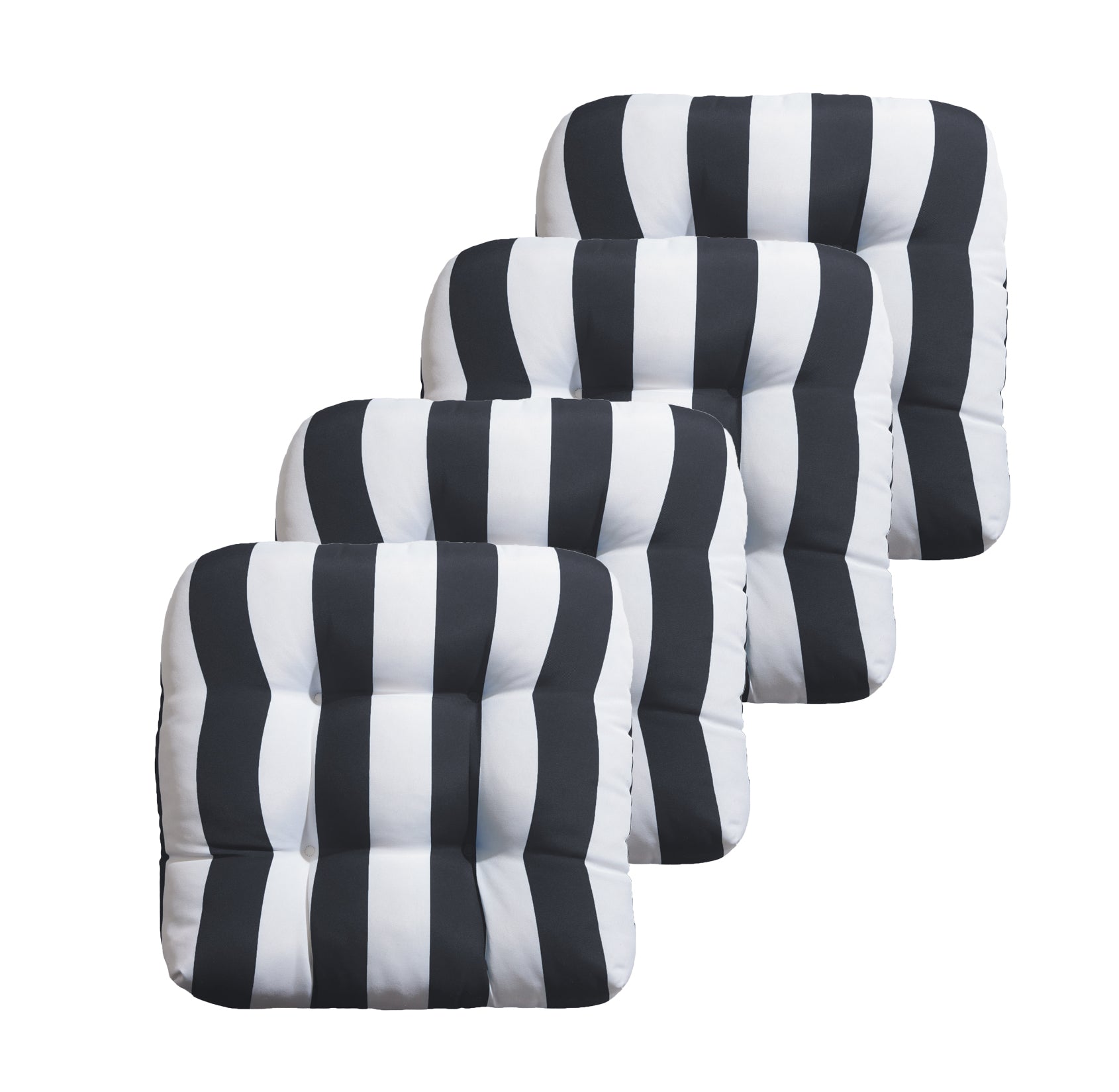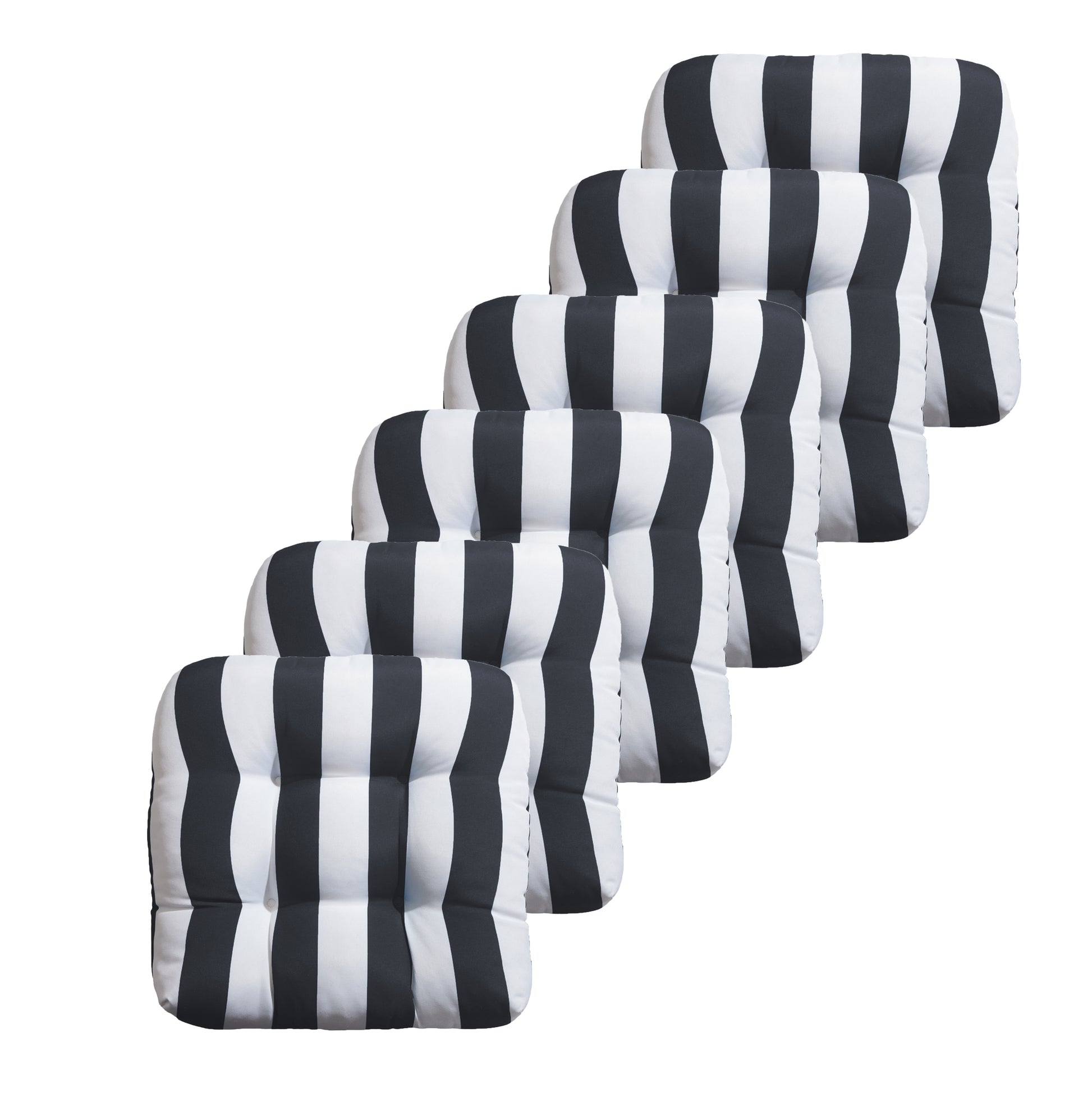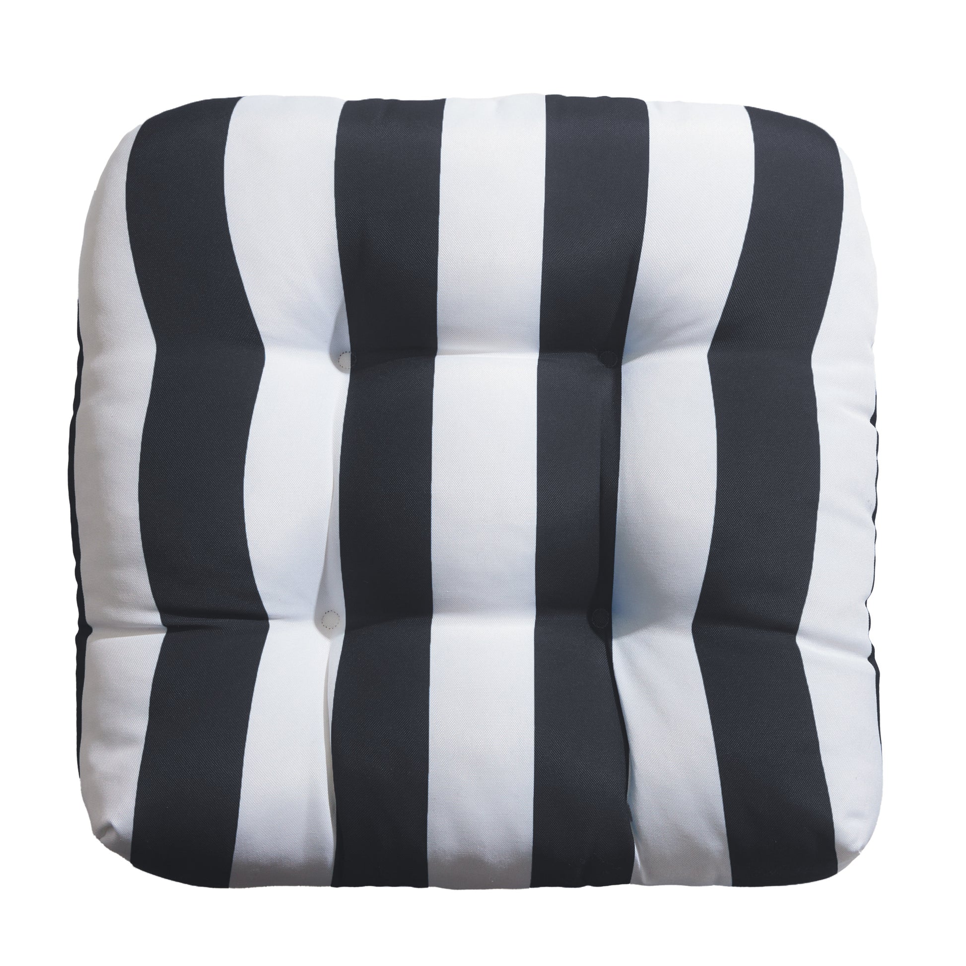 Premium Thick Comfy Seat Patio Pad Tufted Textured Printed Outdoor Chair Cushion 19 x 19 x 4 Inch, Charcoal Grey White Stripes