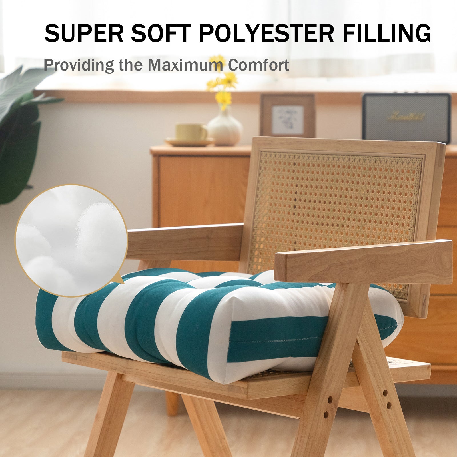 Design and Material - Our High-Quality Rich Printed Teal and White Stripes can Match any of Your Chair. 100% Pure 900 GSM Polyester Filling with Top Heavy-Duty 100% Polyester 210 GSM Shell. The Floor Cushion is a Square Shape with Front Rounded Curved Corner. Our Cushions Cover is Tufted Simply Elegant Design and Size are fitted almost all Chairs