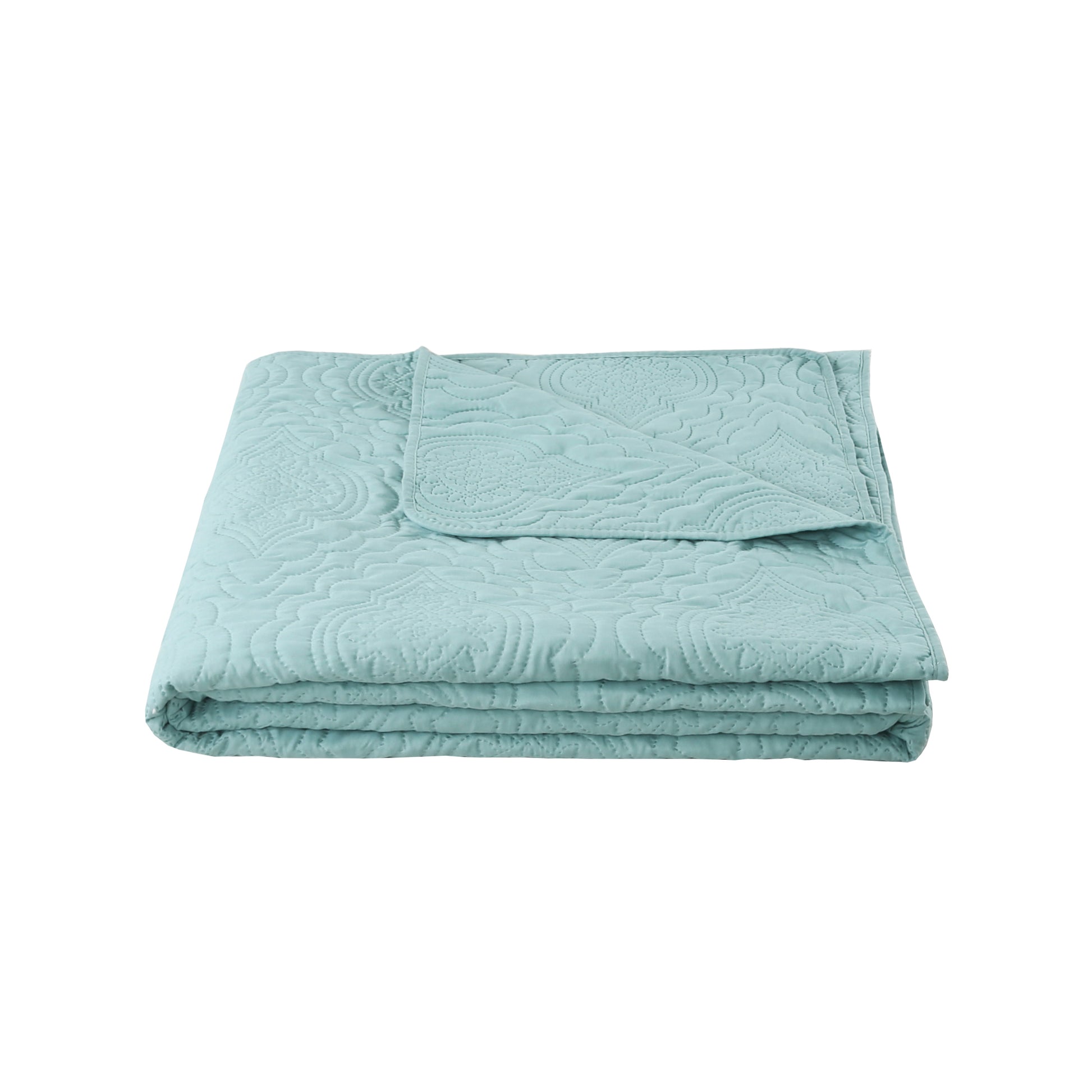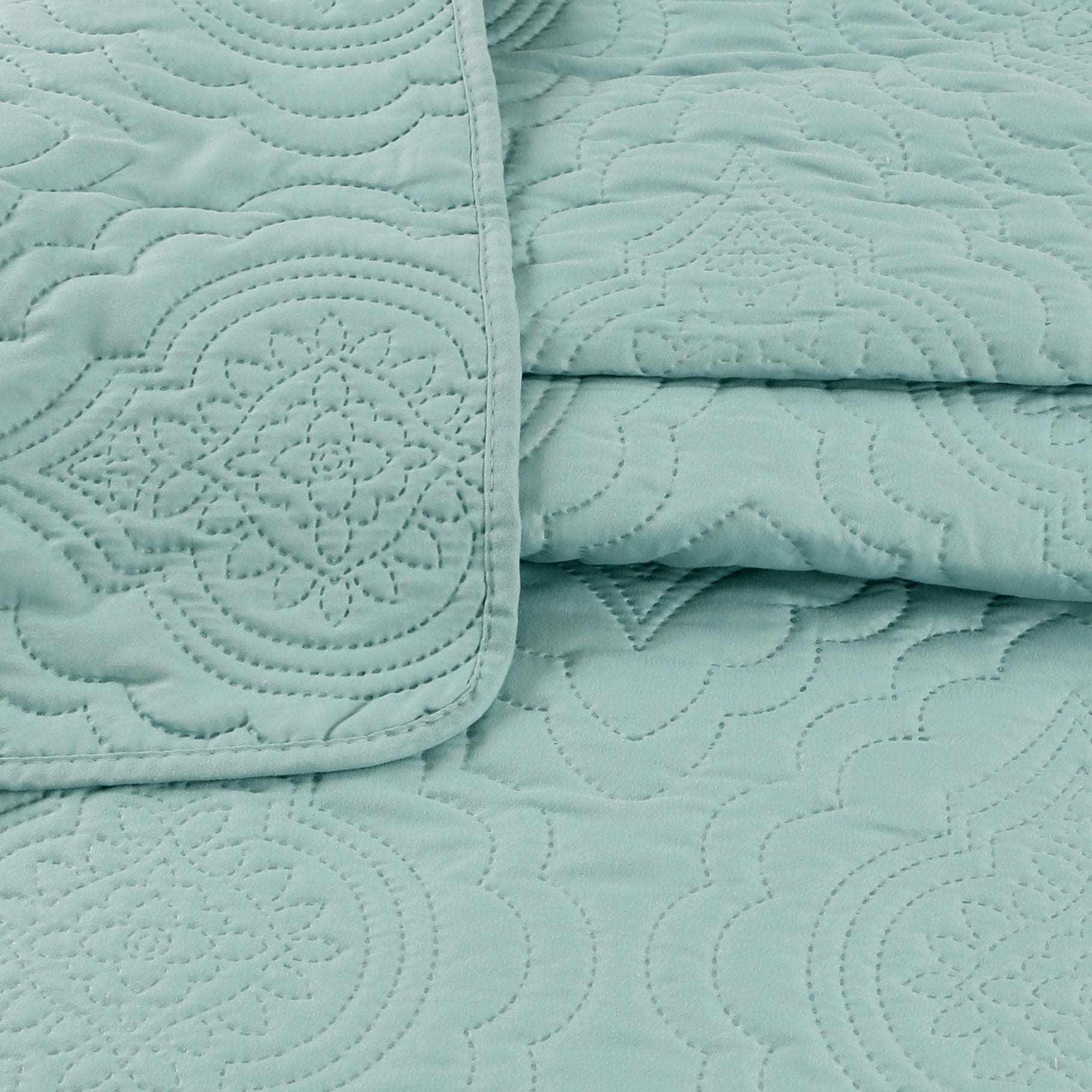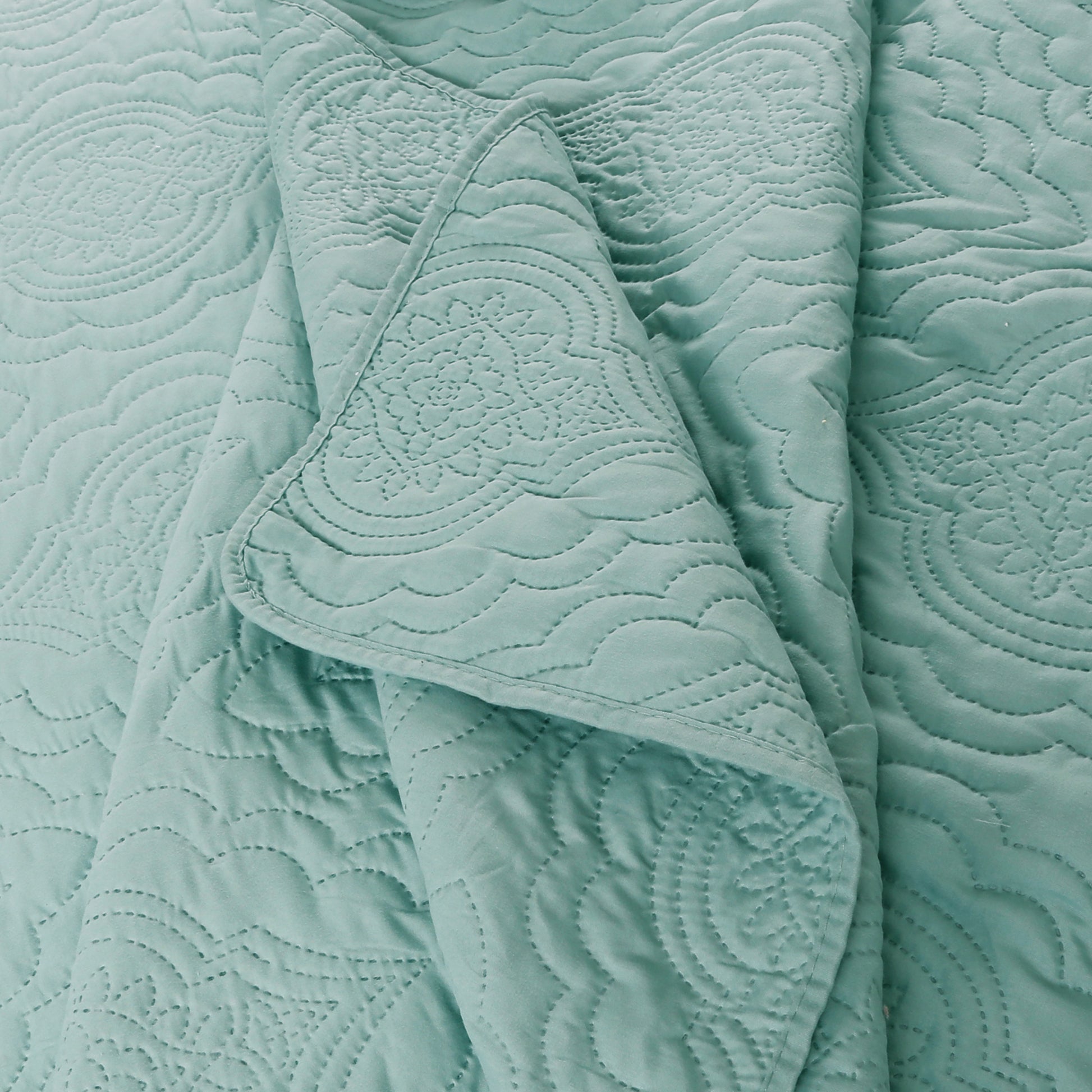 Embossed Pinsonic Solid Bedding Soft Summer Quilt Set, Green Color