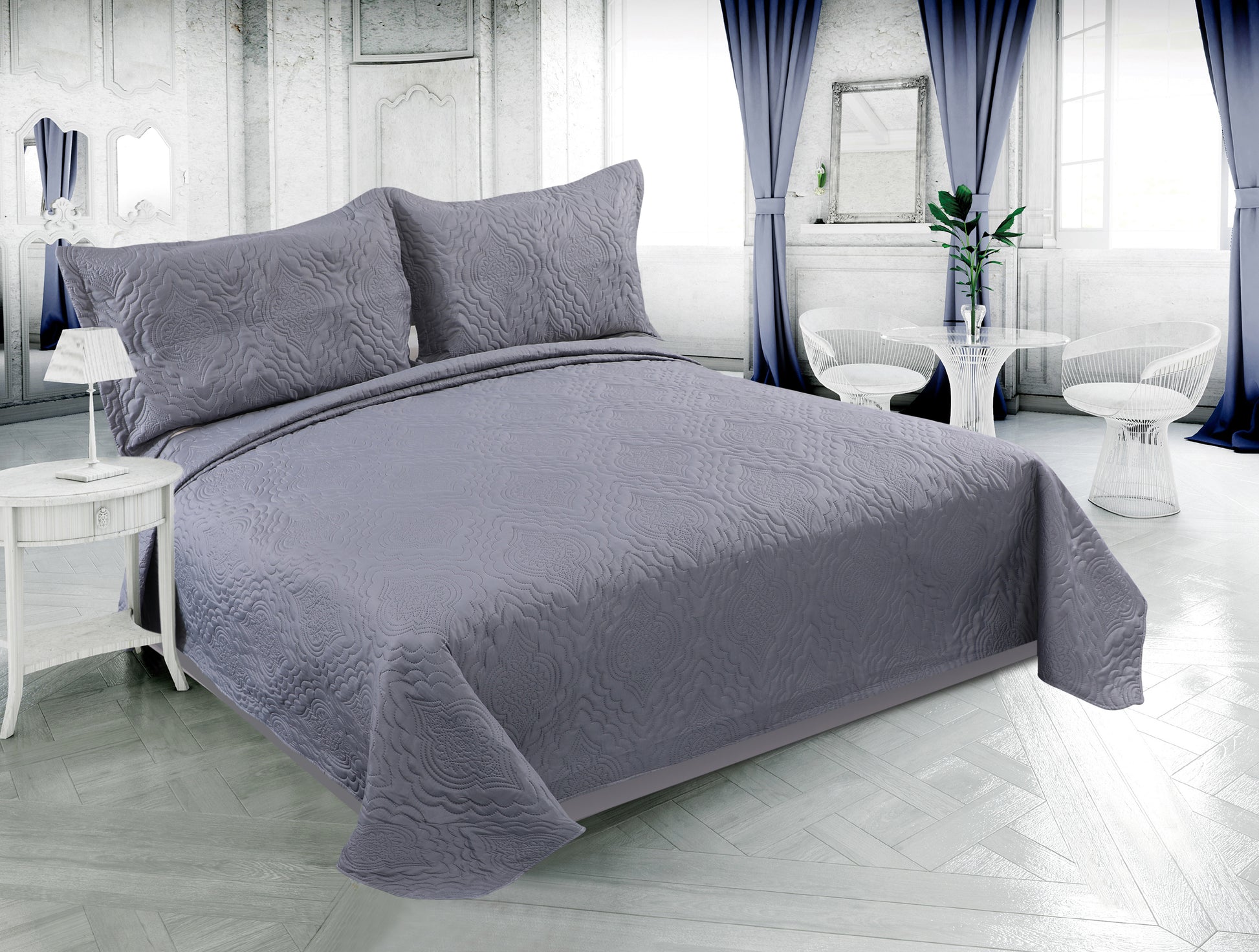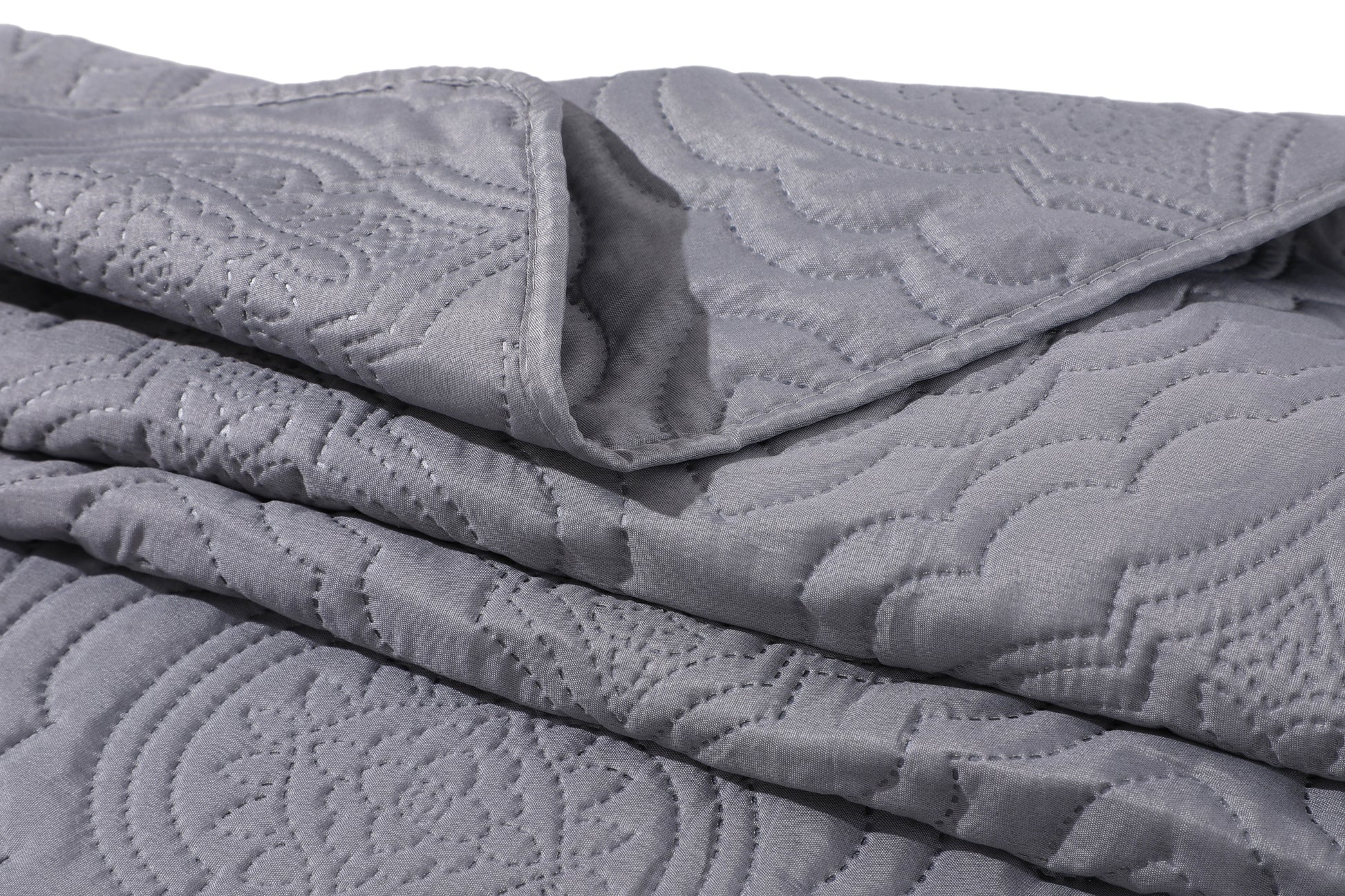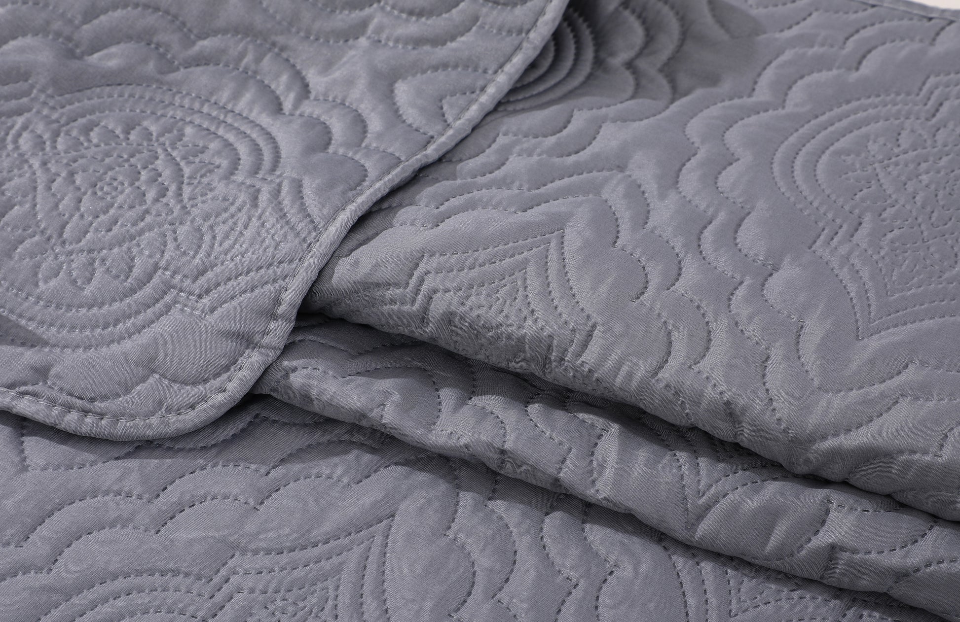 Embossed Pinsonic Solid Bedding Soft Summer Quilt Set, Grey Color
