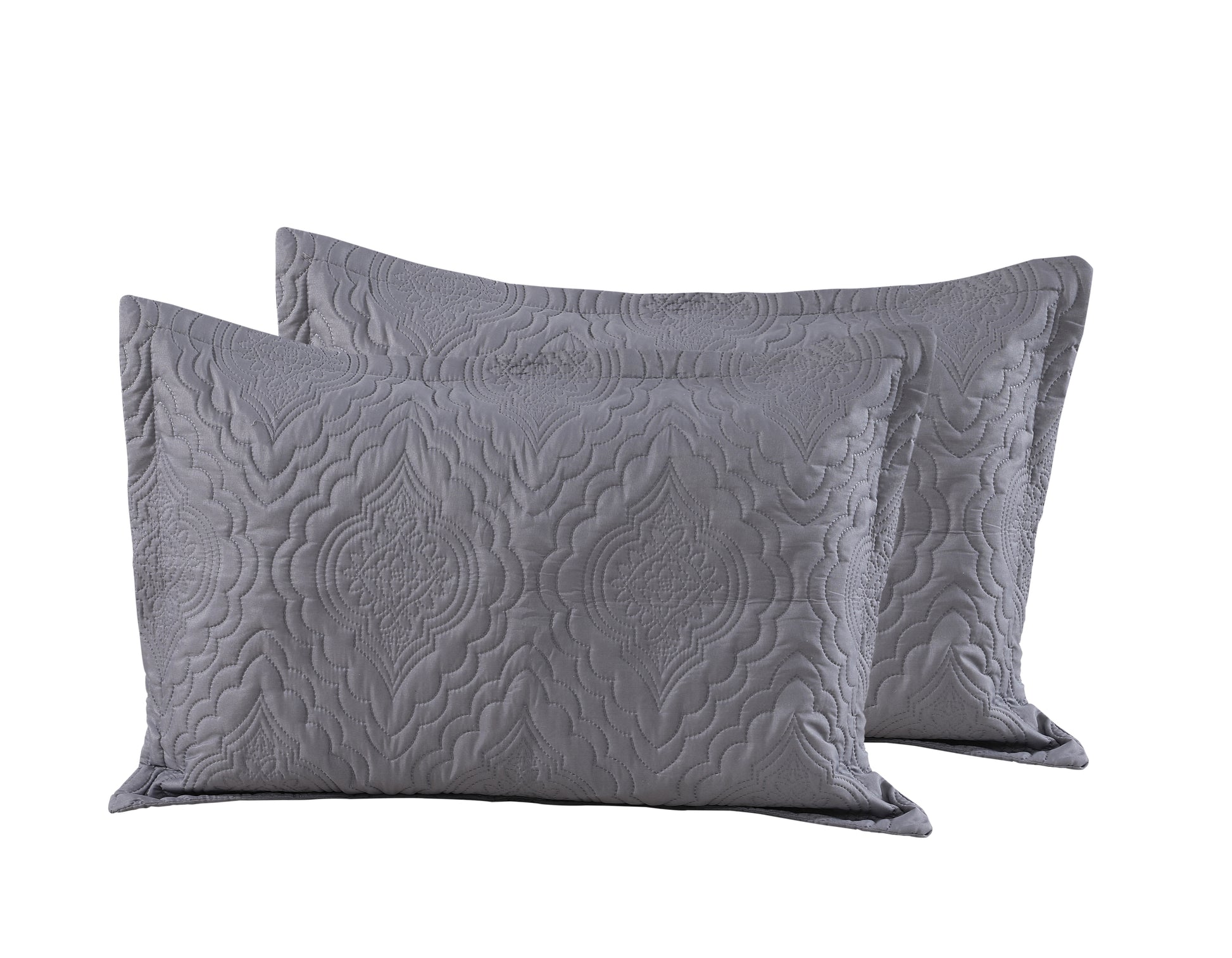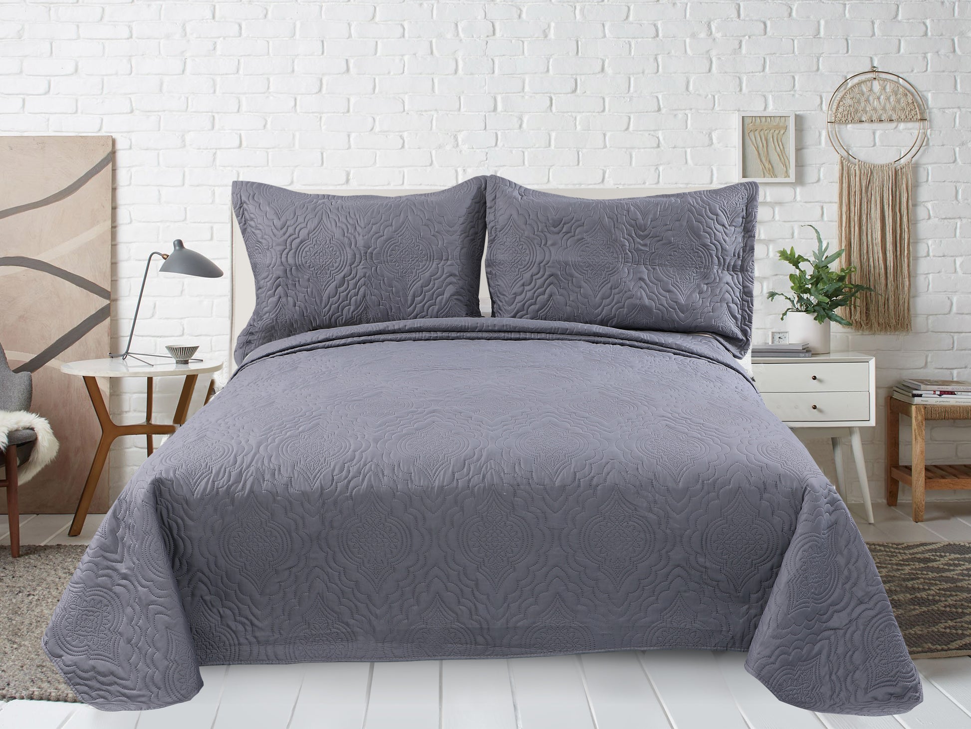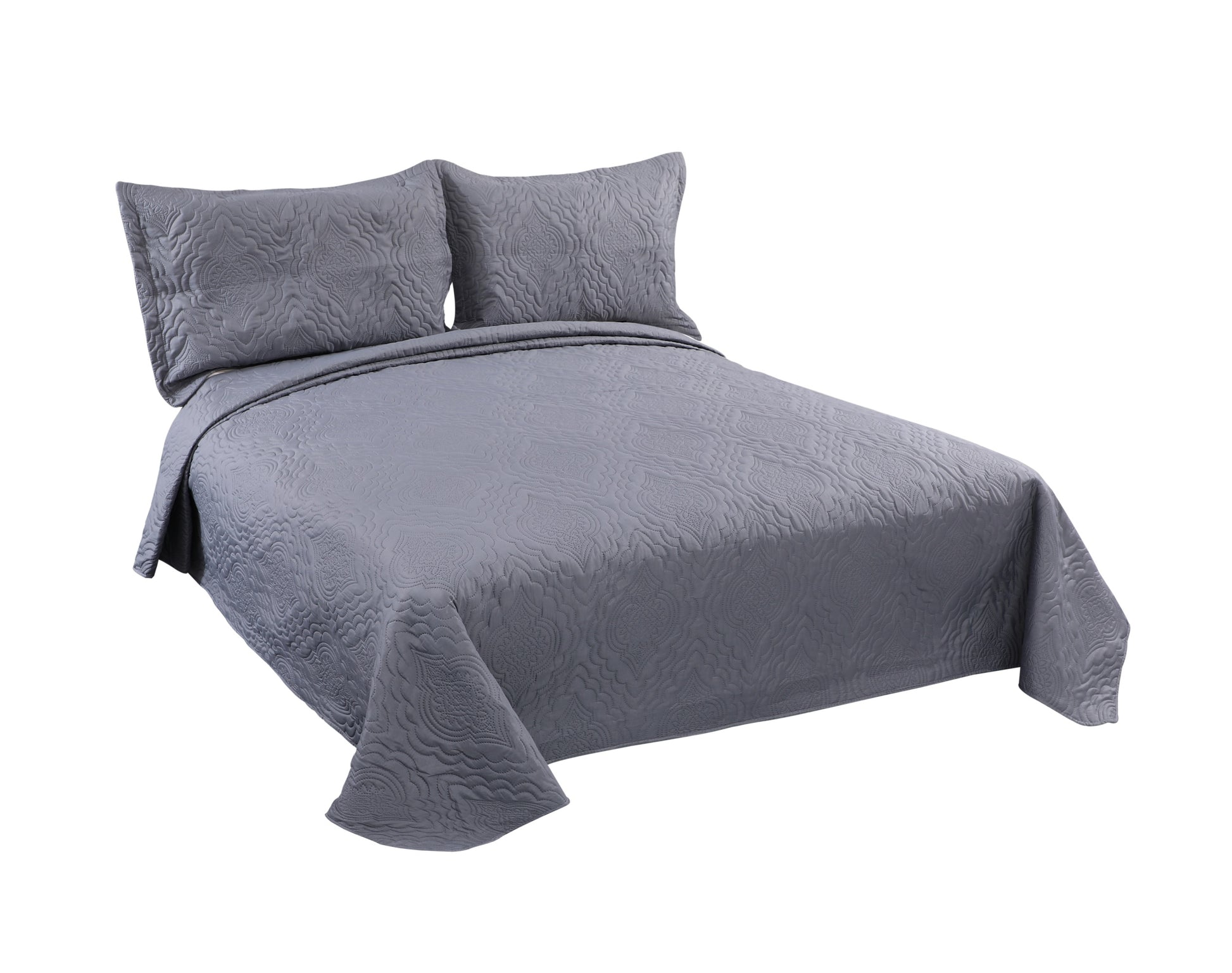 Embossed Pinsonic Solid Bedding Soft Summer Quilt Set, Grey Color