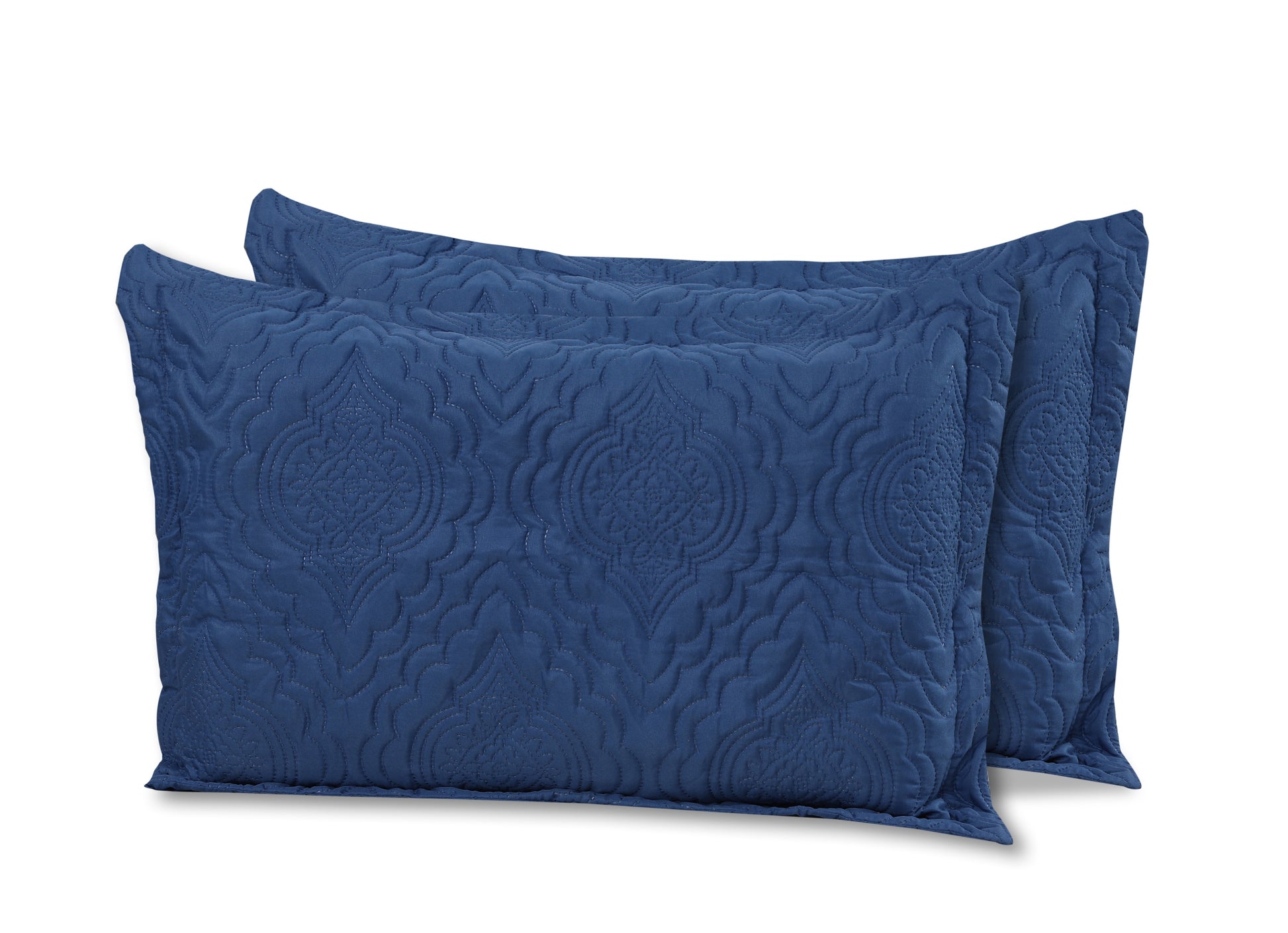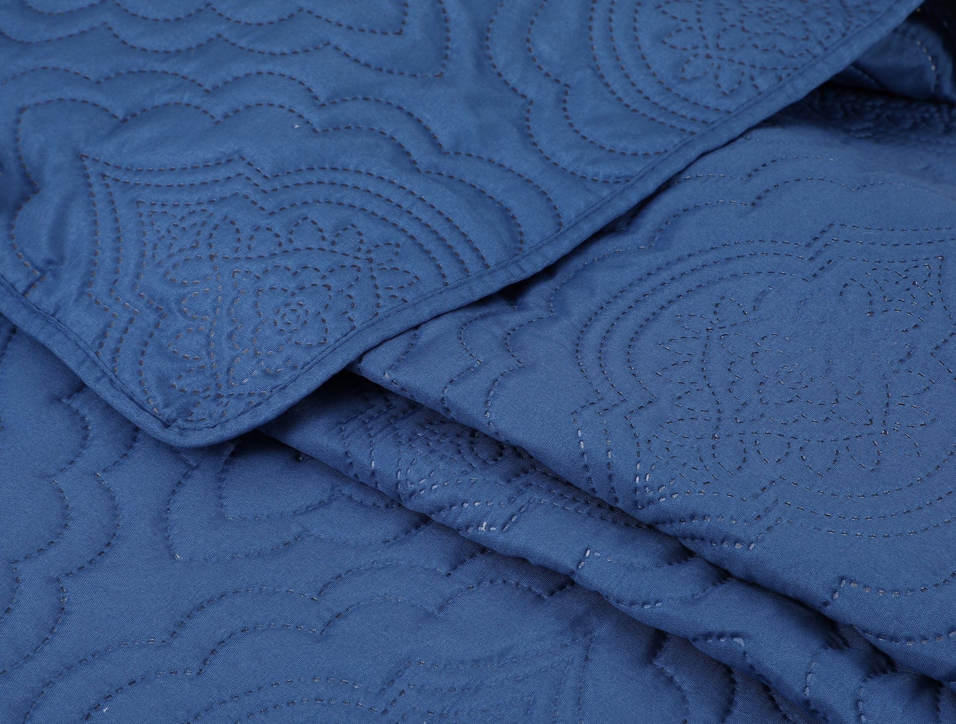 Embossed Pinsonic Solid Bedding Soft Summer Quilt Set, Navy Blue Color