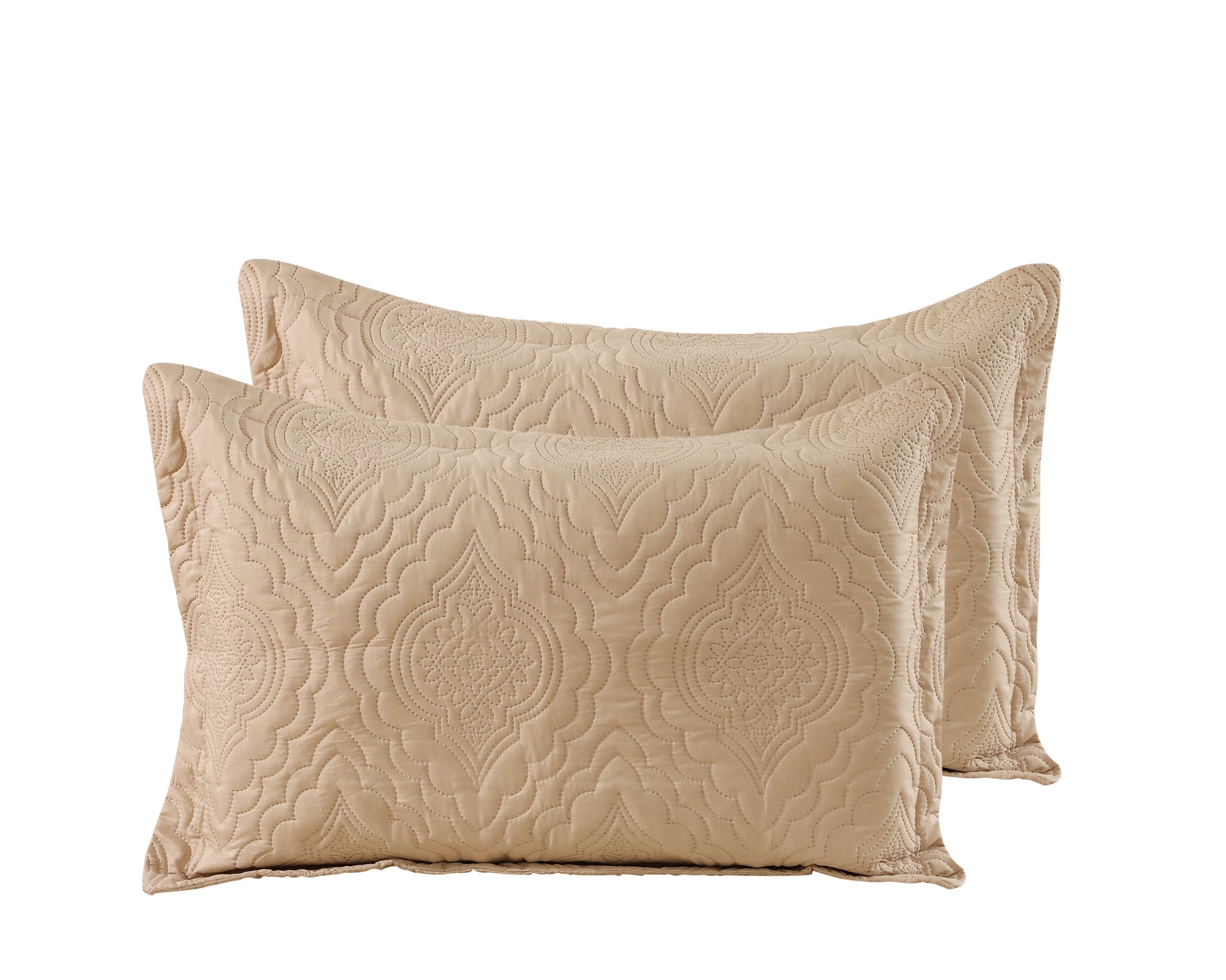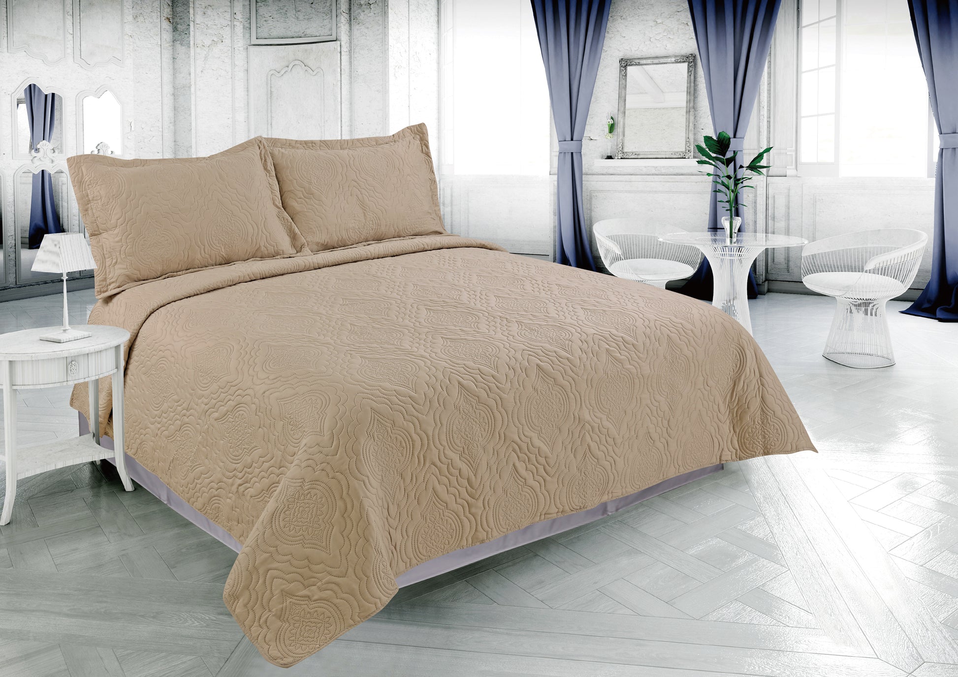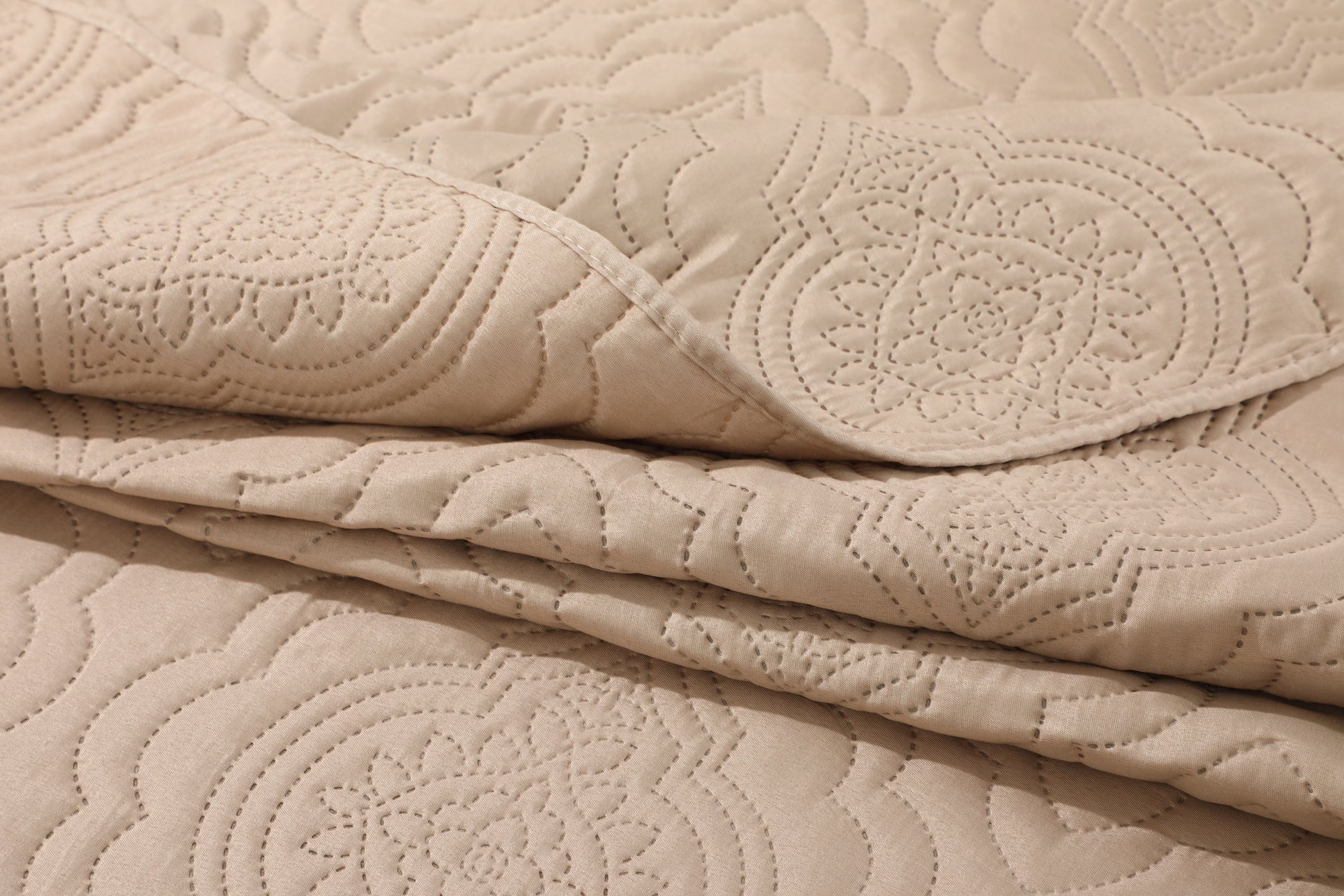 Embossed Pinsonic Solid Bedding Soft Summer Quilt Set, Taupe Color
