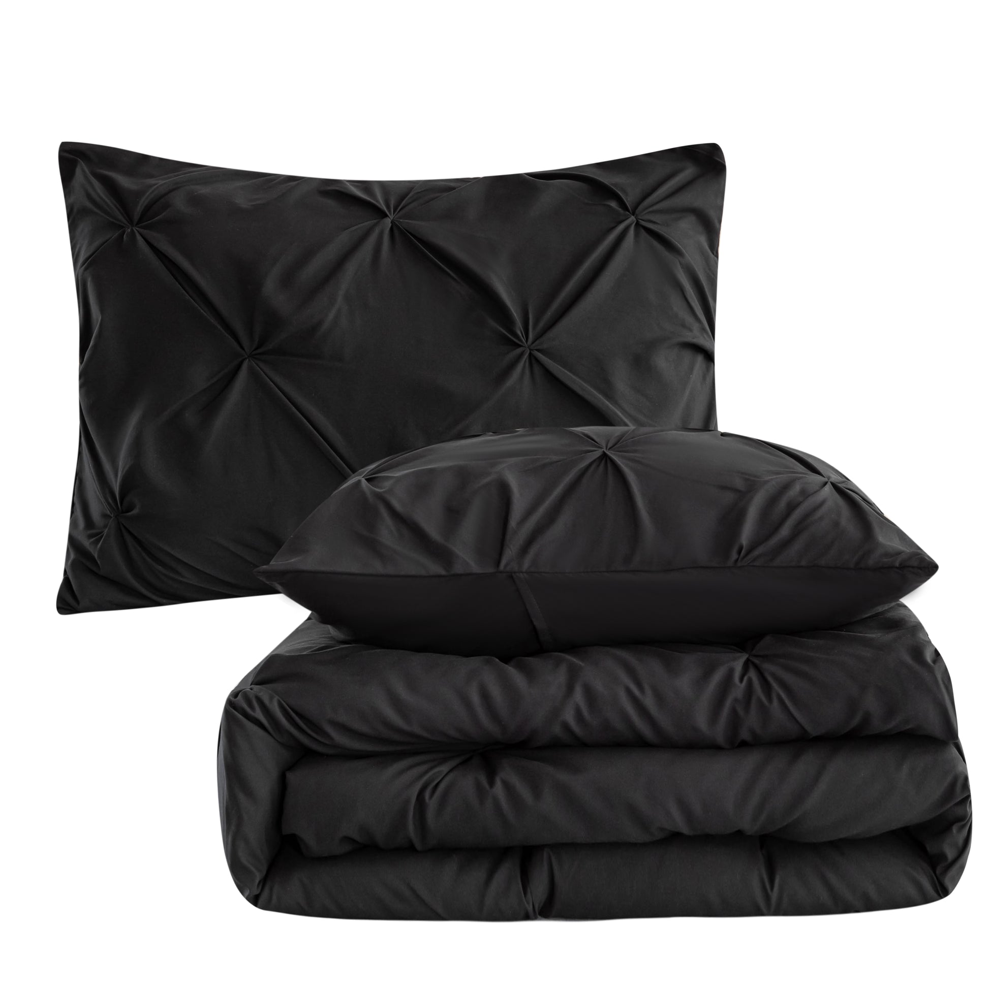 Pintuck Soft Luxury Fluffy Goose Down Alternative Solid Geometric Tufted Bedding Pinch Pleated Comforter Set, Black