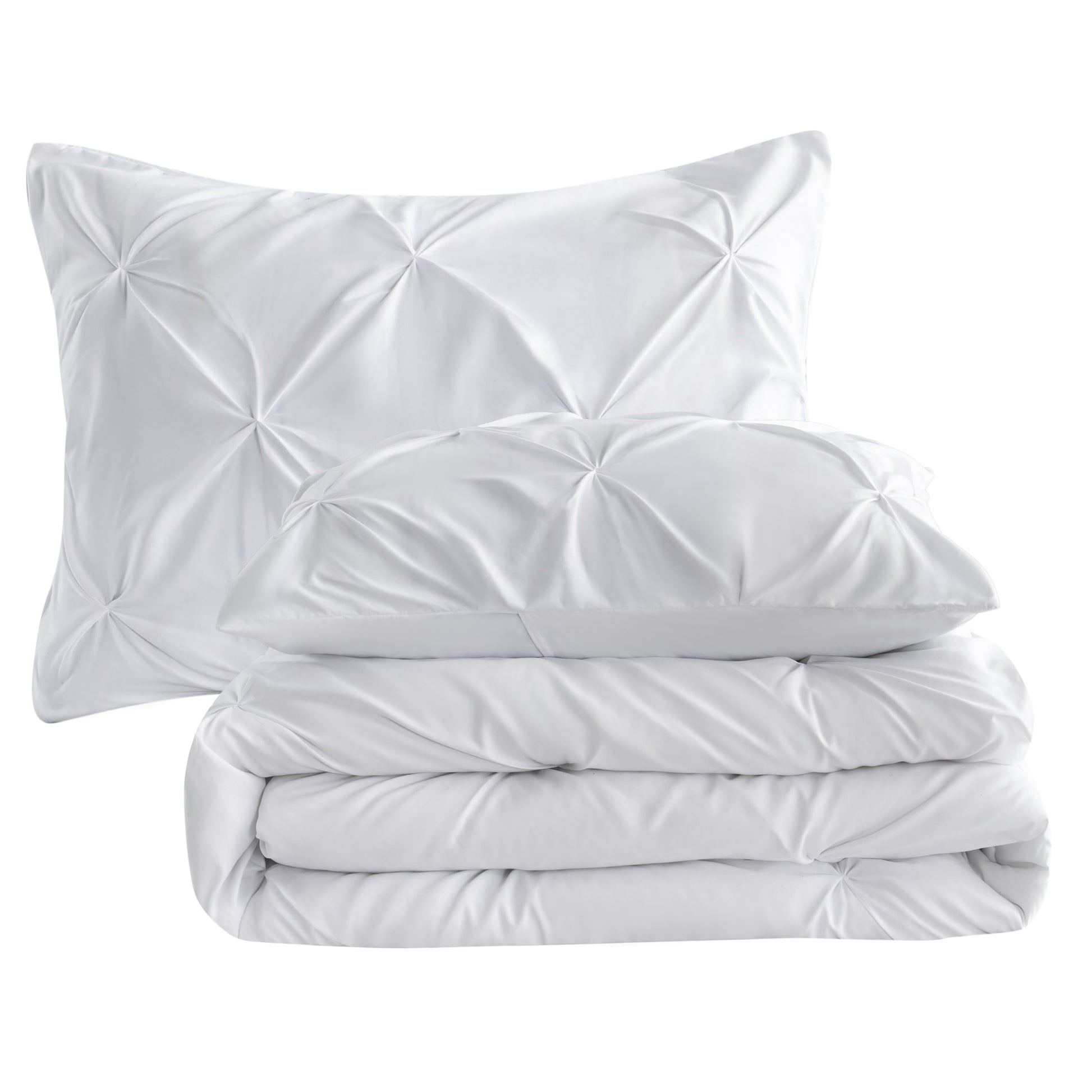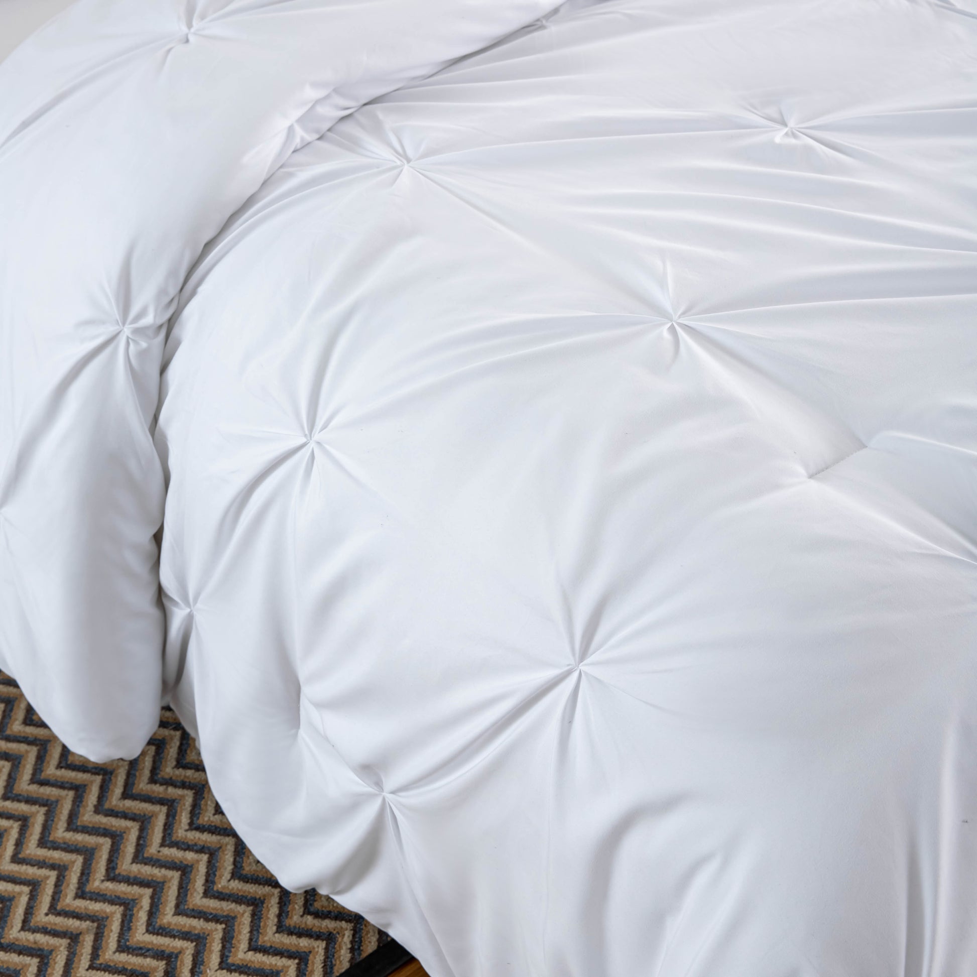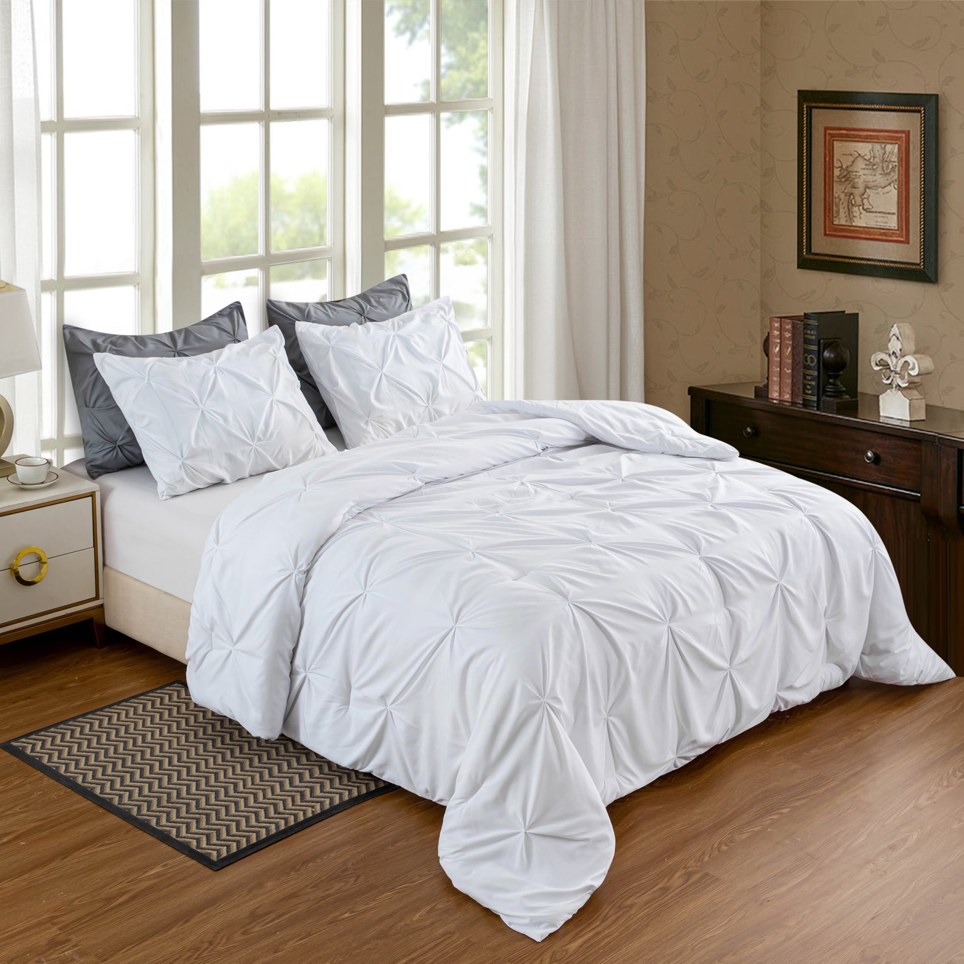 Pintuck Soft Luxury Fluffy Goose Down Alternative Solid Geometric Tufted Bedding Pinch Pleated Comforter Set, White