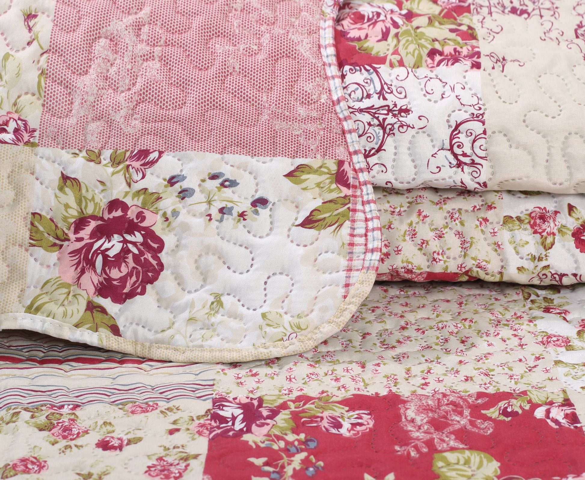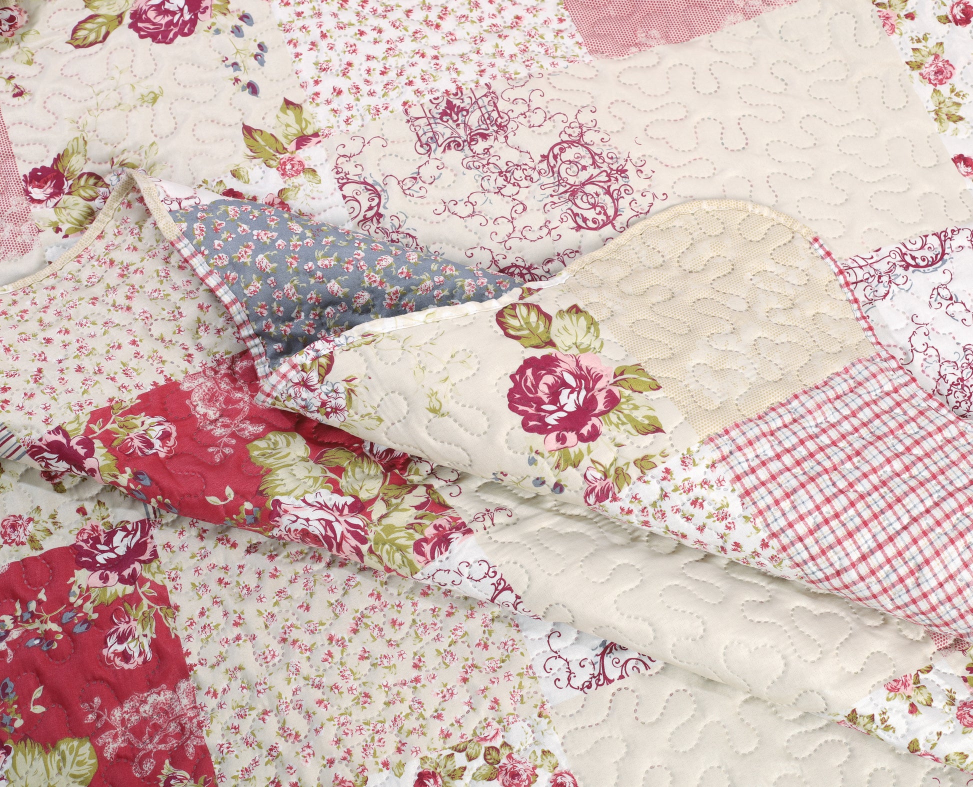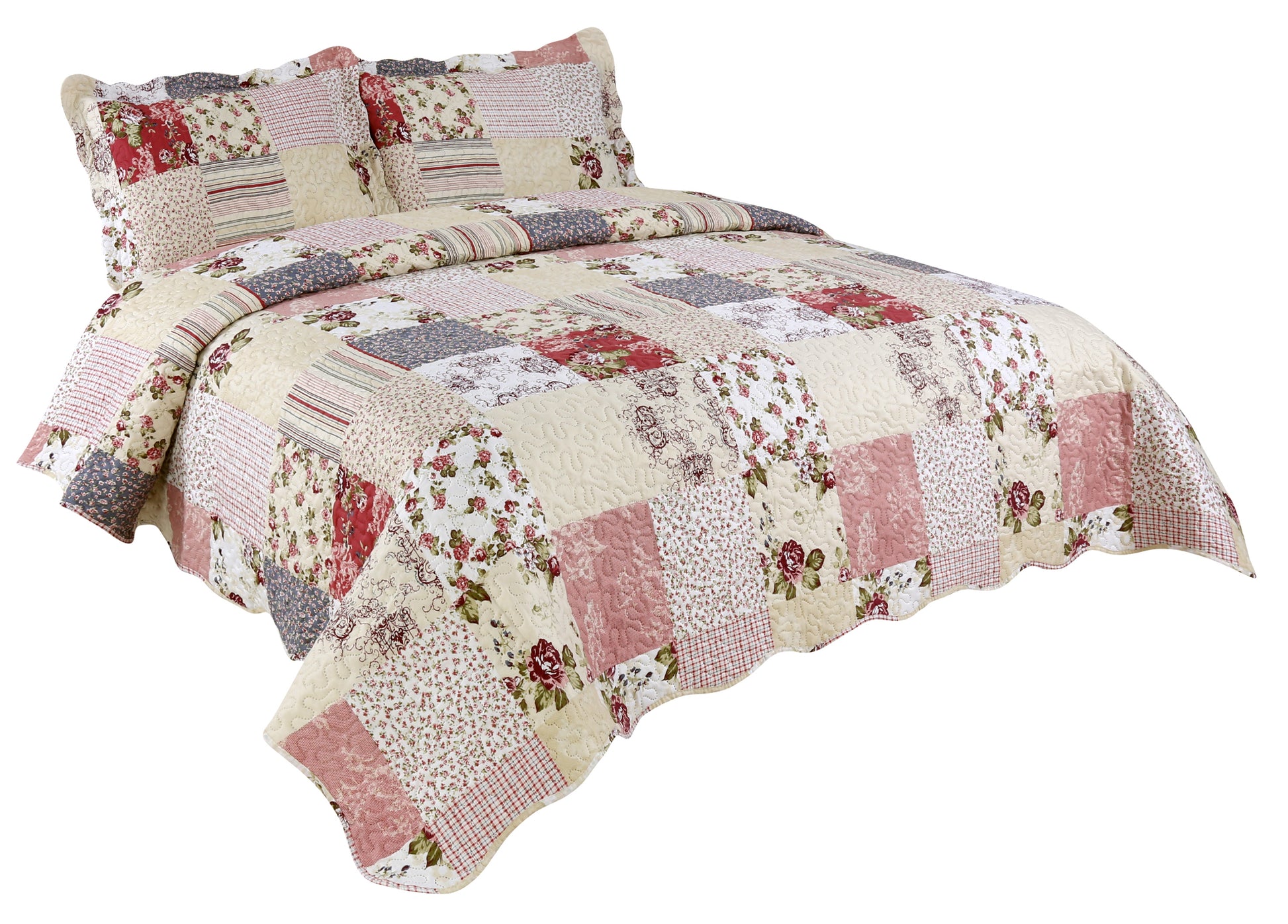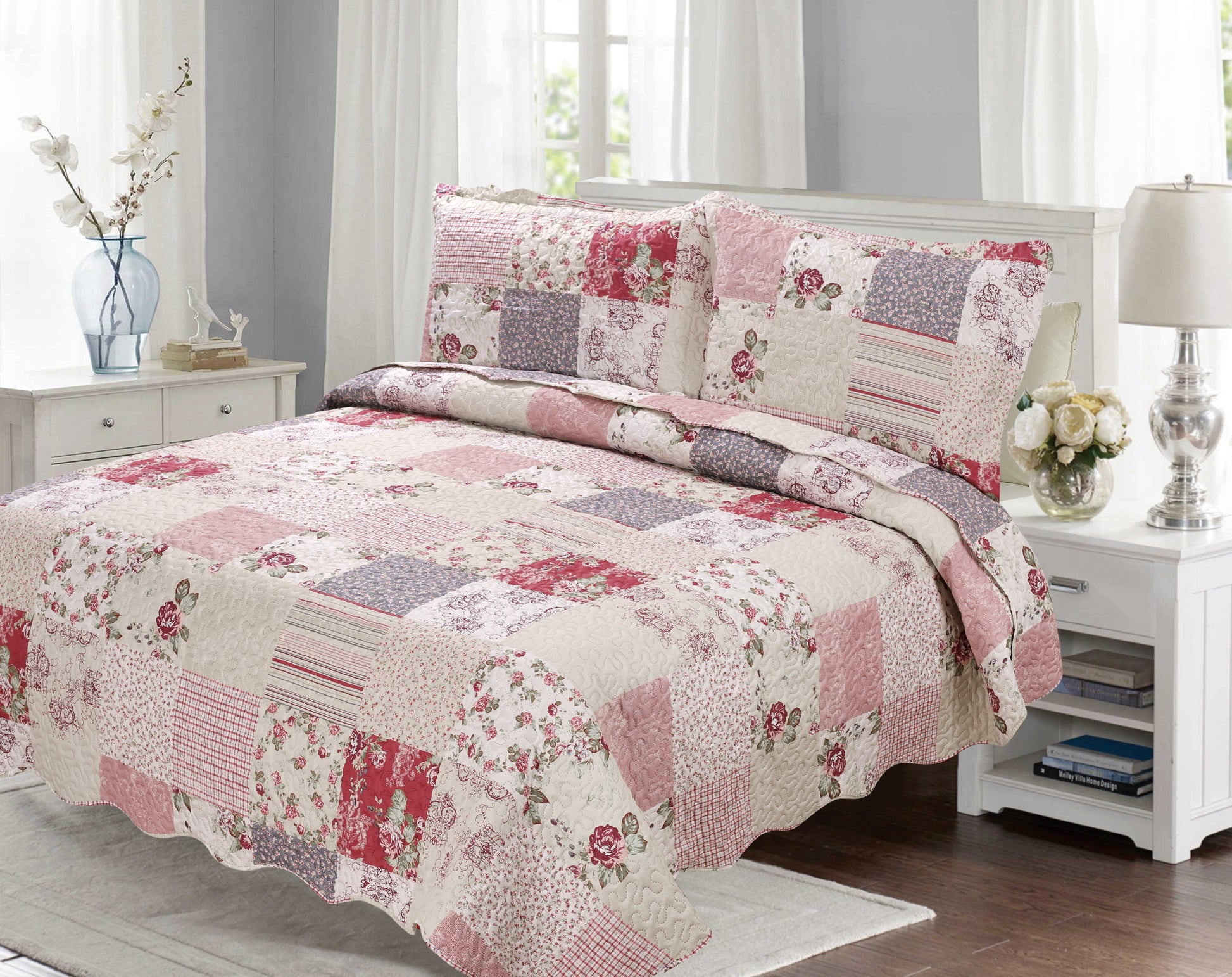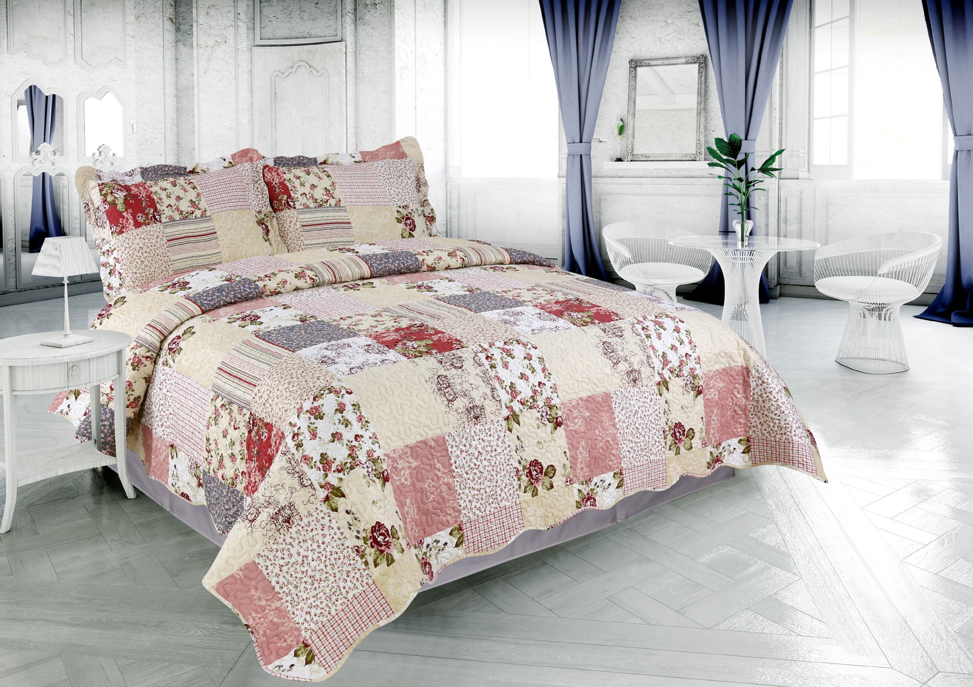 Printed Modern Design - This Unique Decorative Printed Embossed Quilt Sets is Perfect for Home Decoration. This Pattern is Consist of Flowers Stripes Check Solid Plaid Pattern with Red Pink Navy Blue Green Cream Color. Fine Linen Breathable Elegant and Reversible Luxury Lightweight Quilt Bedding Set. Perfect Choice for Homeowners with Sophisticated Tastes in Decoration