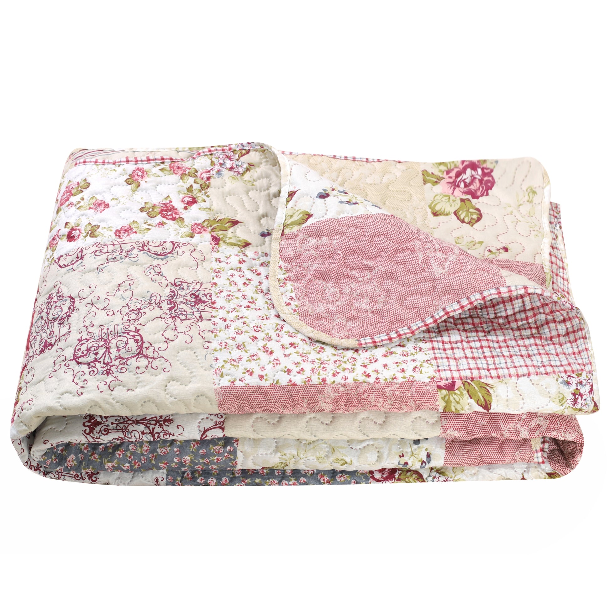 Printed Embossed Pinsonic Soft Bedding Summer Quilt Set, Floral Plaid