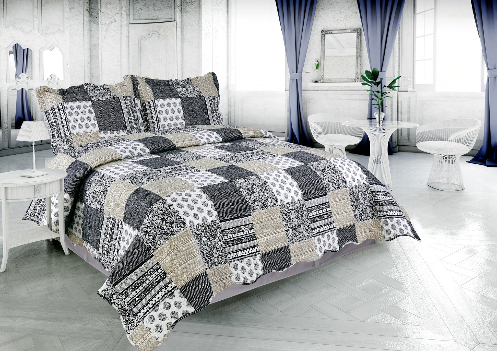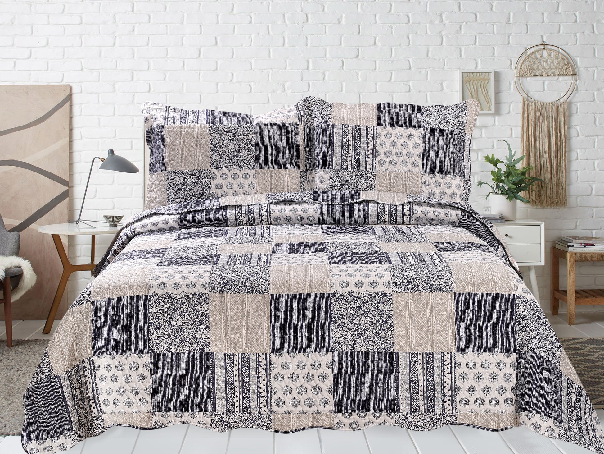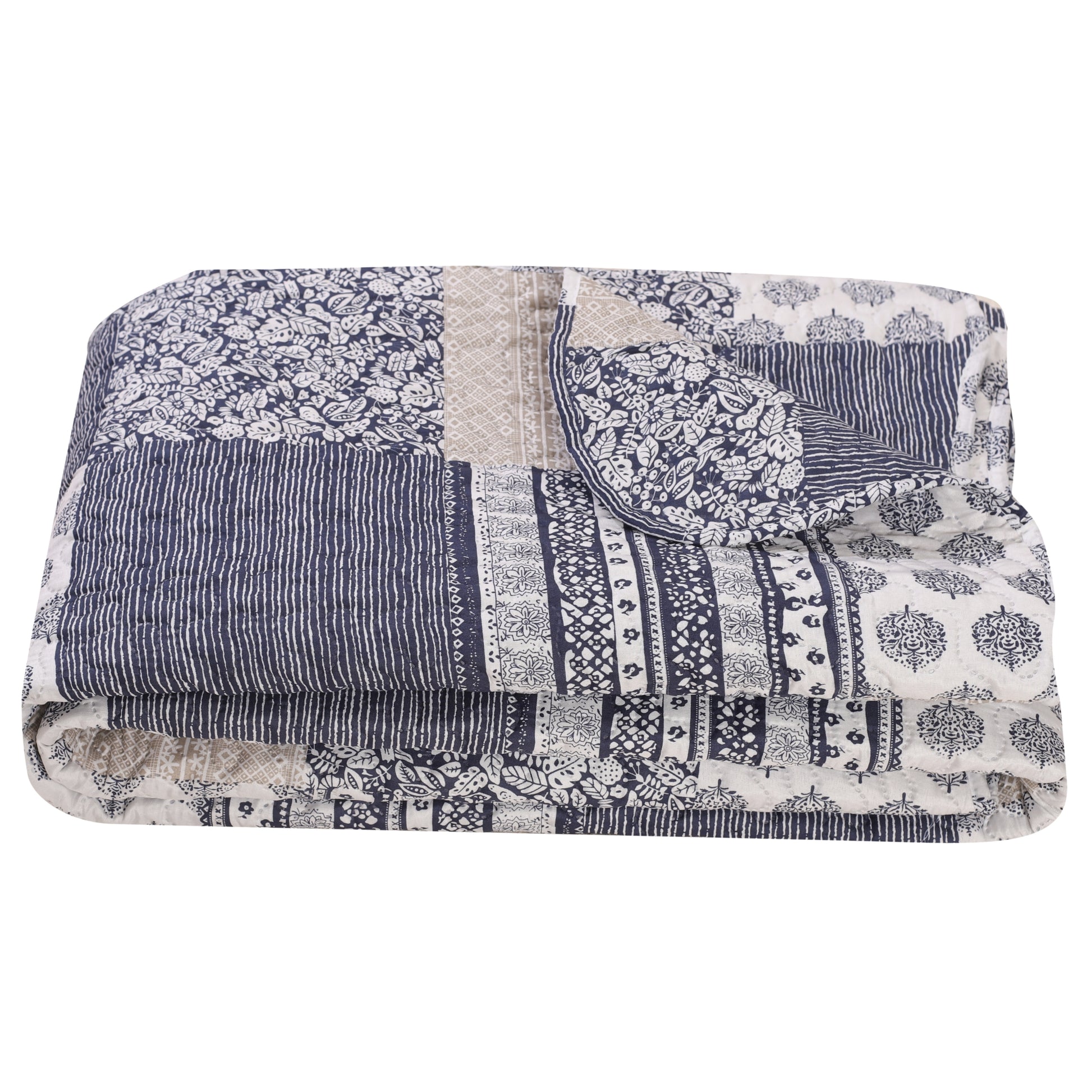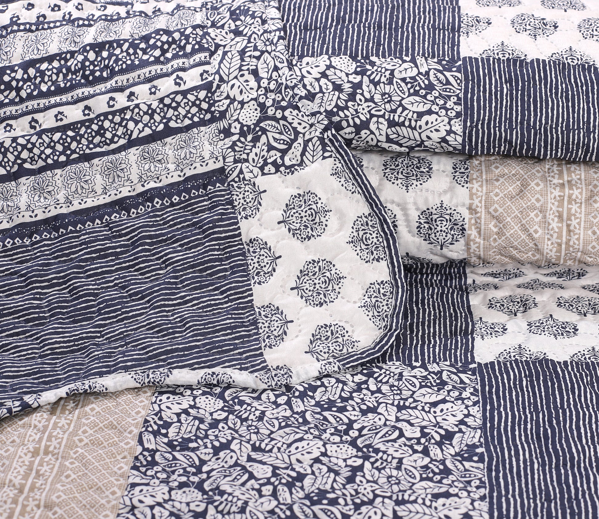 Printed Modern Design - This Unique Decorative Printed Embossed Quilt Sets is Perfect for Home Decoration. This Pattern is Consist of Leaves Stripes Floral Geometric Plaid Pattern with Navy Blue Taupe White Color. Fine Linen Breathable Elegant and Reversible Luxury Lightweight Quilt Bedding Set. Perfect Choice for Homeowners with Sophisticated Tastes in Decoration