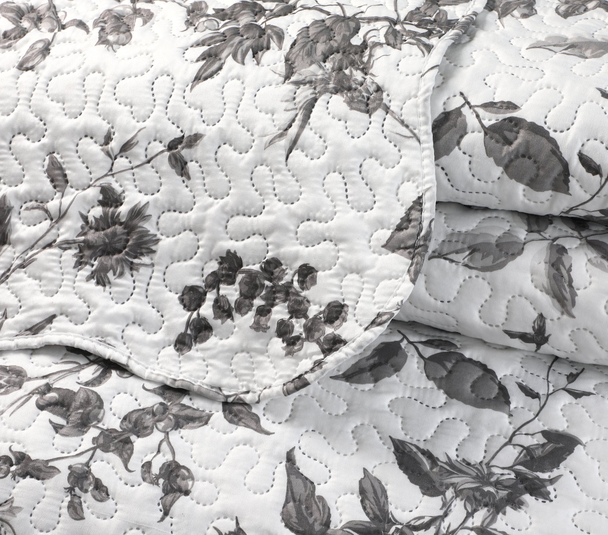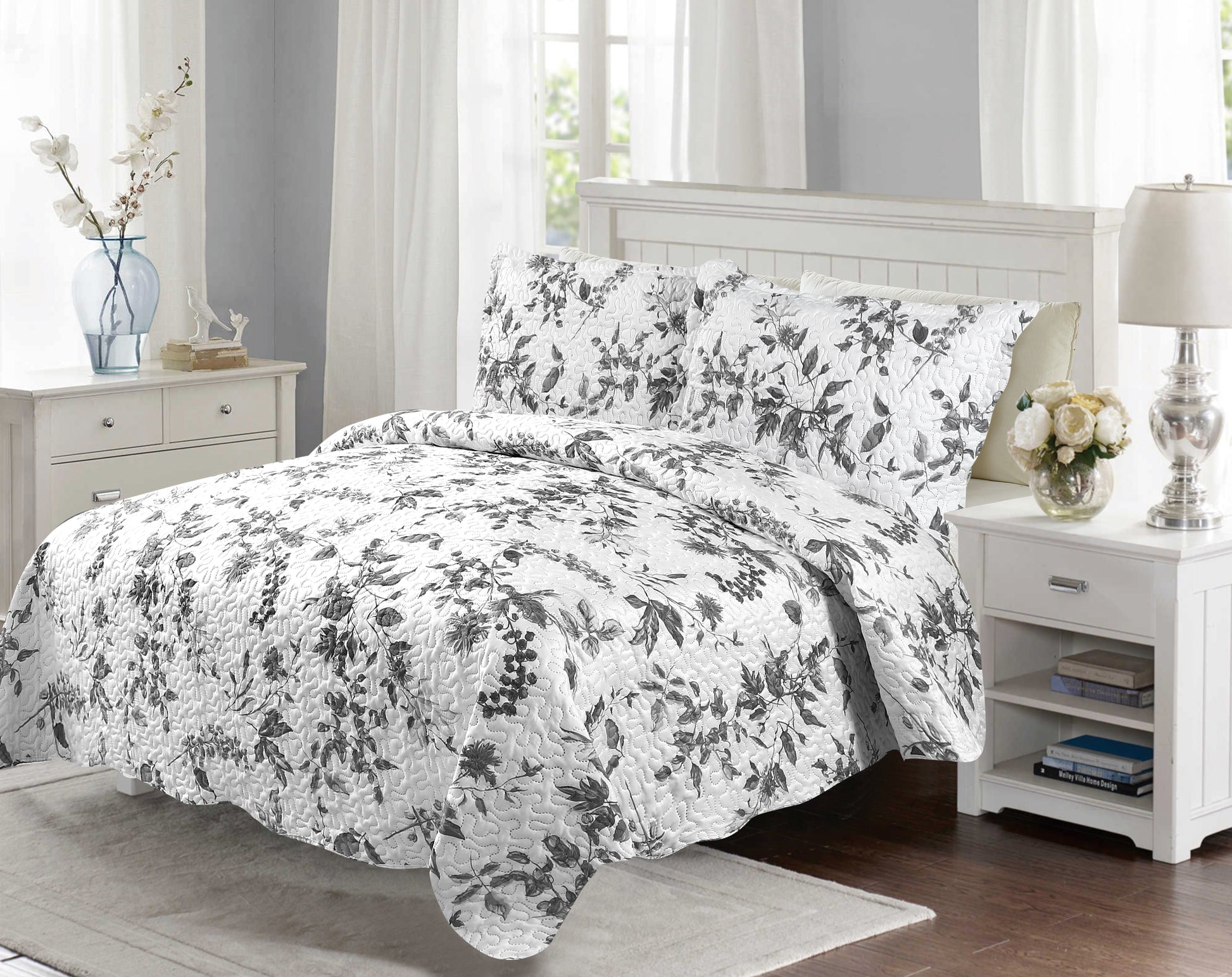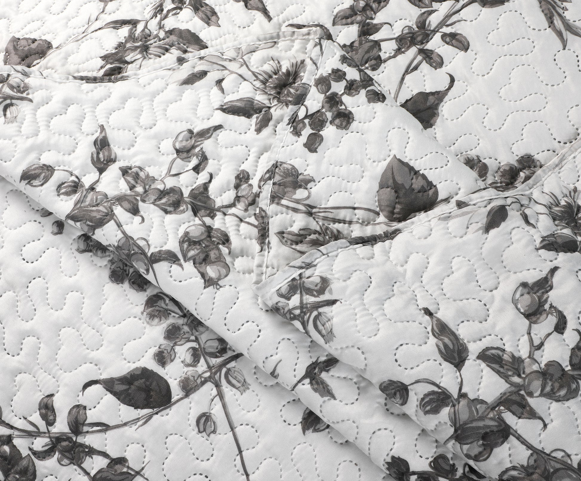 Printed Embossed Pinsonic Soft Bedding Summer Quilt Set, Grey Floral