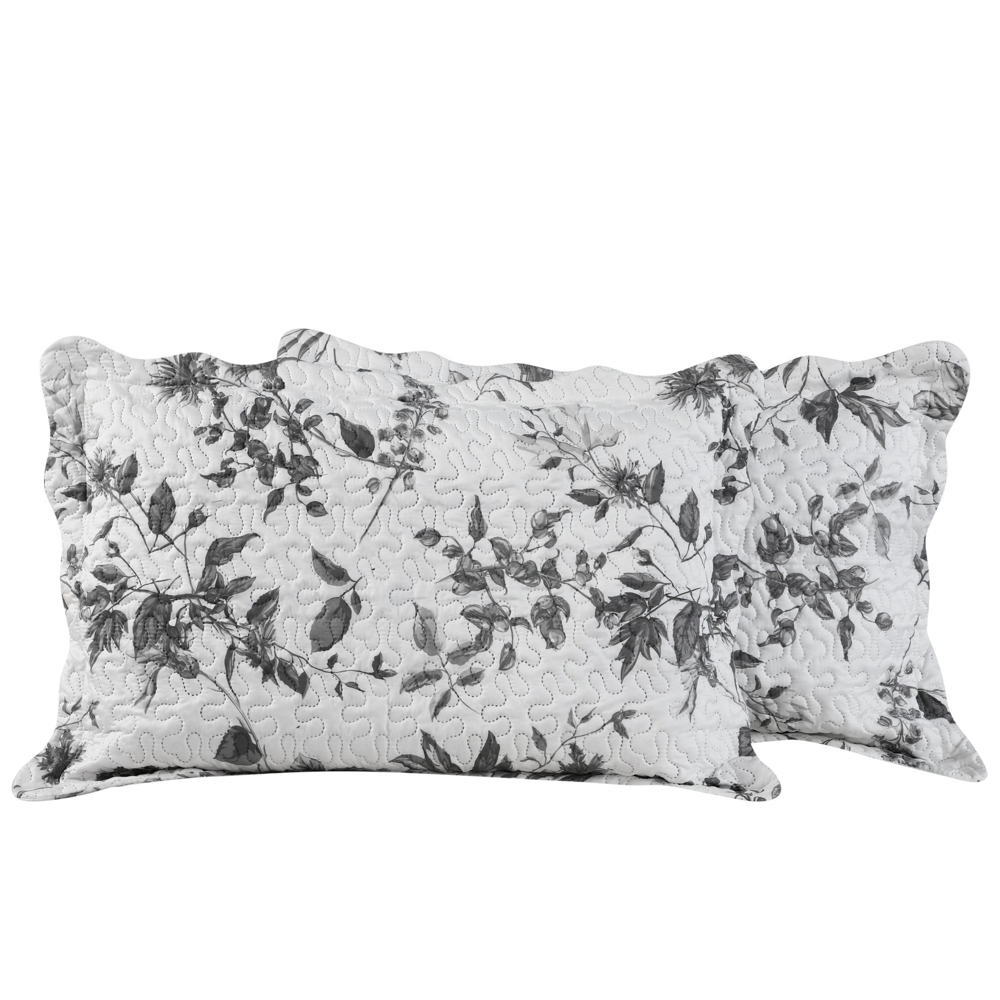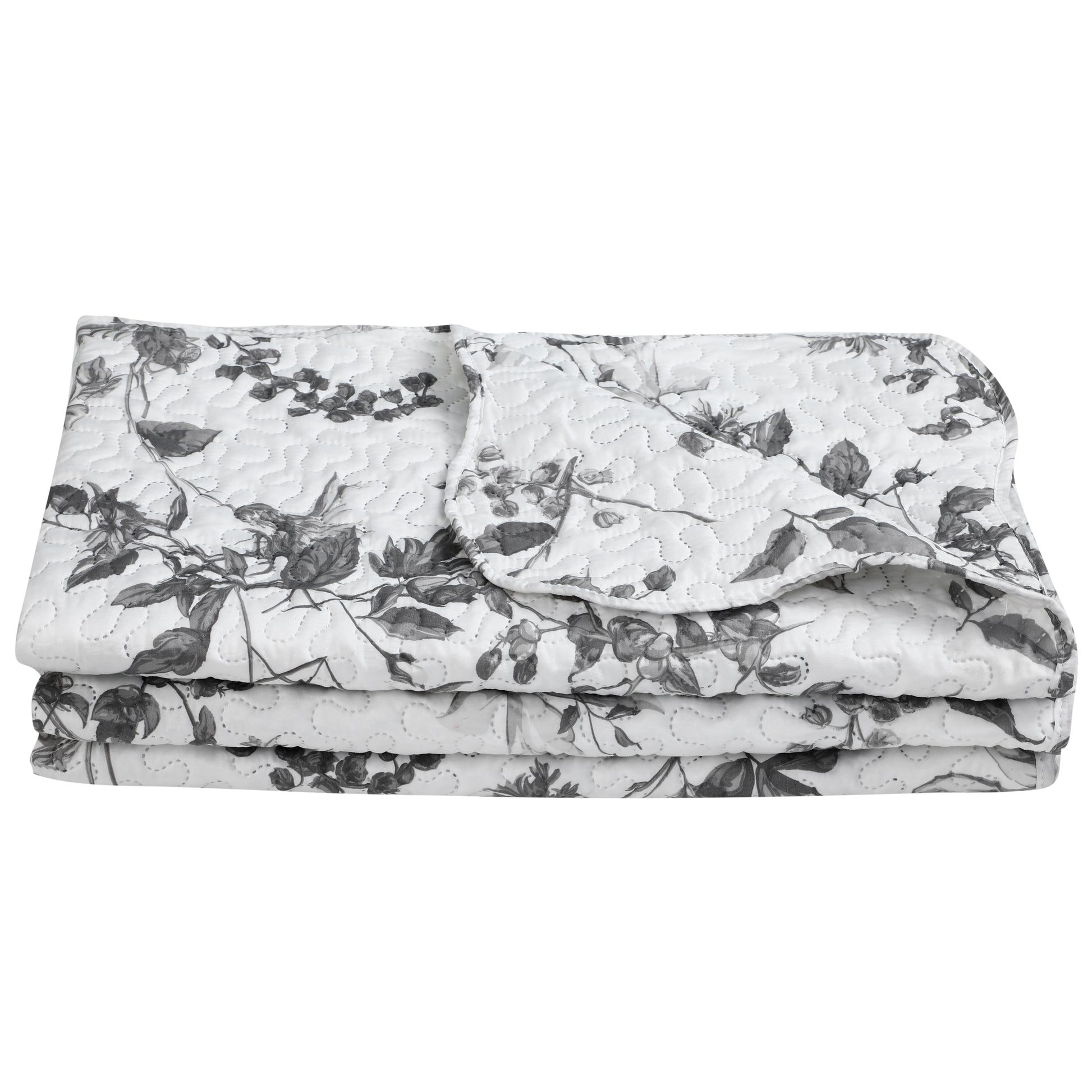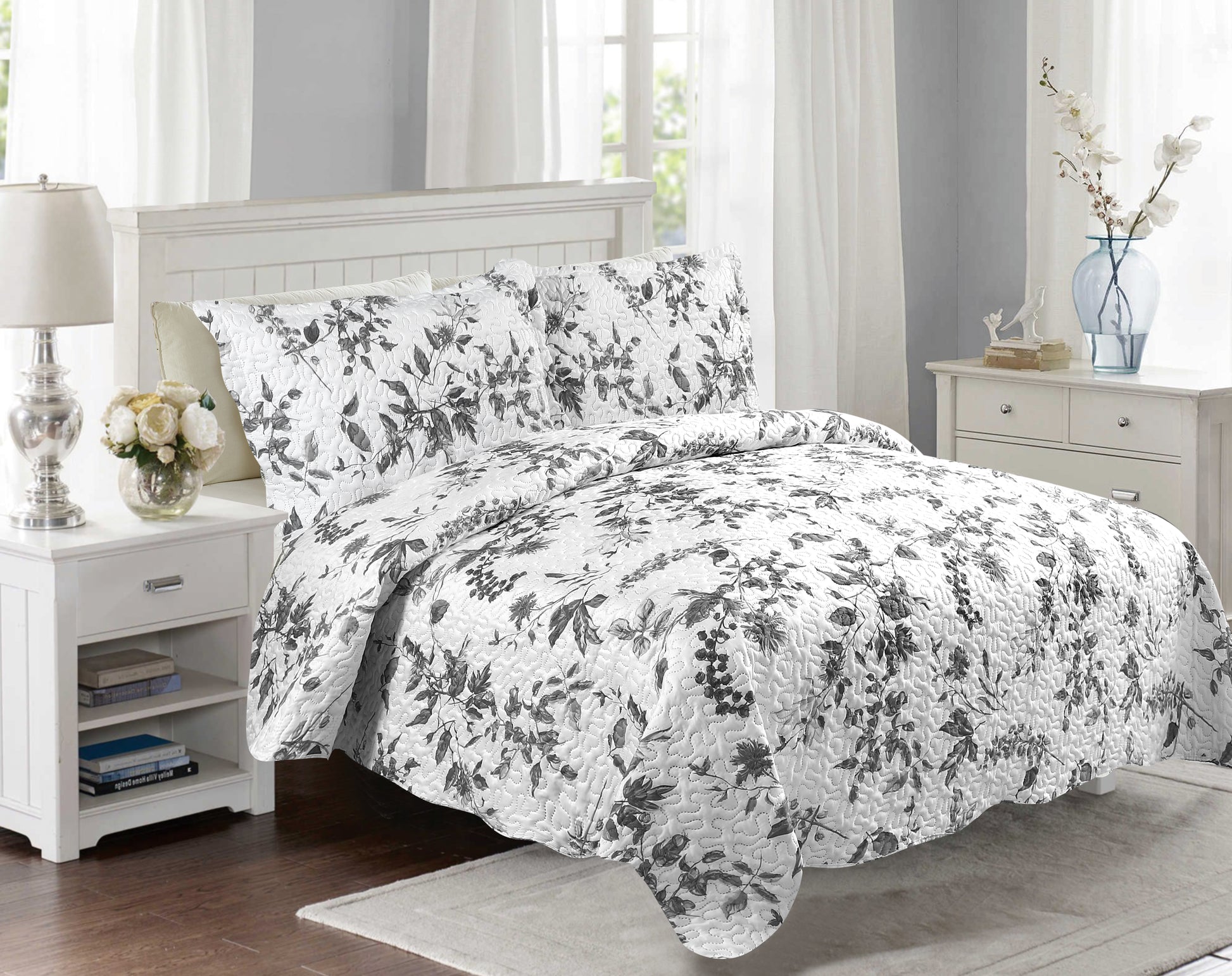 Printed Embossed Pinsonic Soft Bedding Summer Quilt Set, Grey Floral