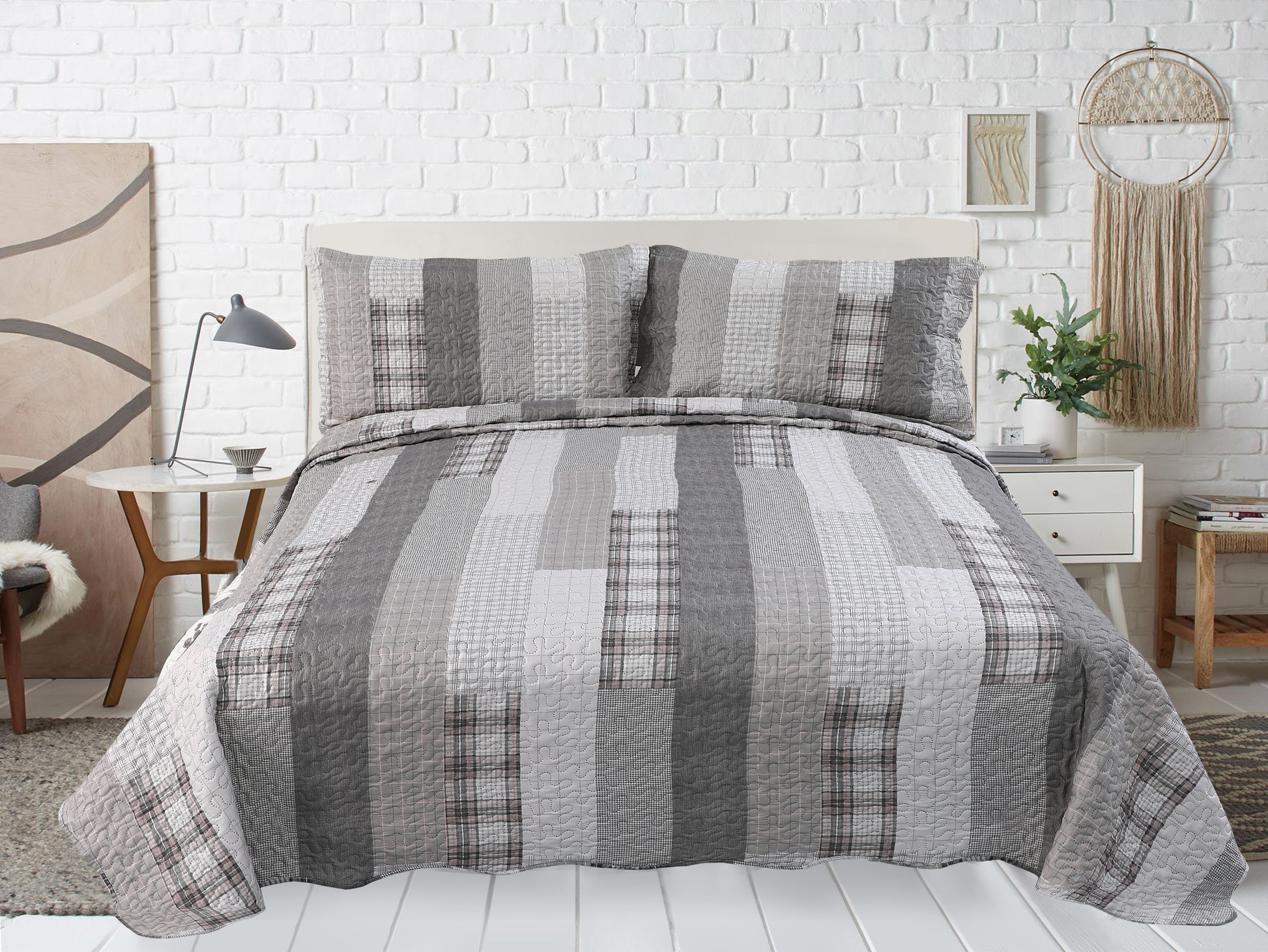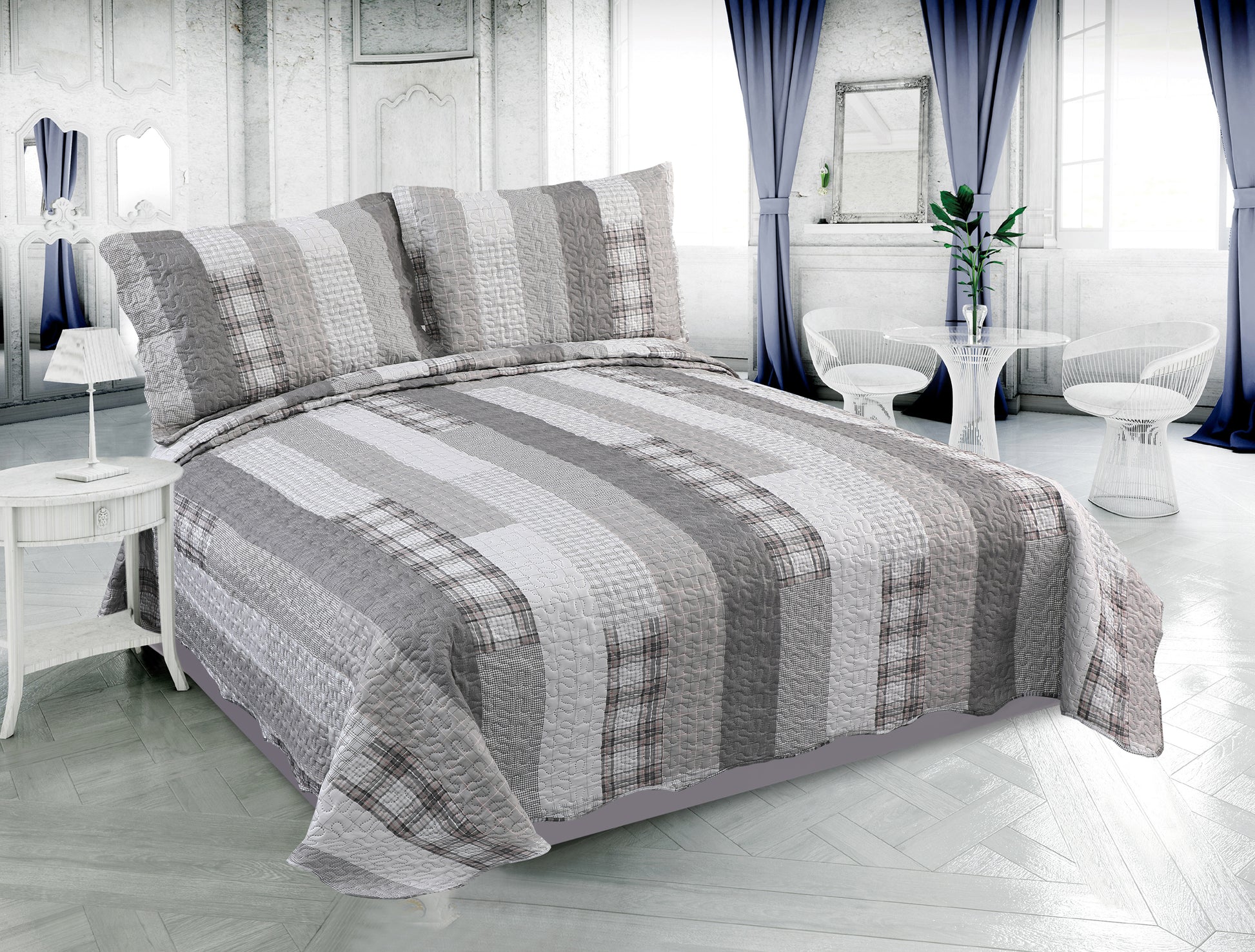 Printed Modern Design - This Unique Decorative Printed Embossed Quilt Sets is Perfect for Home Decoration. This Modern Multi Geometric Striped Pattern is Consist of Tartan, Gingham, Solid with White Taupe Grey Silver Color. Fine Linen Breathable Elegant and Reversible Luxury Lightweight Quilt Bedding Set. Perfect Choice for Homeowners with Sophisticated Tastes in Decoration