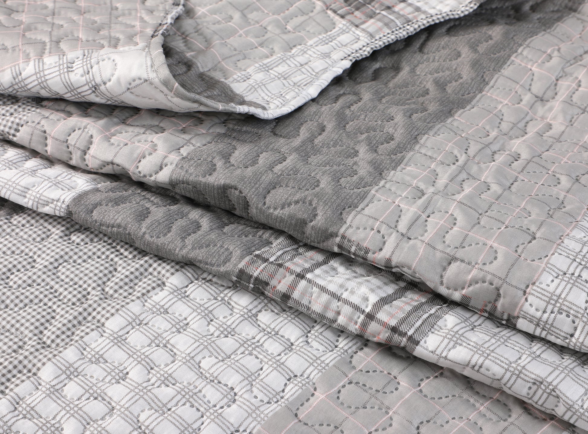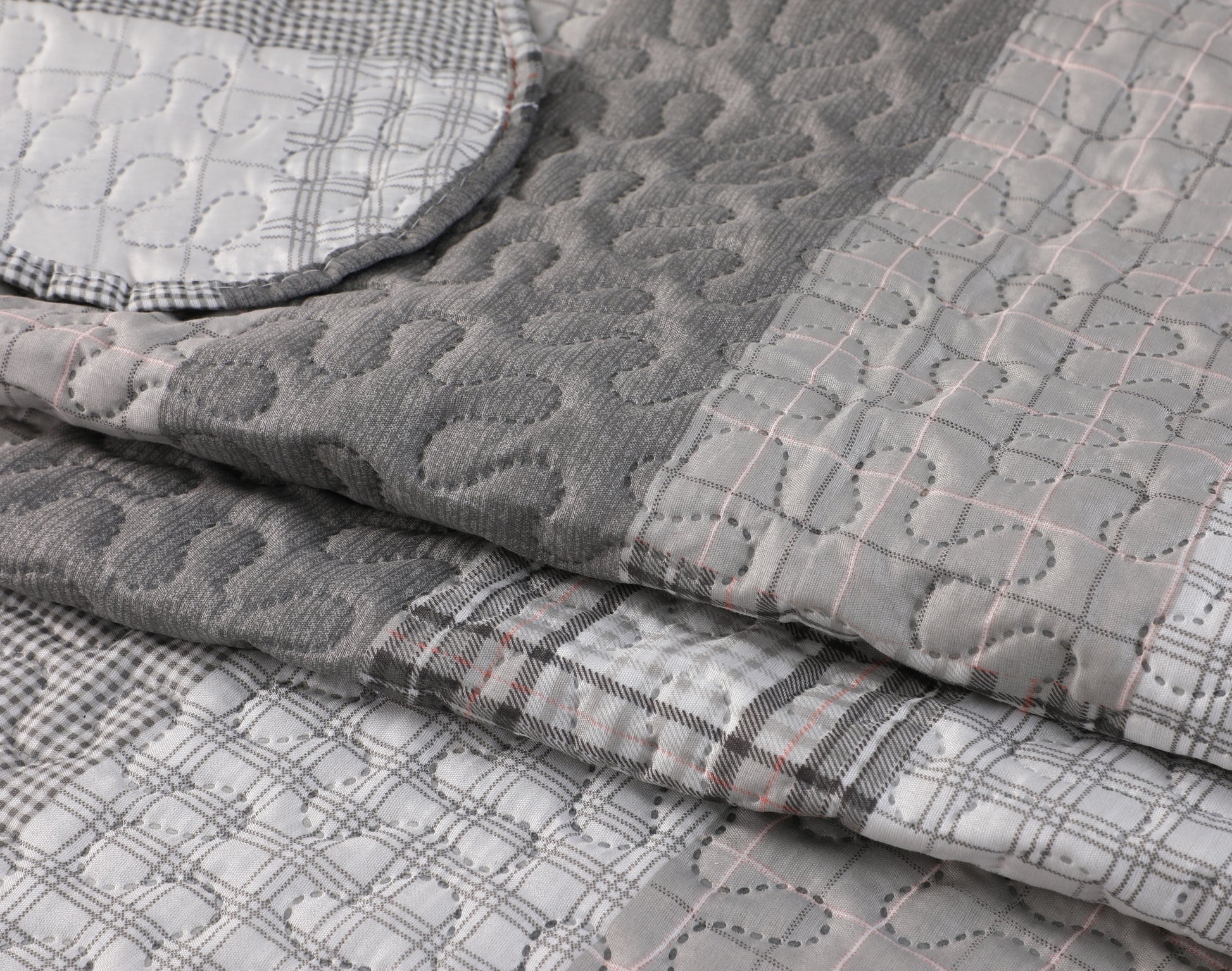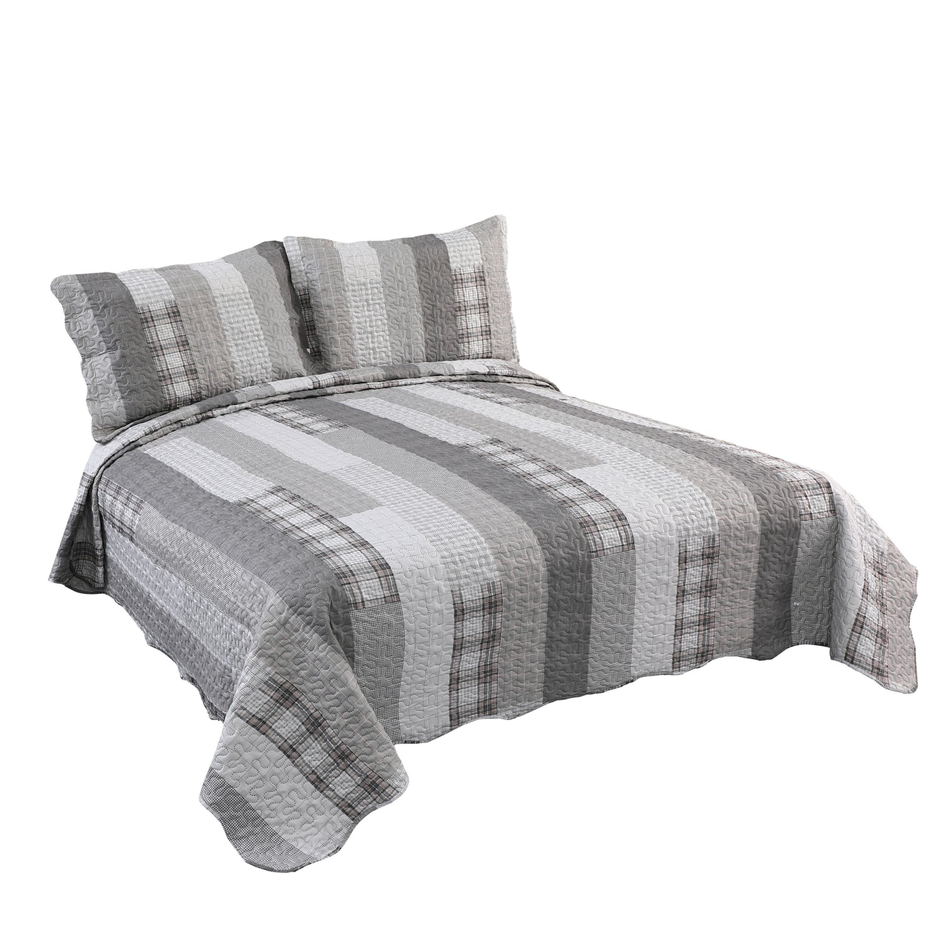 Printed Embossed Pinsonic Soft Bedding Summer Quilt Set, Modern Grey Striped