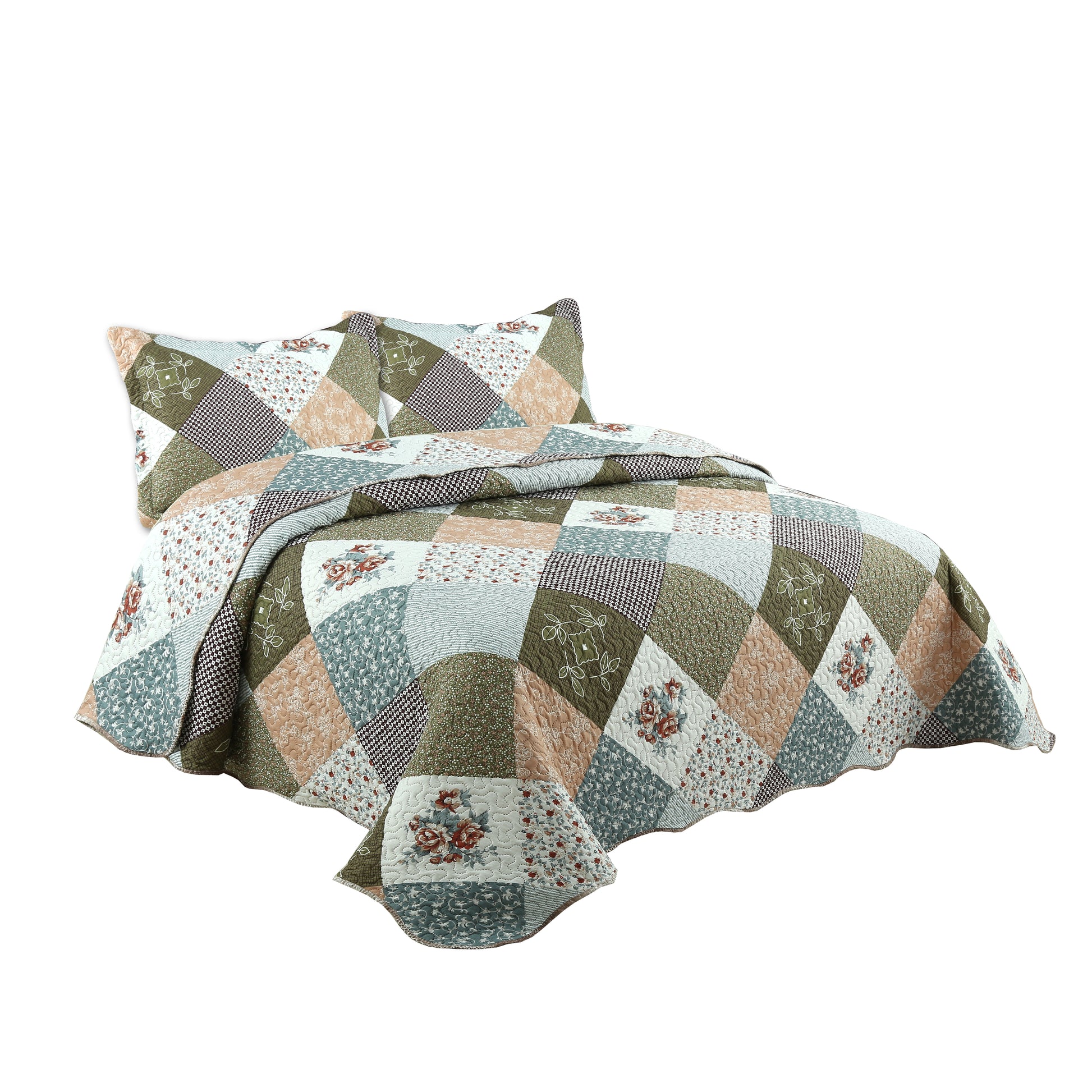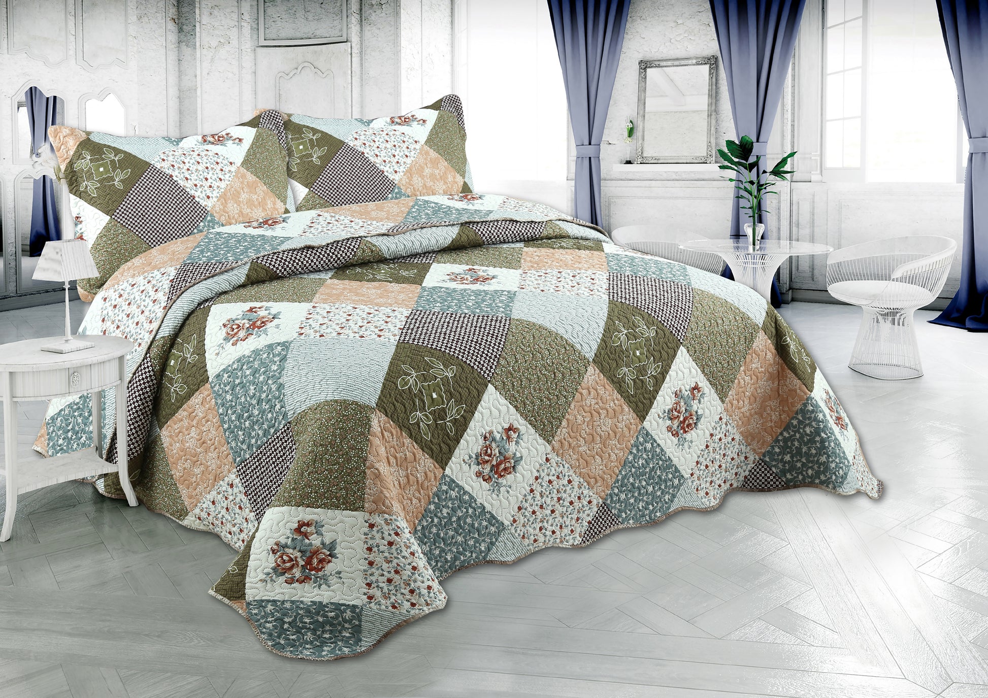 Printed Embossed Pinsonic Soft Bedding Summer Quilt Set, Modern Floral Plaid