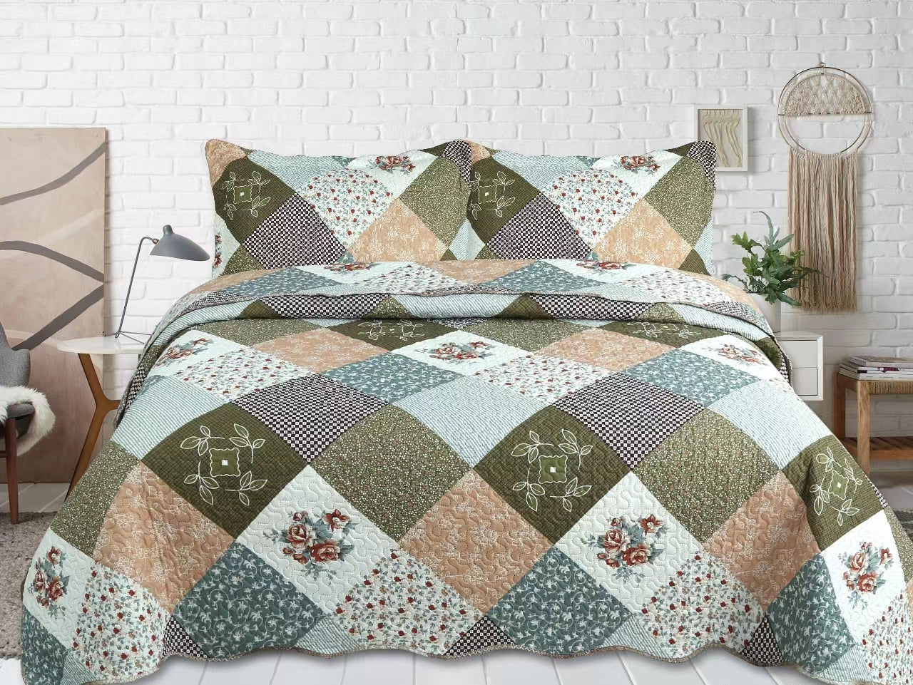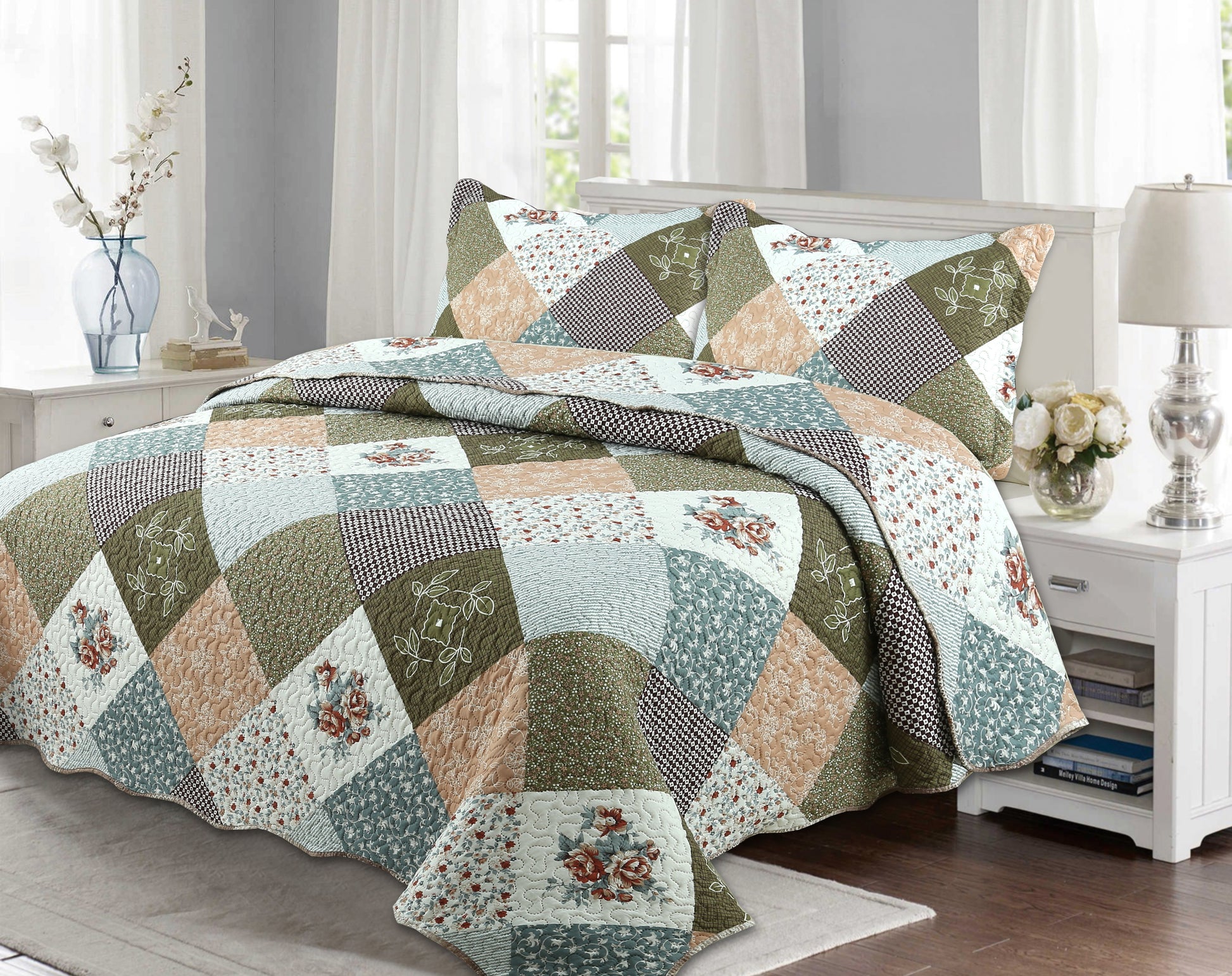 Printed Modern Design - This Unique Decorative Printed Embossed Quilt Sets is Perfect for Home Decoration. This Modern Diagonal Plaid Pattern is Consist of Light Blue Stripe with White Base, Brown White Check, Pink Rose, White Floral with Navy Base, White Floral with Pink Base, Brown Paisley. Fine Linen Breathable Elegant and Reversible Luxury Lightweight Quilt Bedding Set. Perfect Choice for Homeowners with Sophisticated Tastes in Decoration