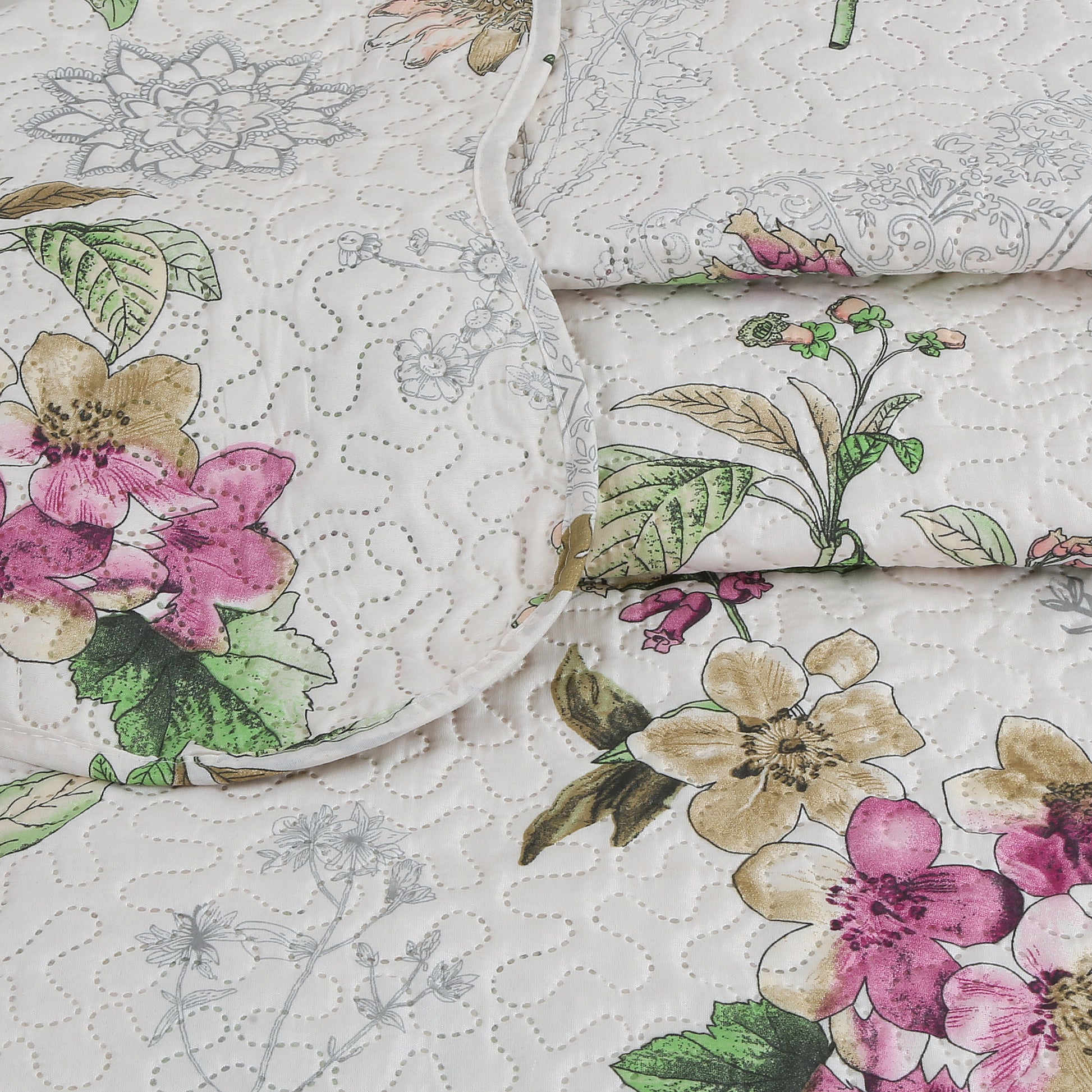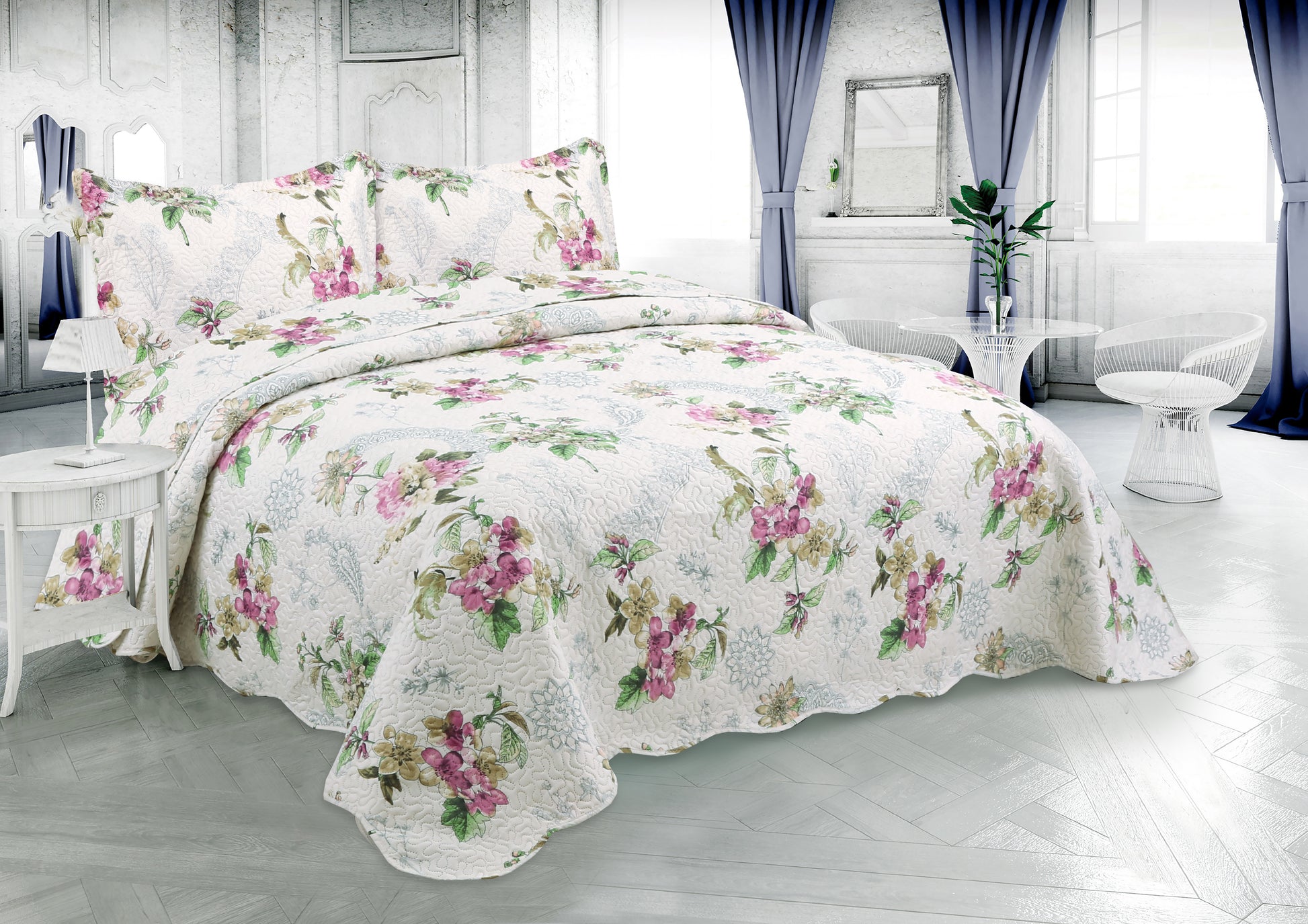 Printed Modern Design - This Unique Decorative Printed Embossed Quilt Sets is Perfect for Home Decoration. This Modern Floral Pattern is Consist of Light Purple and Taupe Violet Flower and Peony and Grey Mandala with Off White Base. Fine Linen Breathable Elegant and Reversible Luxury Lightweight Quilt Bedding Set. Perfect Choice for Homeowners with Sophisticated Tastes in Decoration