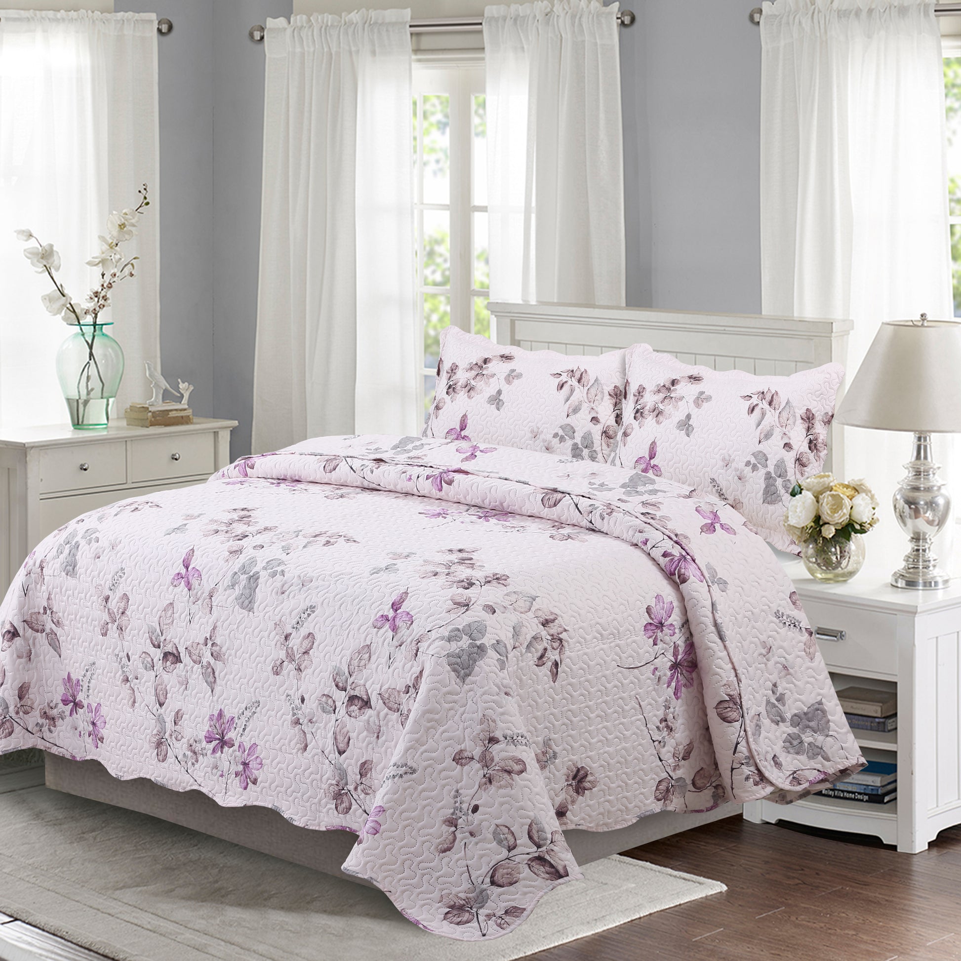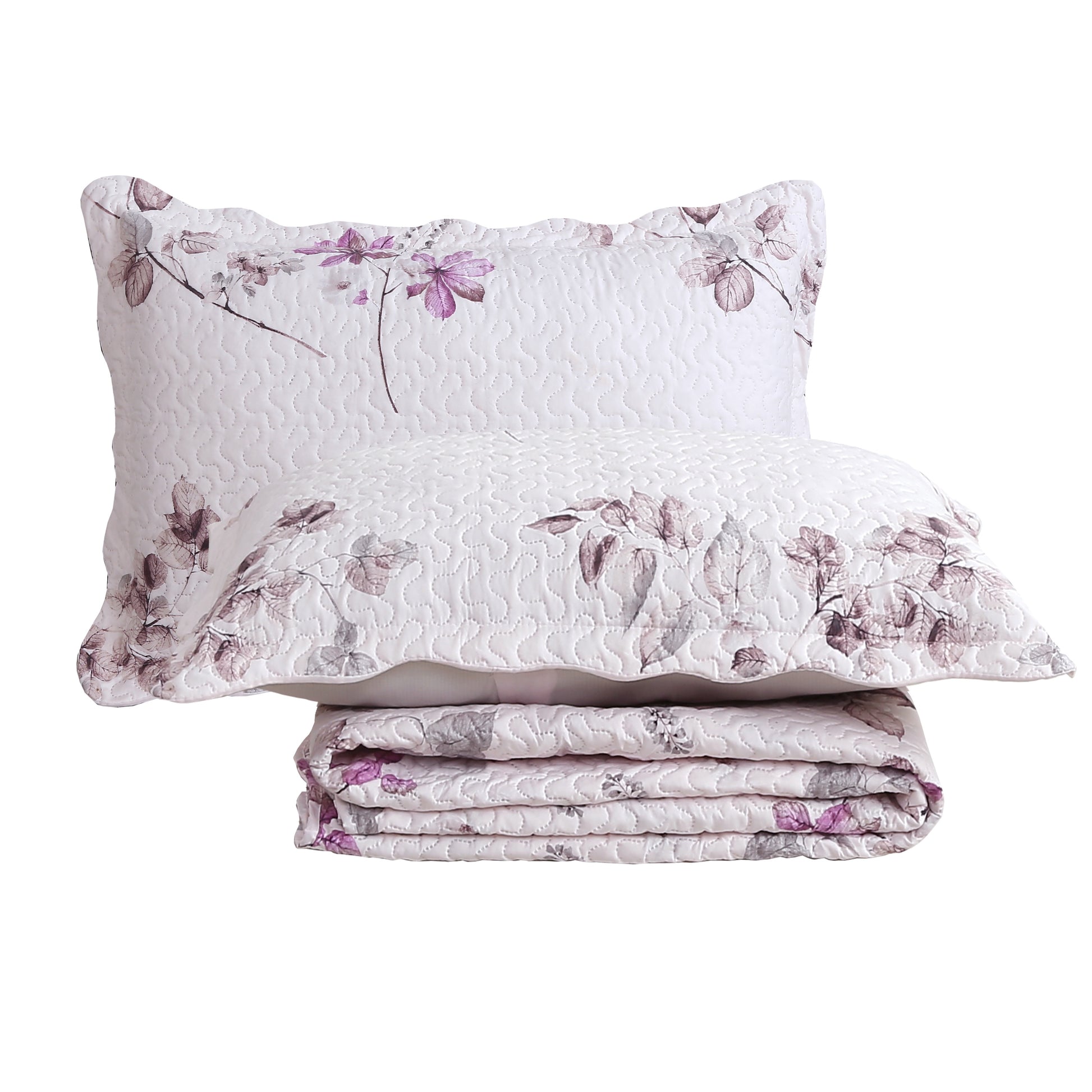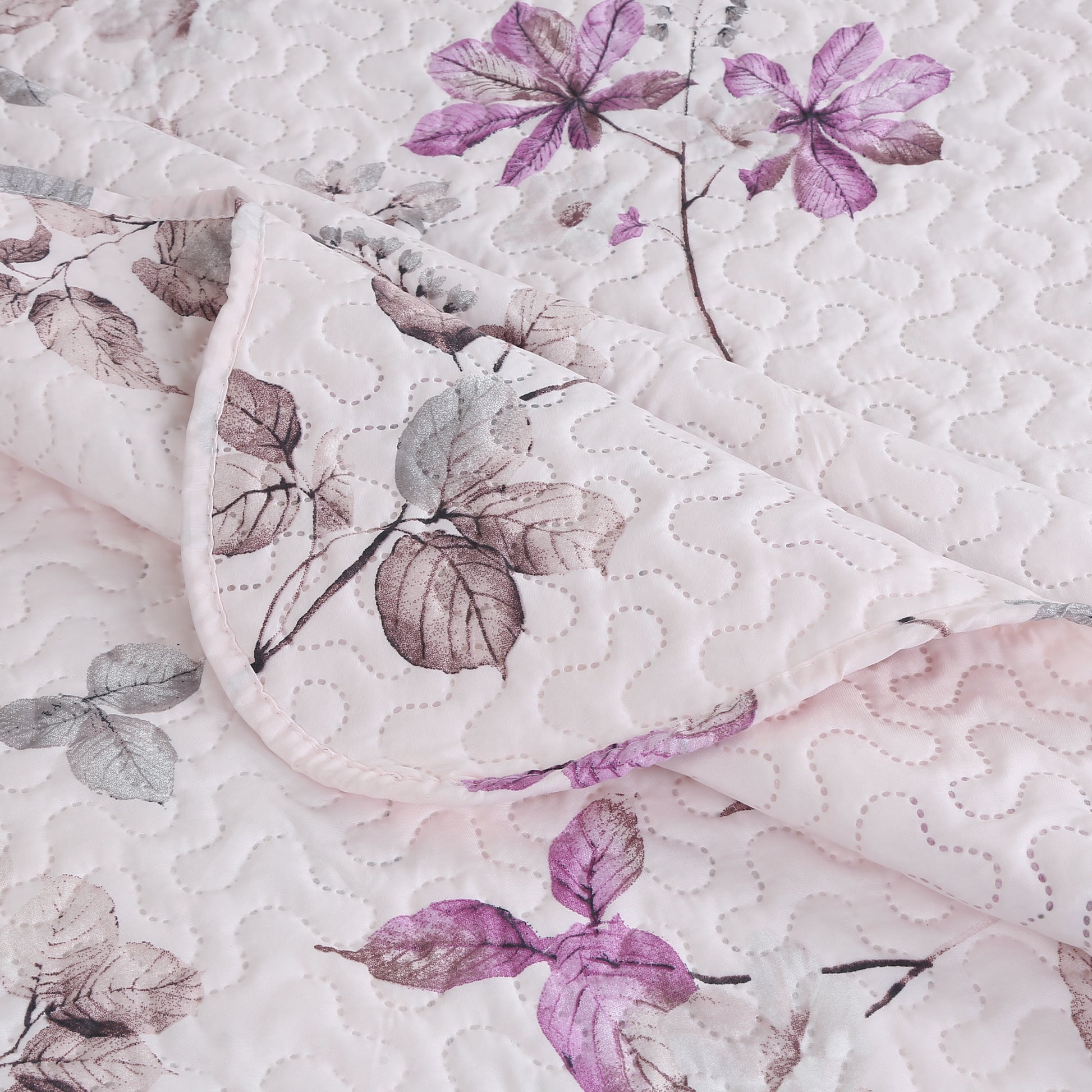 Printed Modern Design - This Unique Decorative Printed Embossed Quilt Sets is Perfect for Home Decoration. This Modern Floral Pattern is Consist of Purple and Grey Leaves with Pink Base. Fine Linen Breathable Elegant and Reversible Luxury Lightweight Quilt Bedding Set. Perfect Choice for Homeowners with Sophisticated Tastes in Decoration