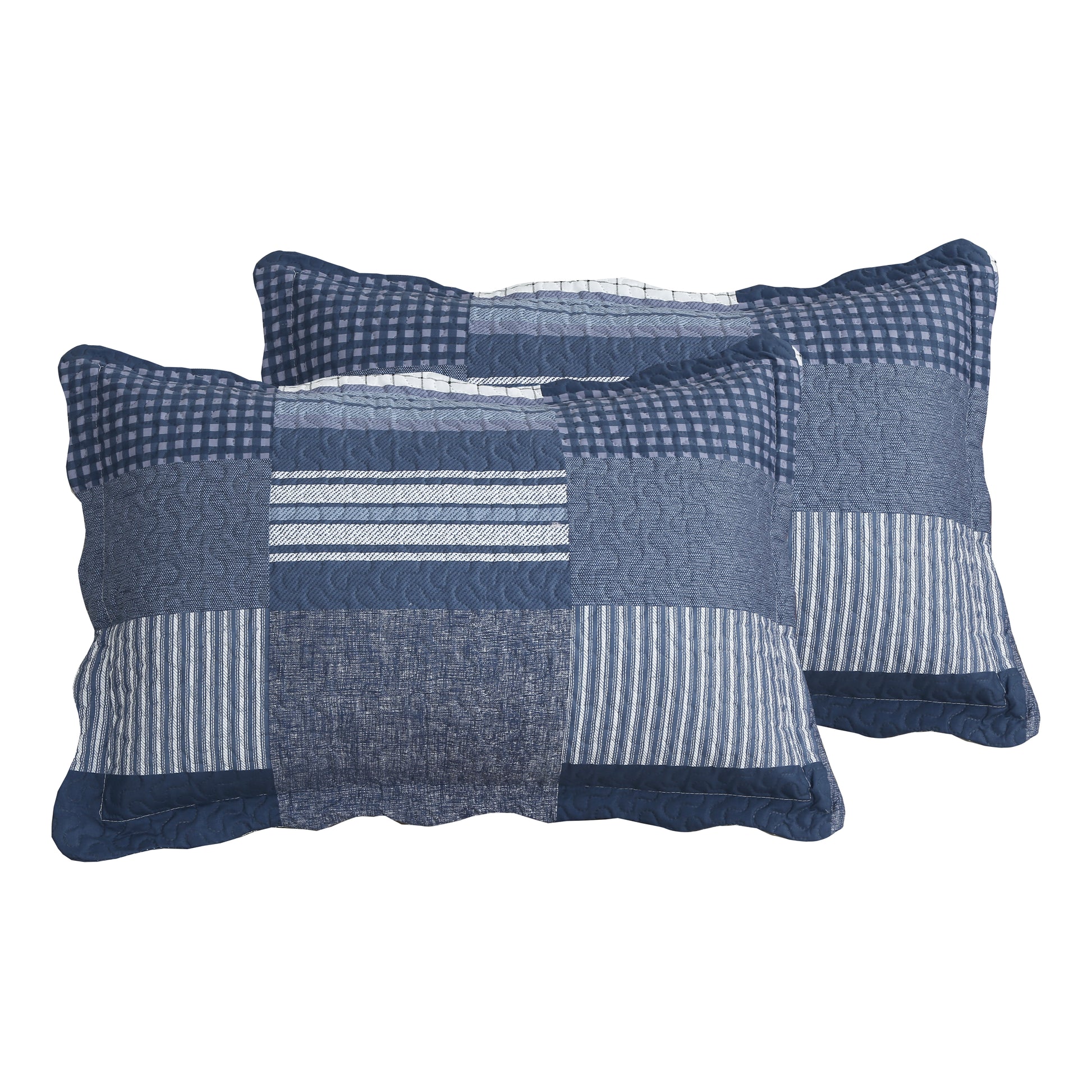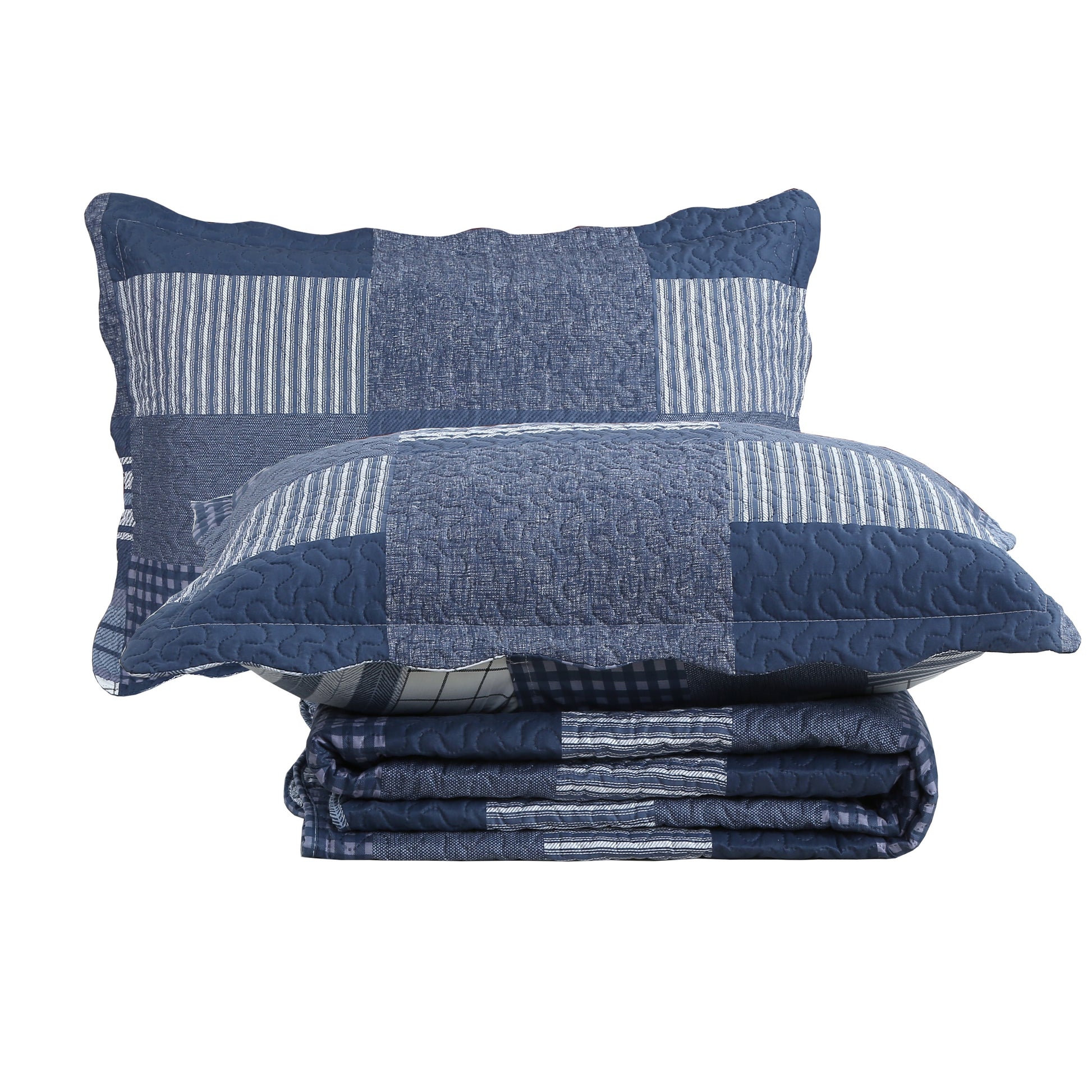 Printed Modern Design - This Unique Decorative Printed Embossed Quilt Sets is Perfect for Home Decoration. This Classic Plaid Pattern is Consist of Navy Blue, Blue and White Gingham Solid Stripes Plaid. Fine Linen Breathable Elegant and Reversible Luxury Lightweight Quilt Bedding Set. Perfect Choice for Homeowners with Sophisticated Tastes in Decoration