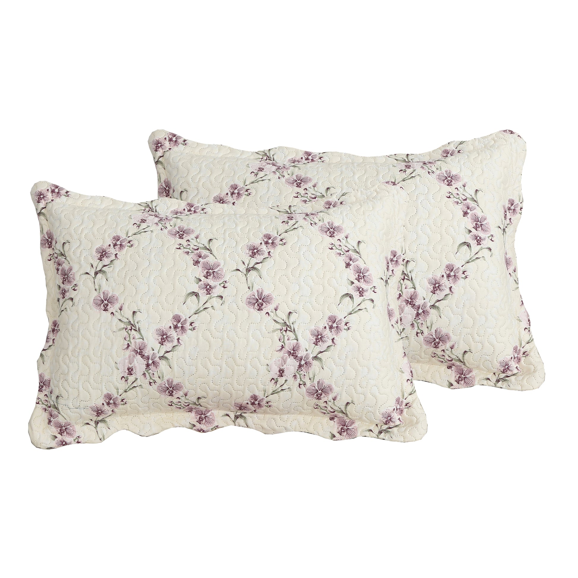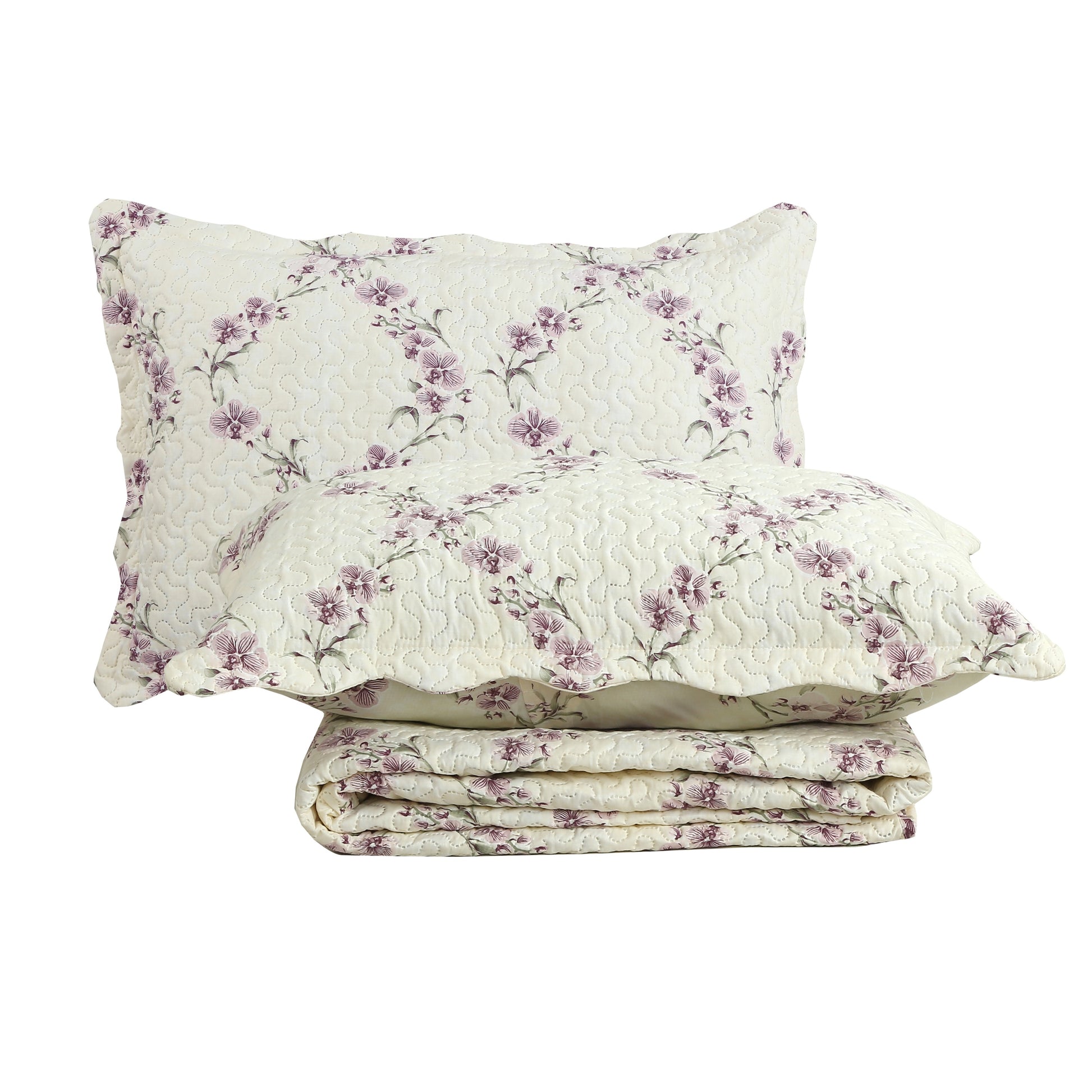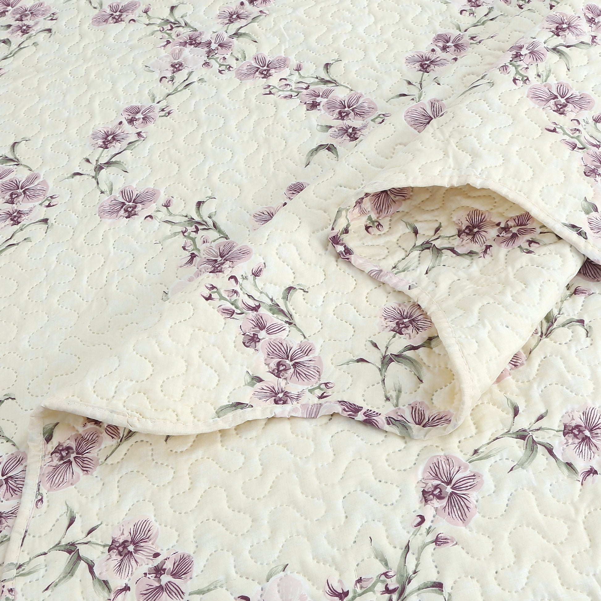 Printed Modern Design - This Unique Decorative Printed Embossed Quilt Sets is Perfect for Home Decoration. This Modern Floral Pattern is Consist of Purple and Pink Orchid Flowers with Cream Base. Fine Linen Breathable Elegant and Reversible Luxury Lightweight Quilt Bedding Set. Perfect Choice for Homeowners with Sophisticated Tastes in Decoration