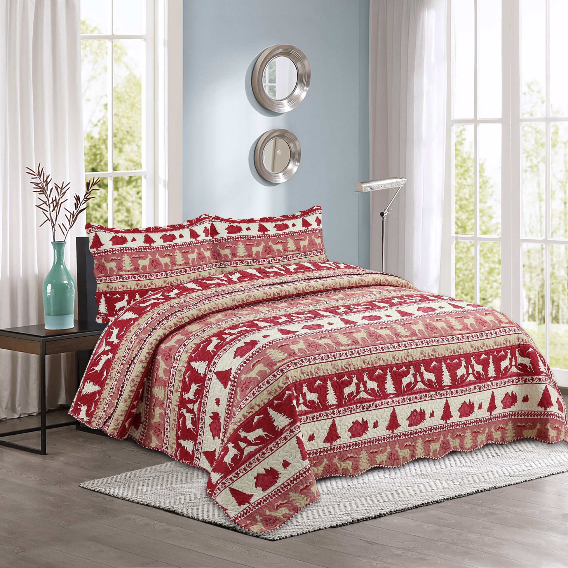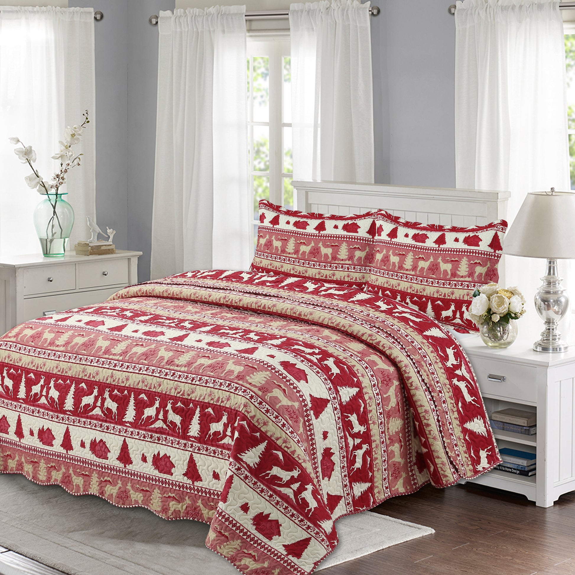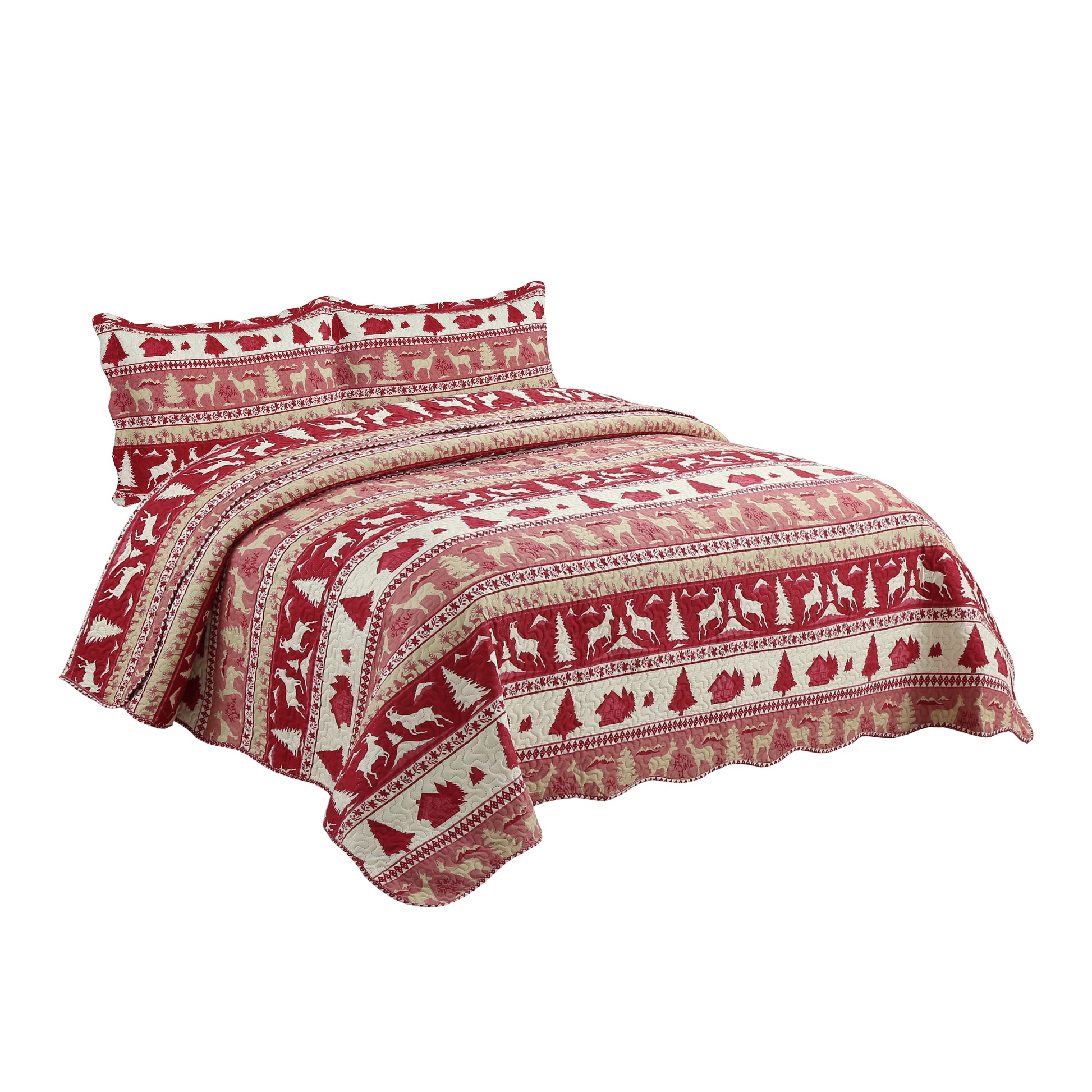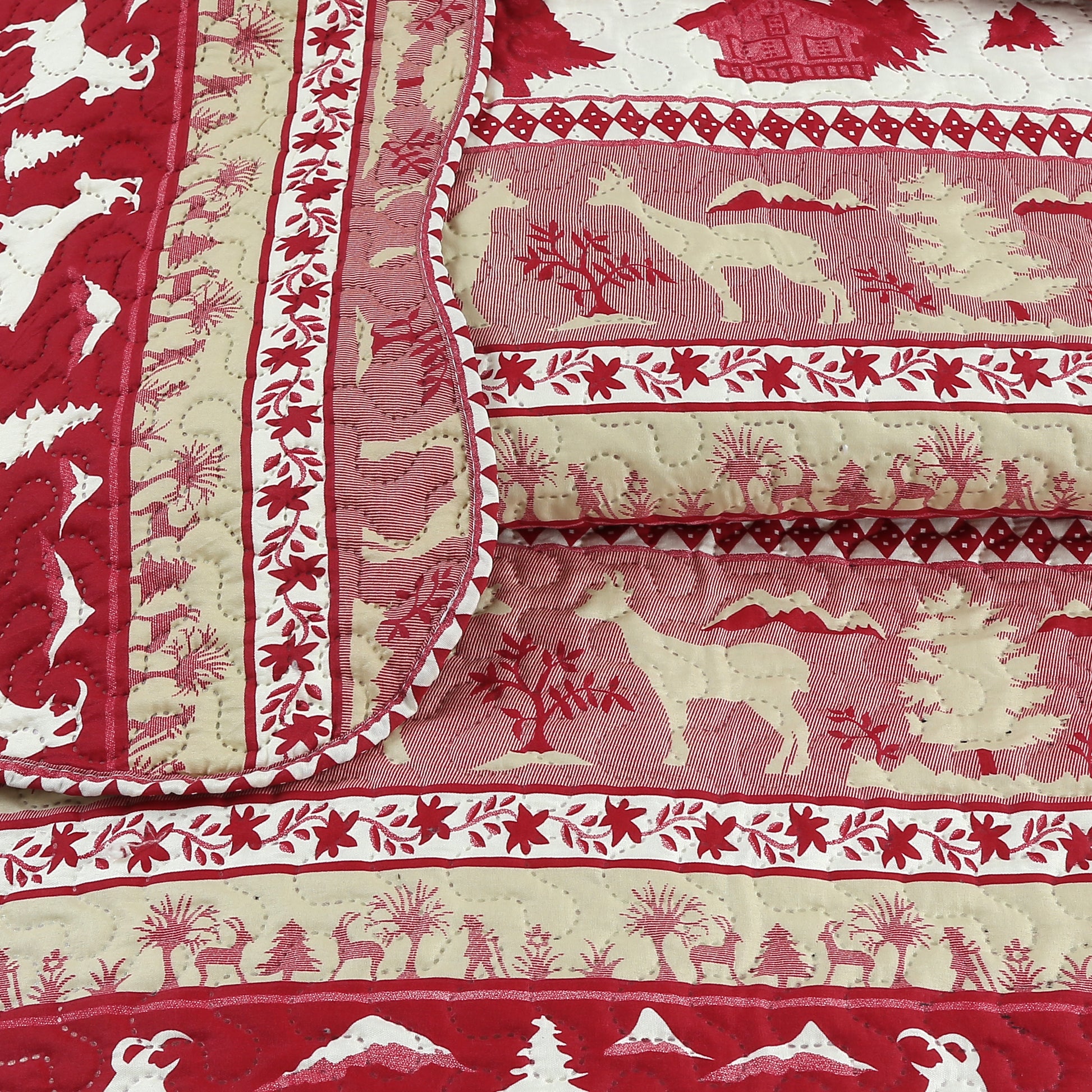 Printed Embossed Pinsonic Soft Bedding Summer Quilt Set, Cabin Red Goat