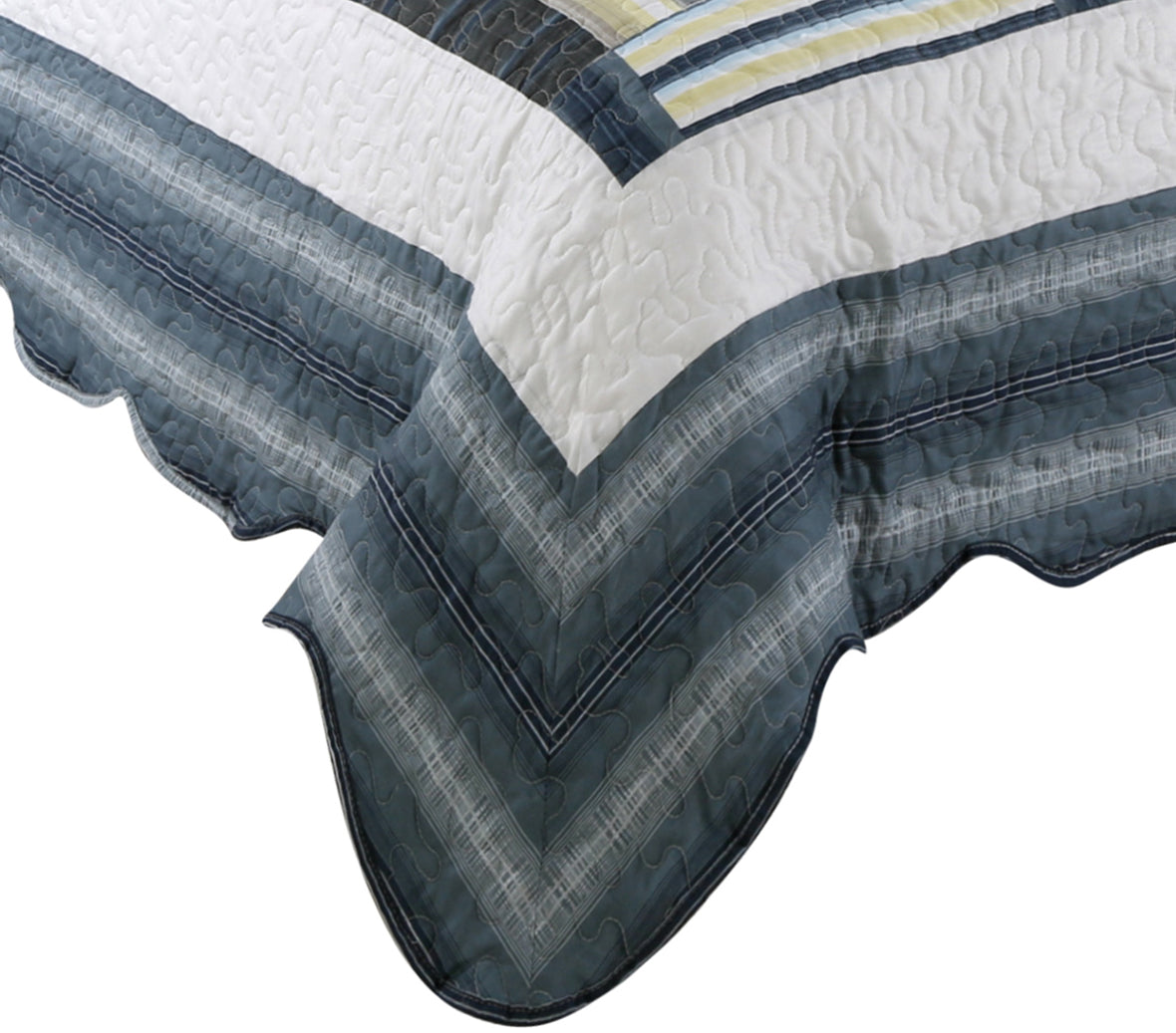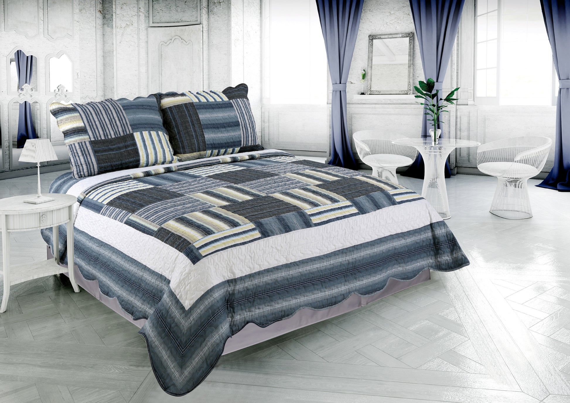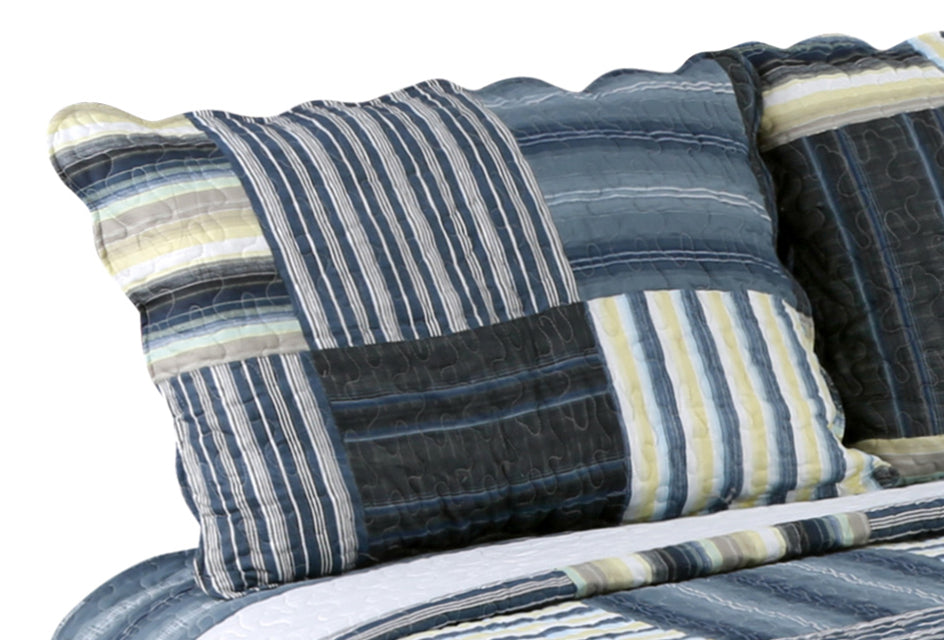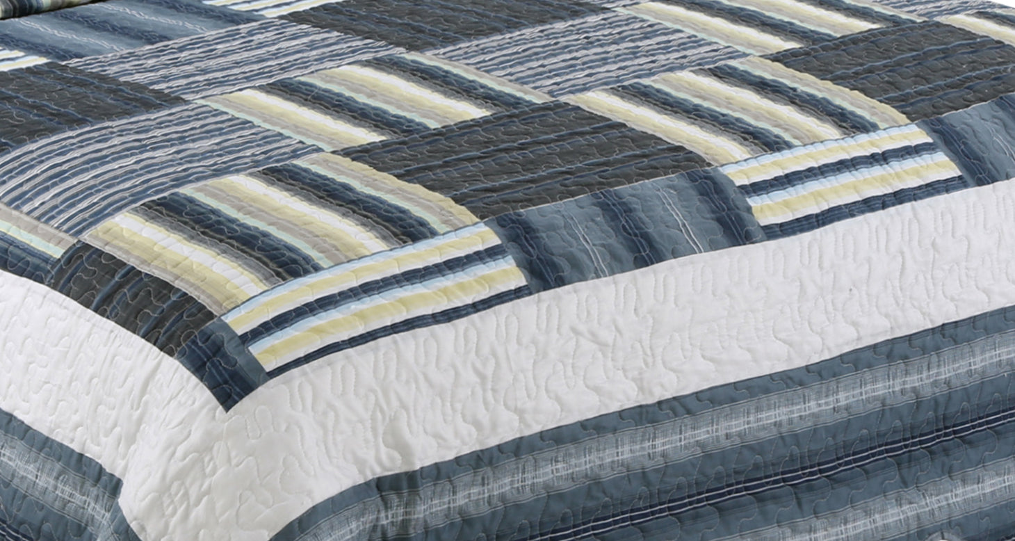 Printed Modern Design - This Unique Decorative Printed Quilt Sets is Perfect for Home Decoration. It is Consist of Multi Color Navy Blue, Taupe, Yellow Stripes Plaid with White Navy Base Color. Fine Linen Breathable Elegant and Reversible Luxury Lightweight Quilt Bedding Set. Perfect Choice for Homeowners with Sophisticated Tastes in Decoration