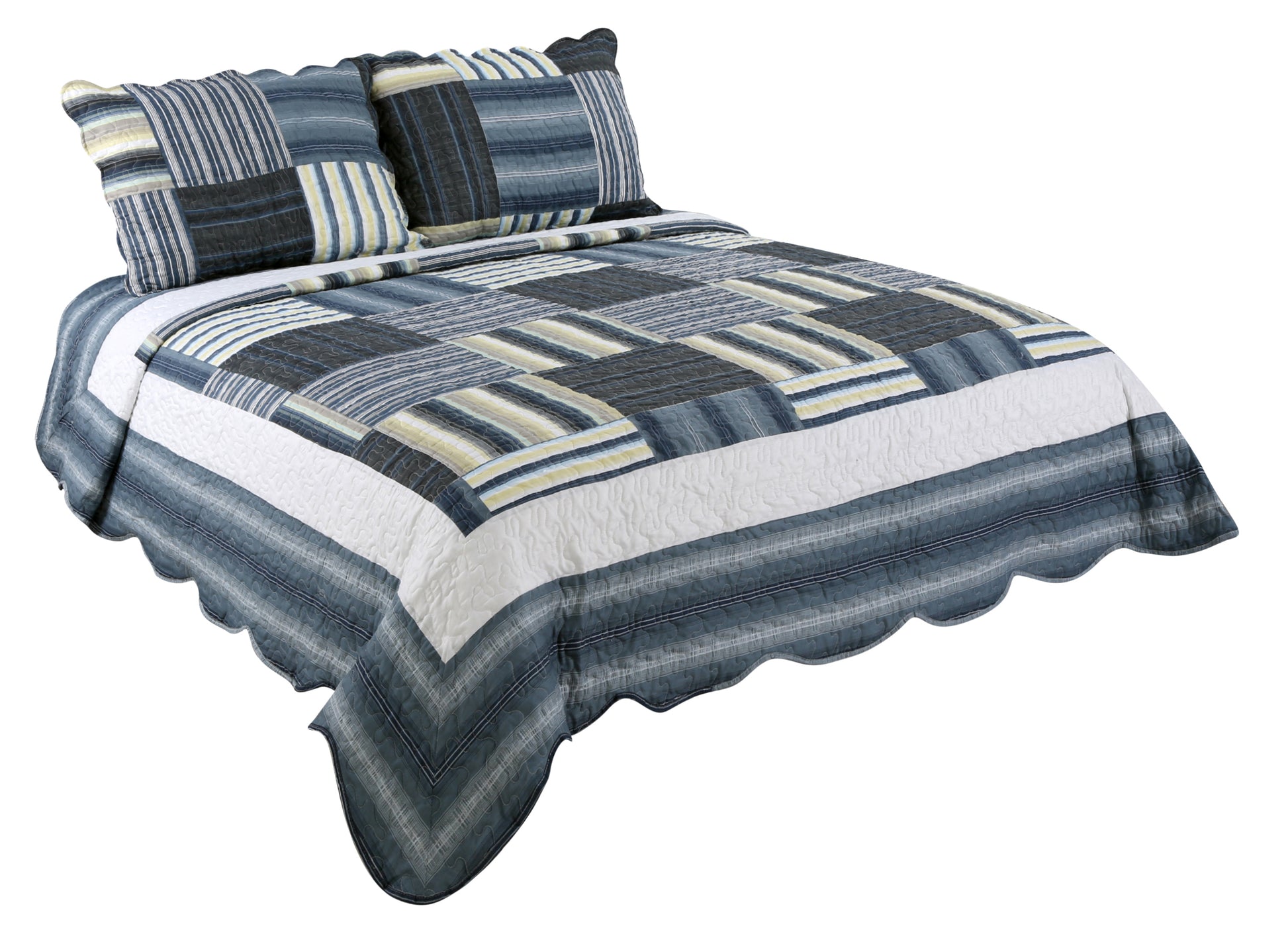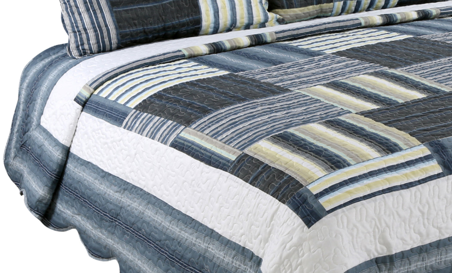 Printed Stitching Coverlet Bedspread Soft Bedding Summer Quilt Set, Navy Blue Plaid