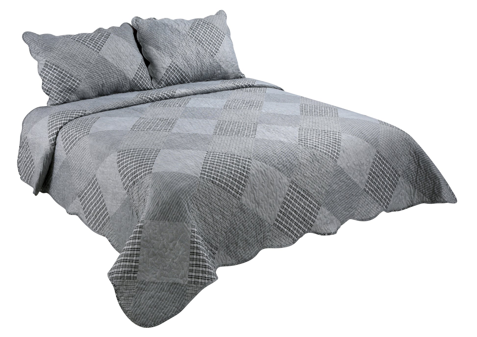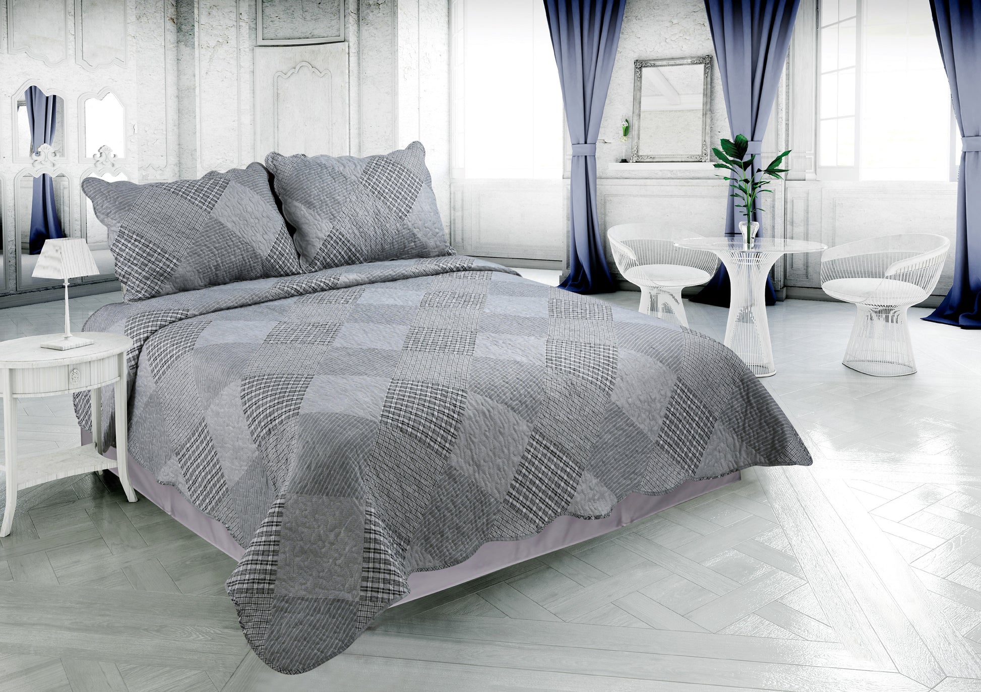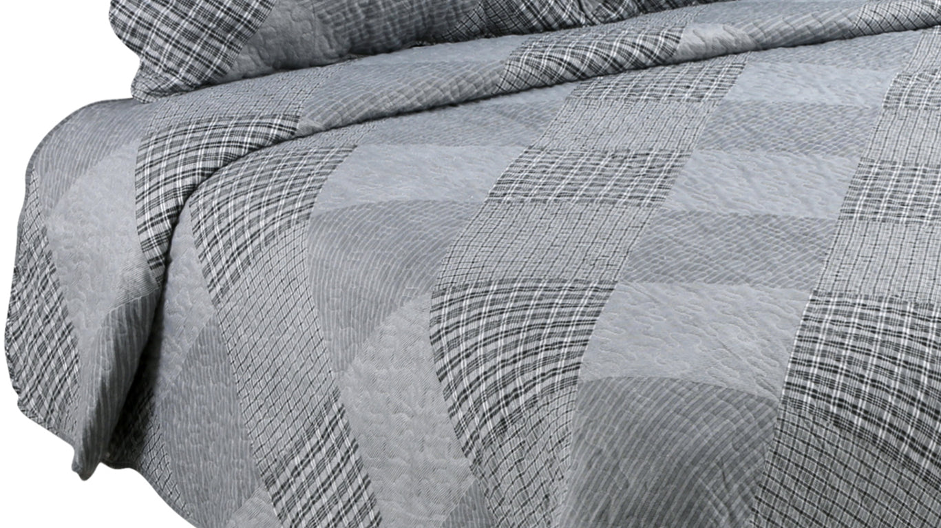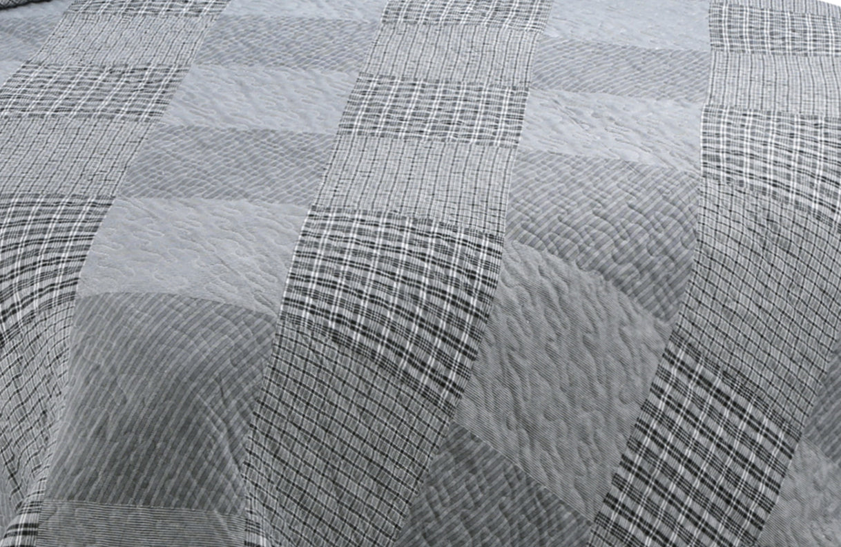 Printed Stitching Coverlet Bedspread Soft Bedding Summer Quilt Set, Grey Grid and Stripes Plaid