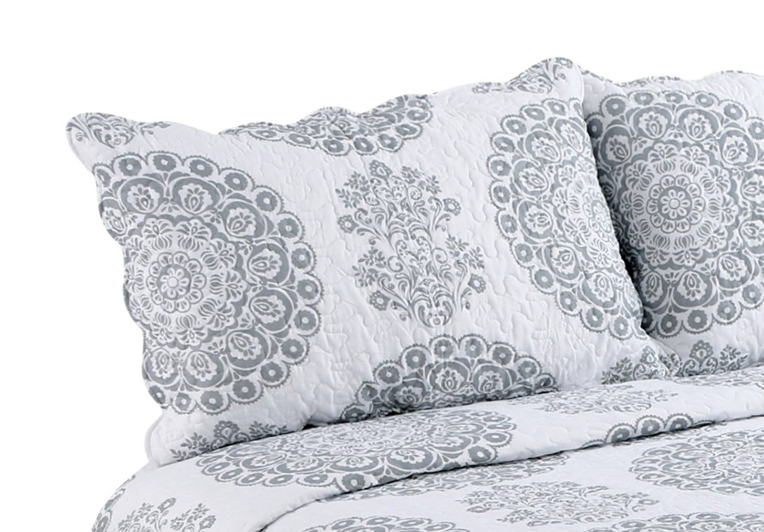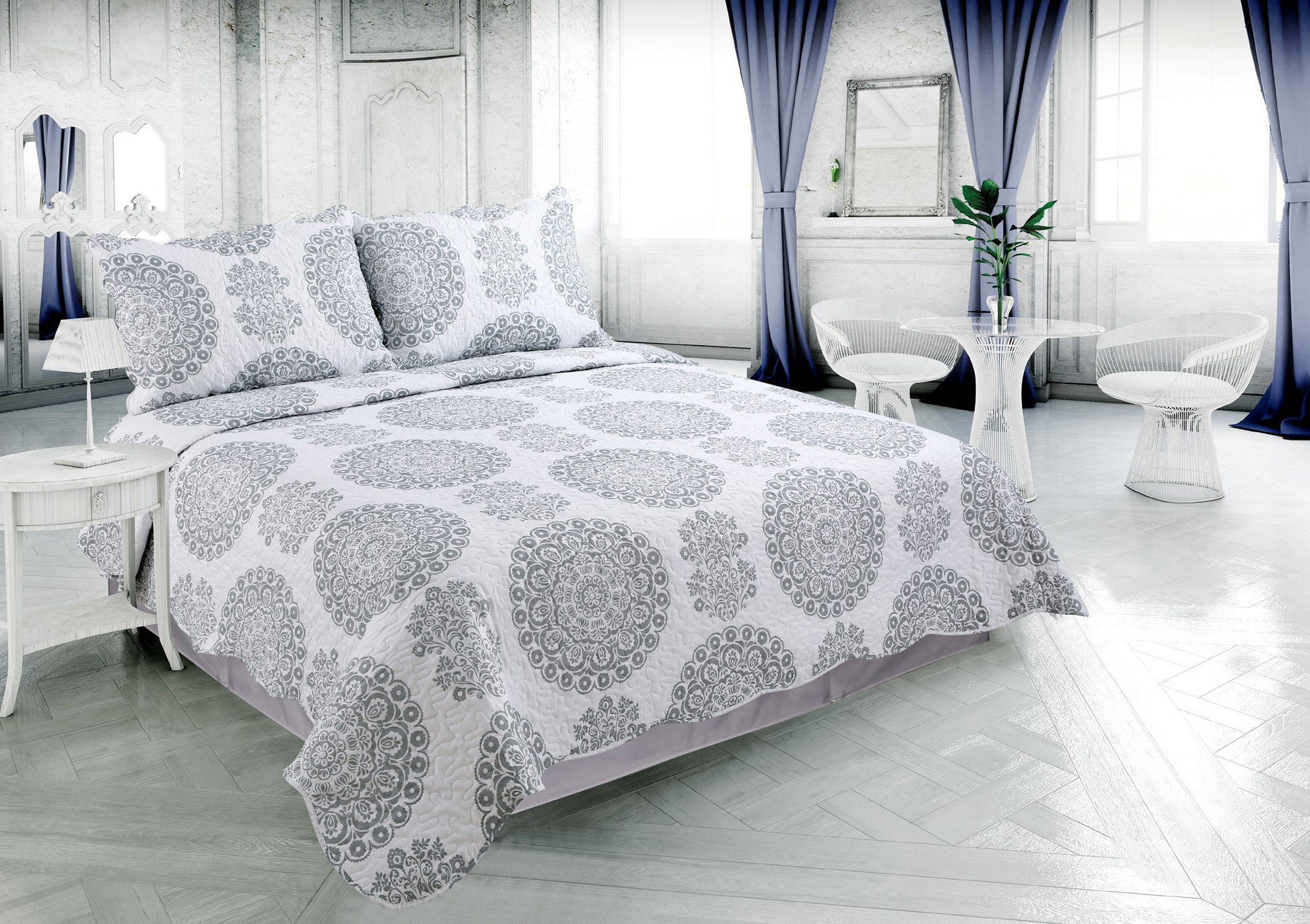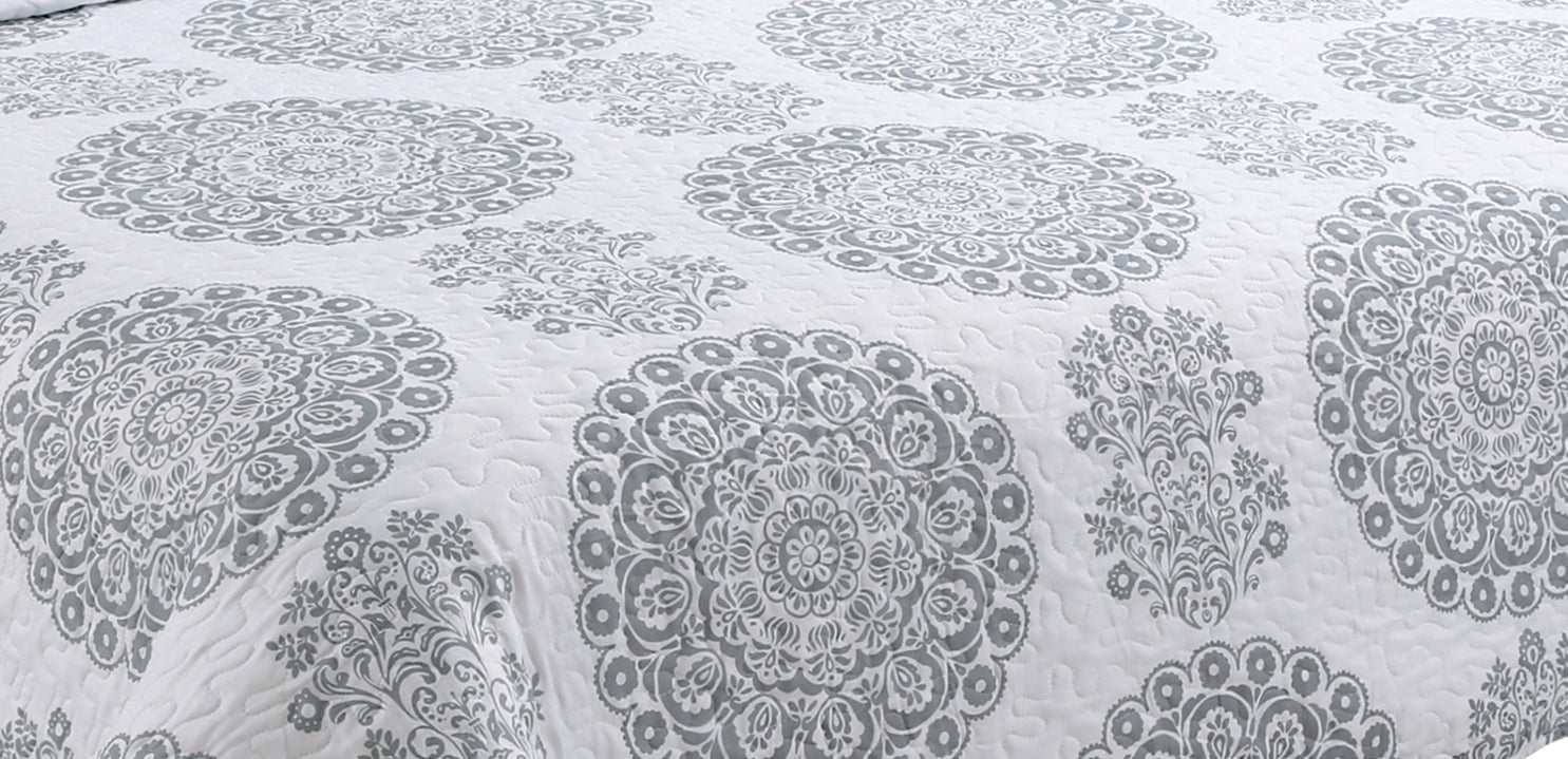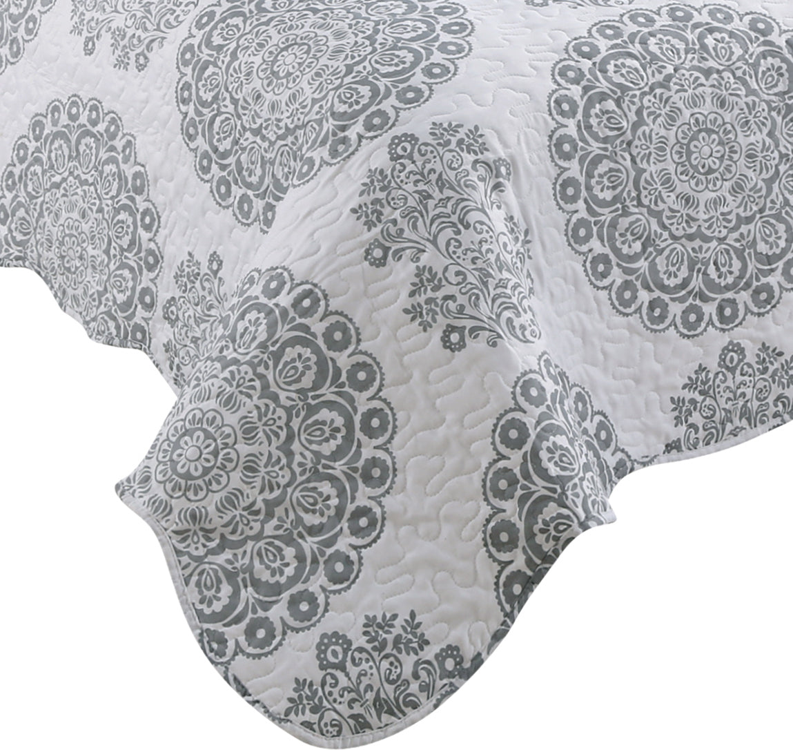 Printed Stitching Coverlet Bedspread Soft Bedding Summer Quilt Set, Grey Floral Mandala