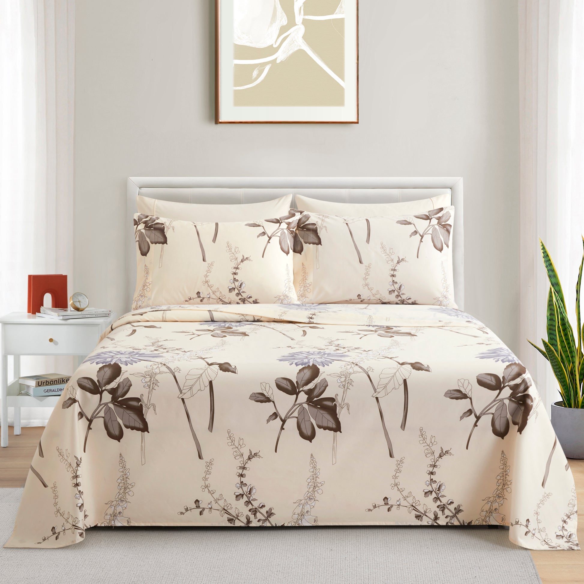 Design - This Flower Patterns have Cream Base with Blue Large Chrysanthemum, and Brown Branch and Leaves Decorated on It. Printed Matching Design on the 2 Pillowcases. Our 120 GSM Double Brushed Polyester and Rayon from Bamboo is Soft and Durable and Features a Breathable Weave