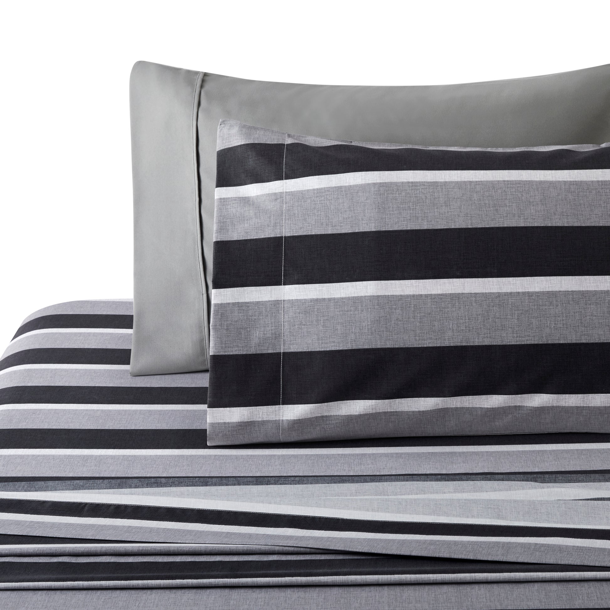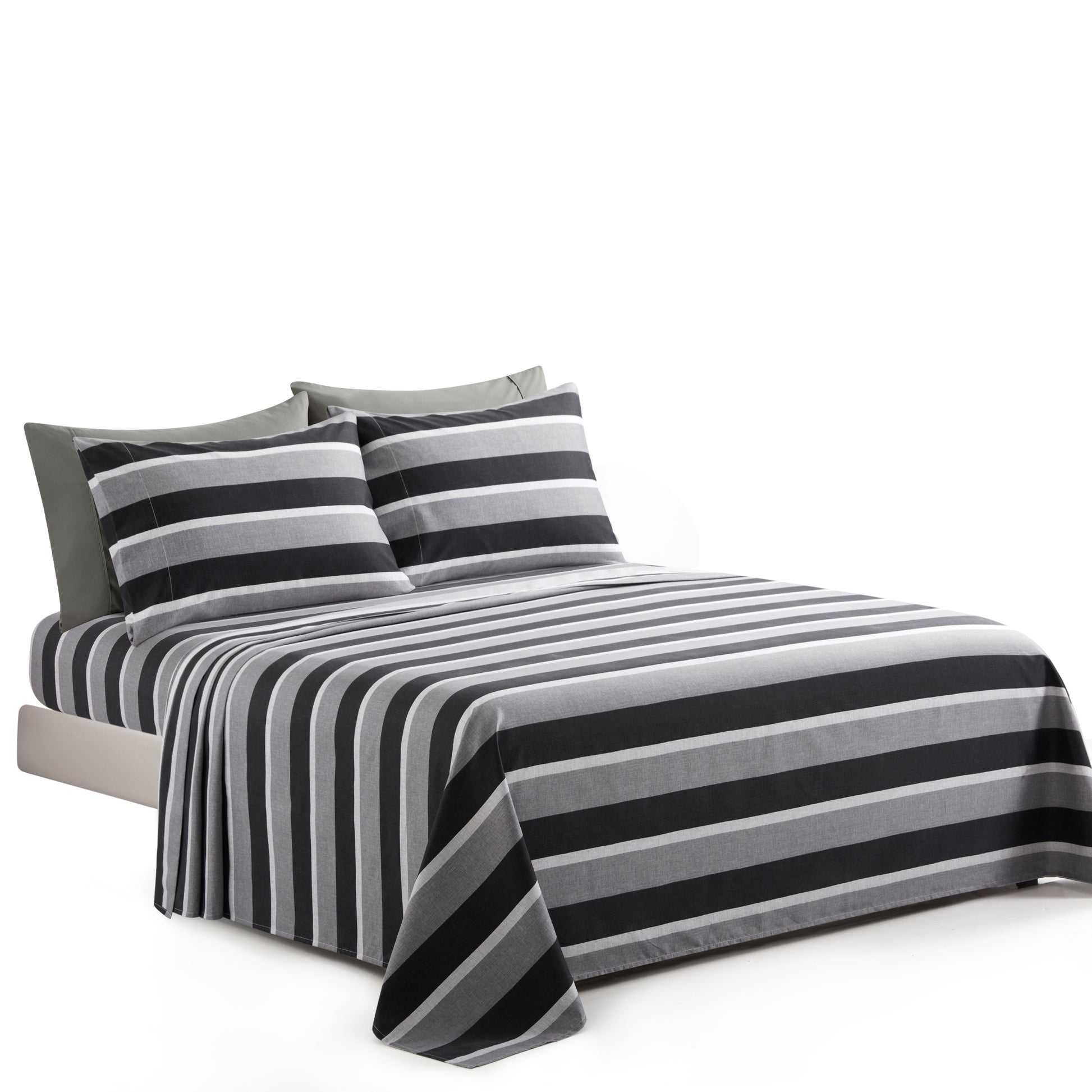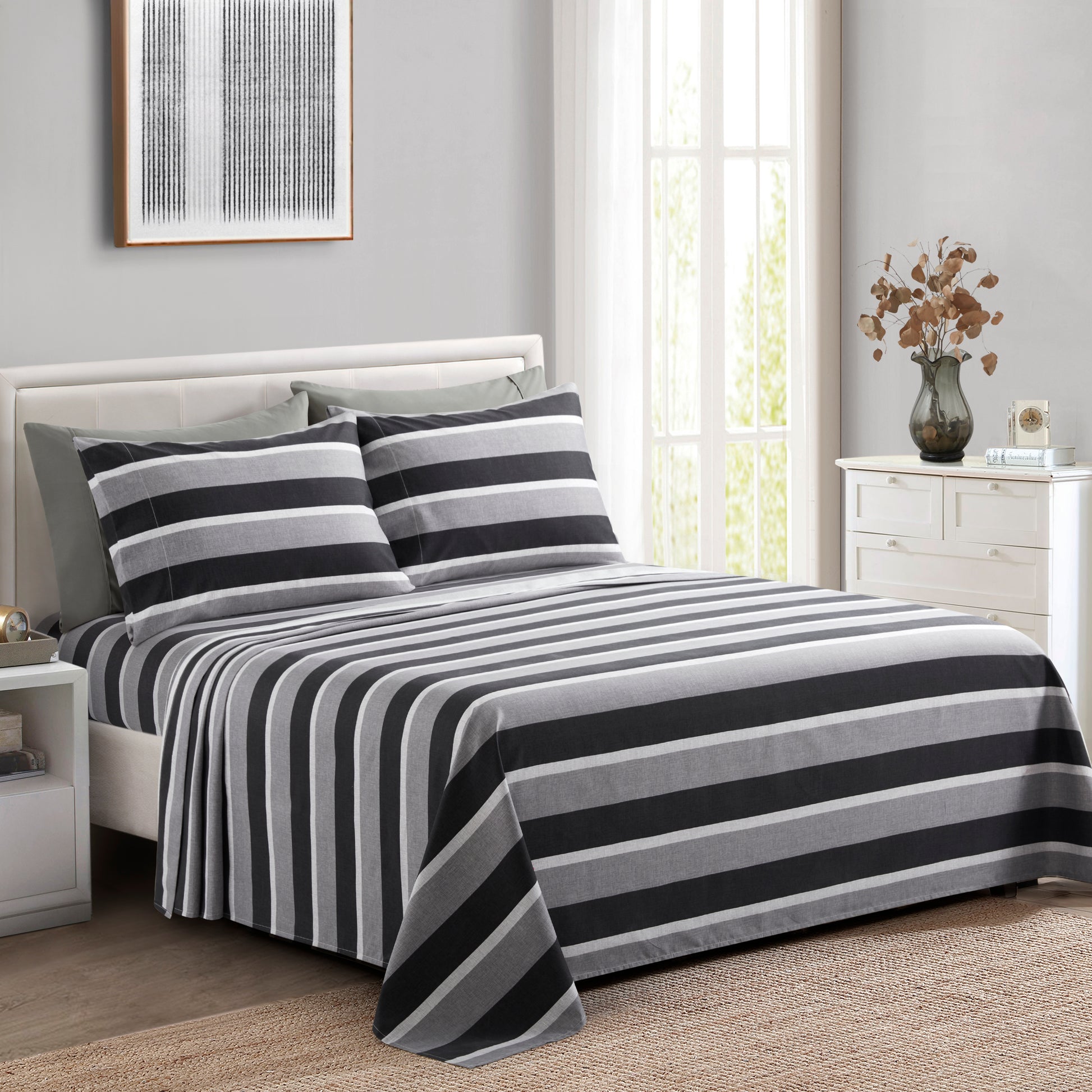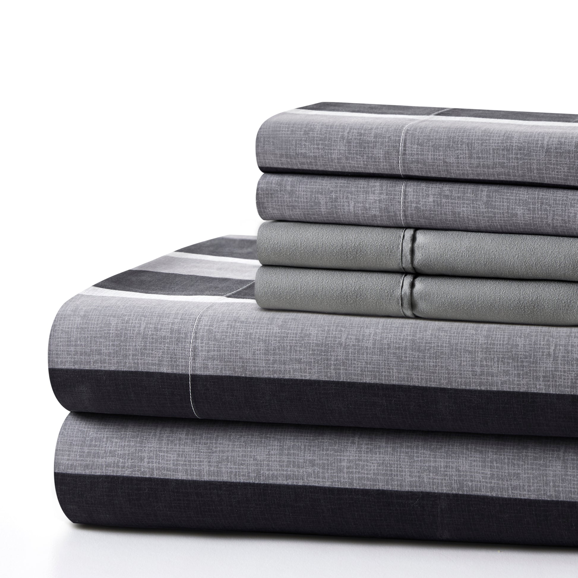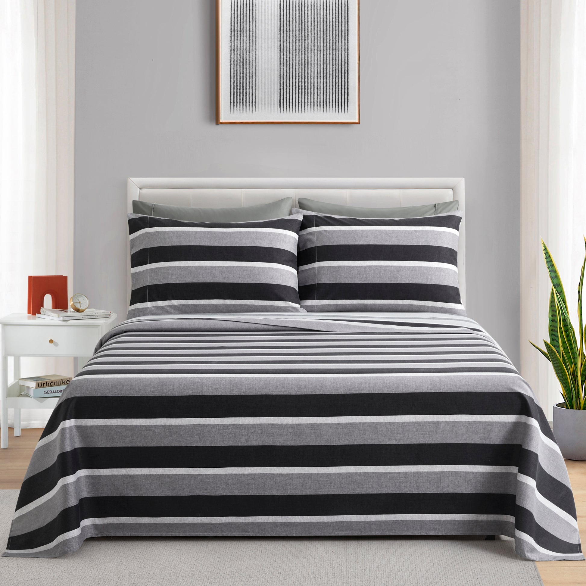 Printed Rayon from Bamboo Soft Deep Pocket Bedding All Season Sheet Set, Black Grey Stripes