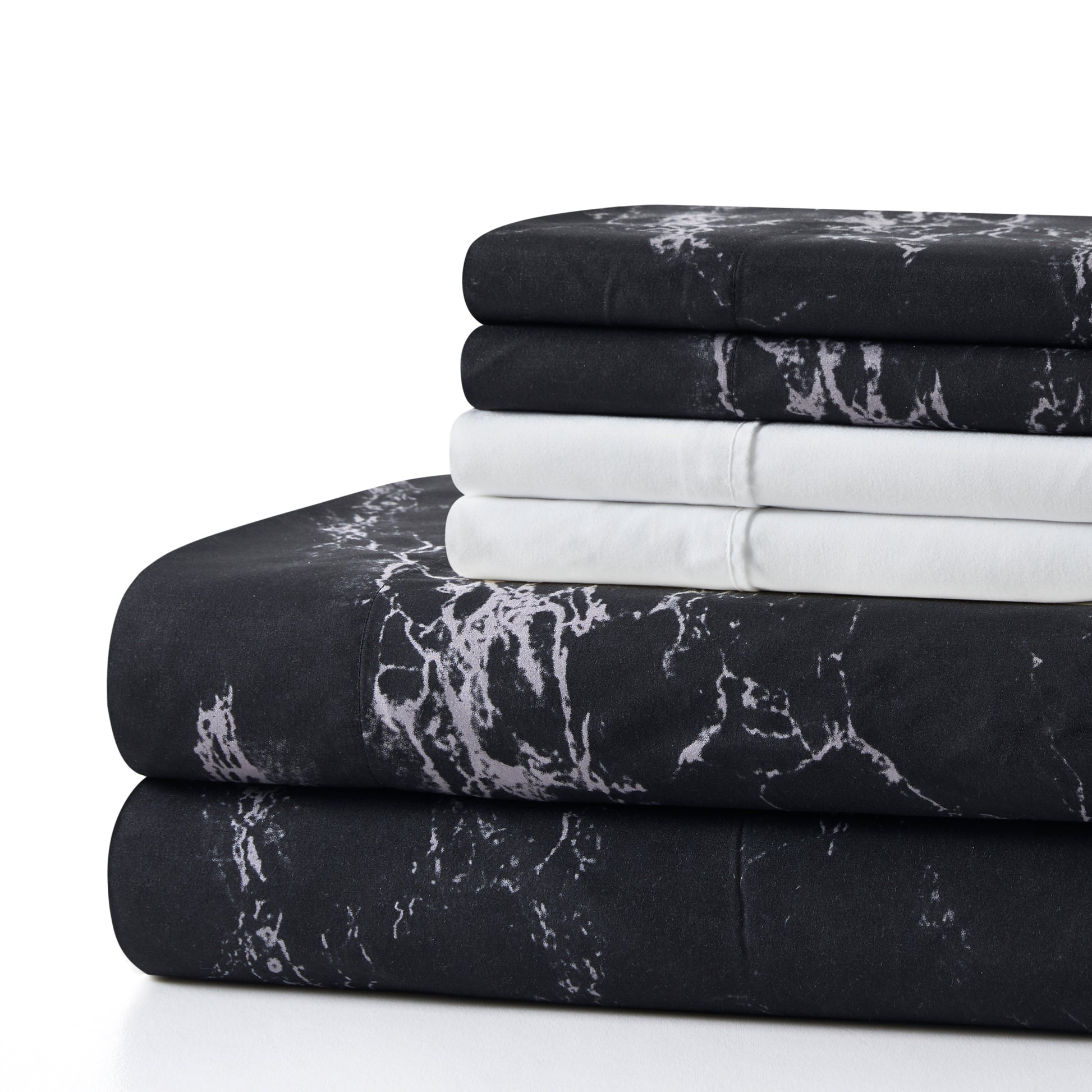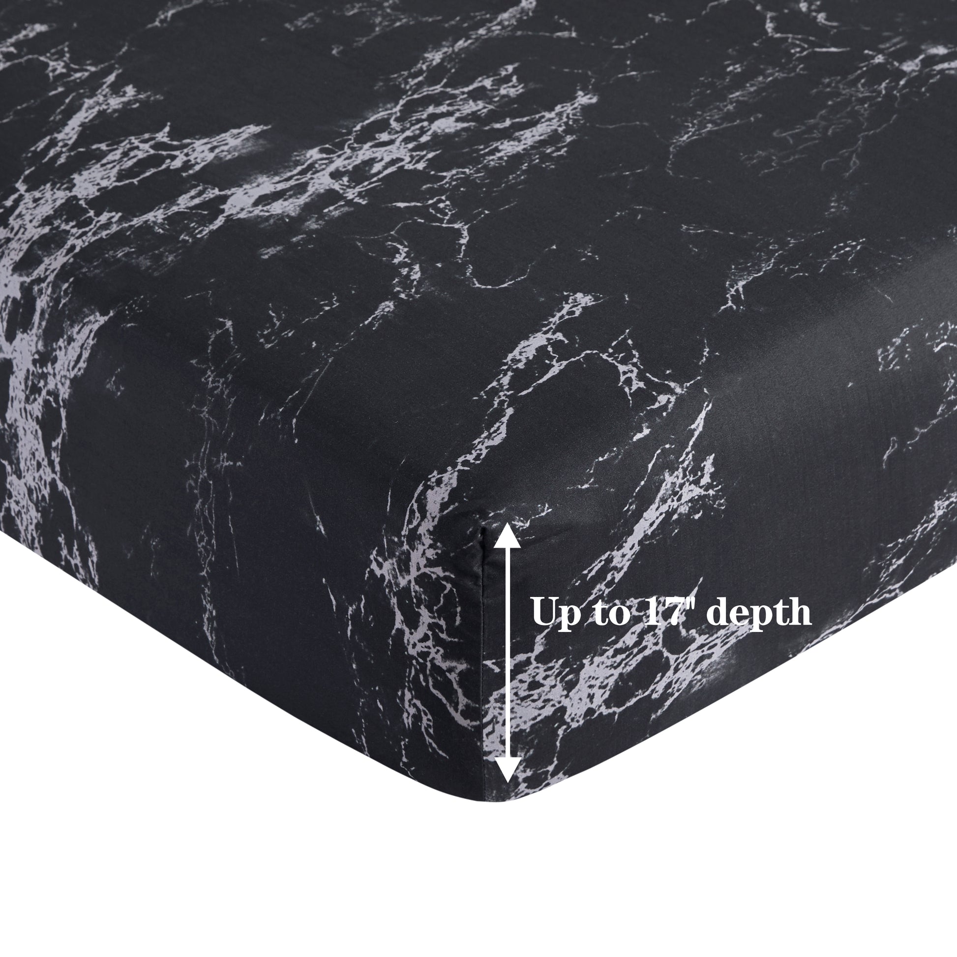Printed Rayon from Bamboo Soft Deep Pocket Bedding All Season Sheet Set, Modern Black Marble