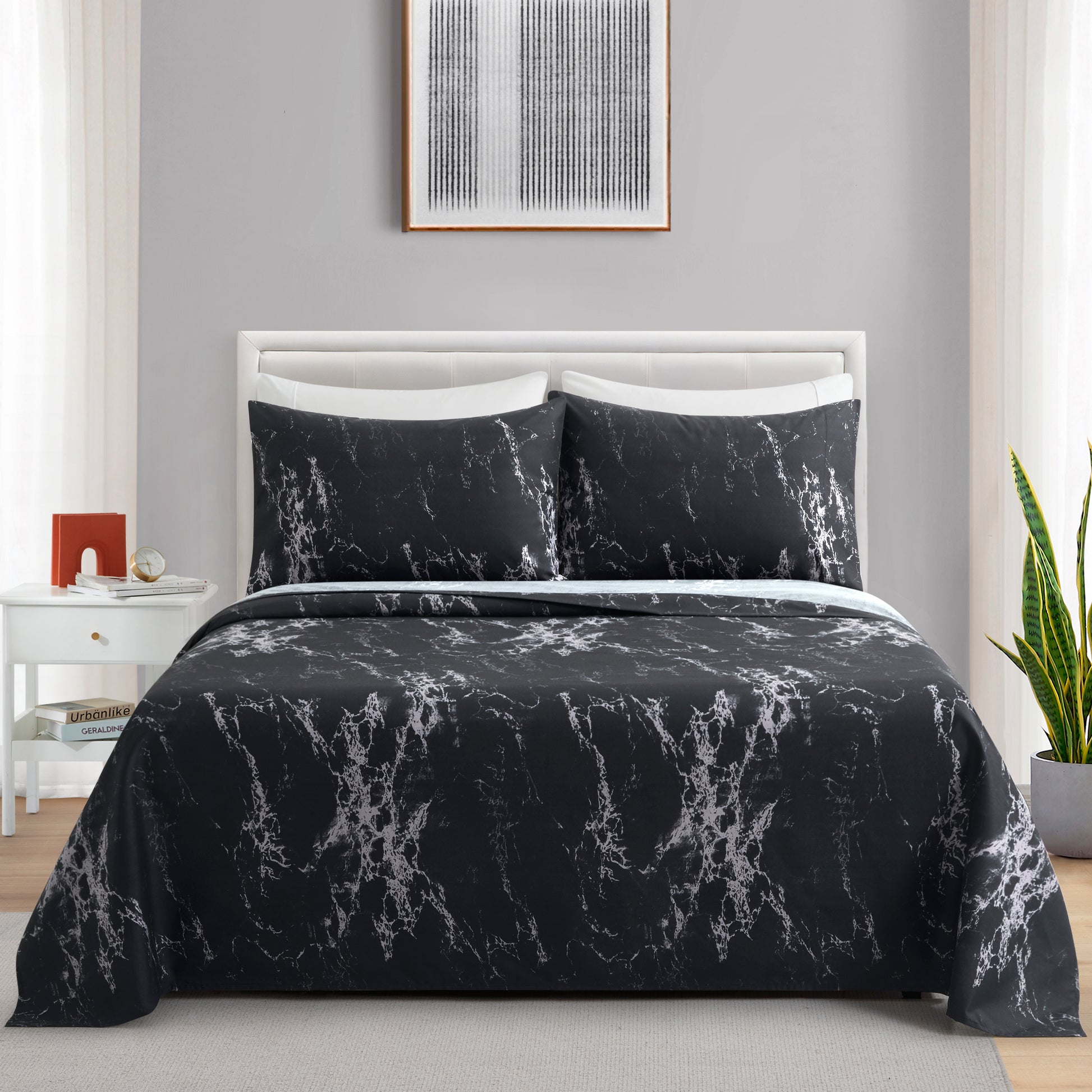 Design - This Modern Natural Patterns Have Black Base with Grey Marble Decorated on It. Printed Matching Design on the 2 Pillowcases. Our 120 GSM Double Brushed Polyester and Rayon from Bamboo is Soft and Durable and Features a Breathable Weave