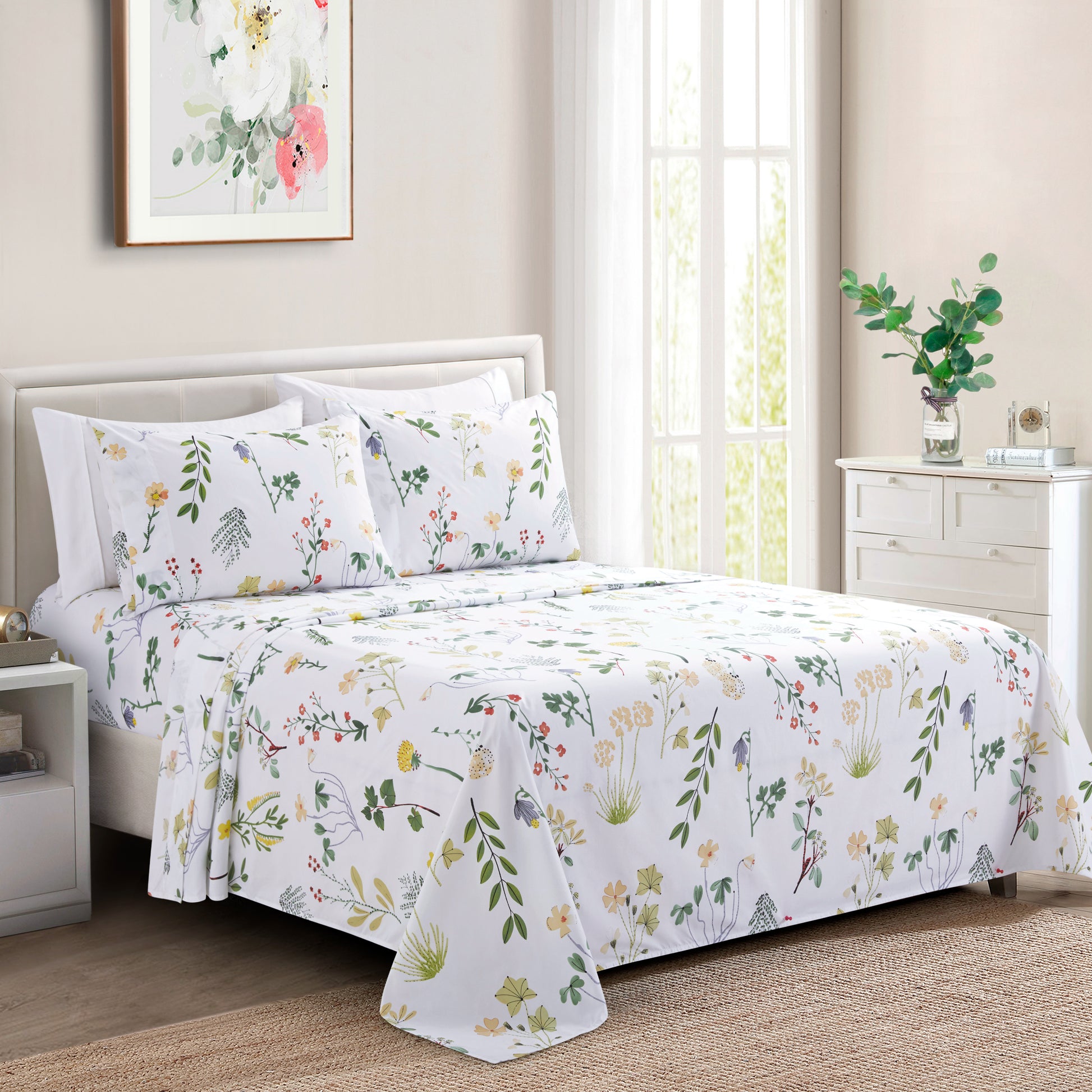 Printed Rayon from Bamboo Soft Deep Pocket Bedding All Season Sheet Set, Colorful Floral Forest