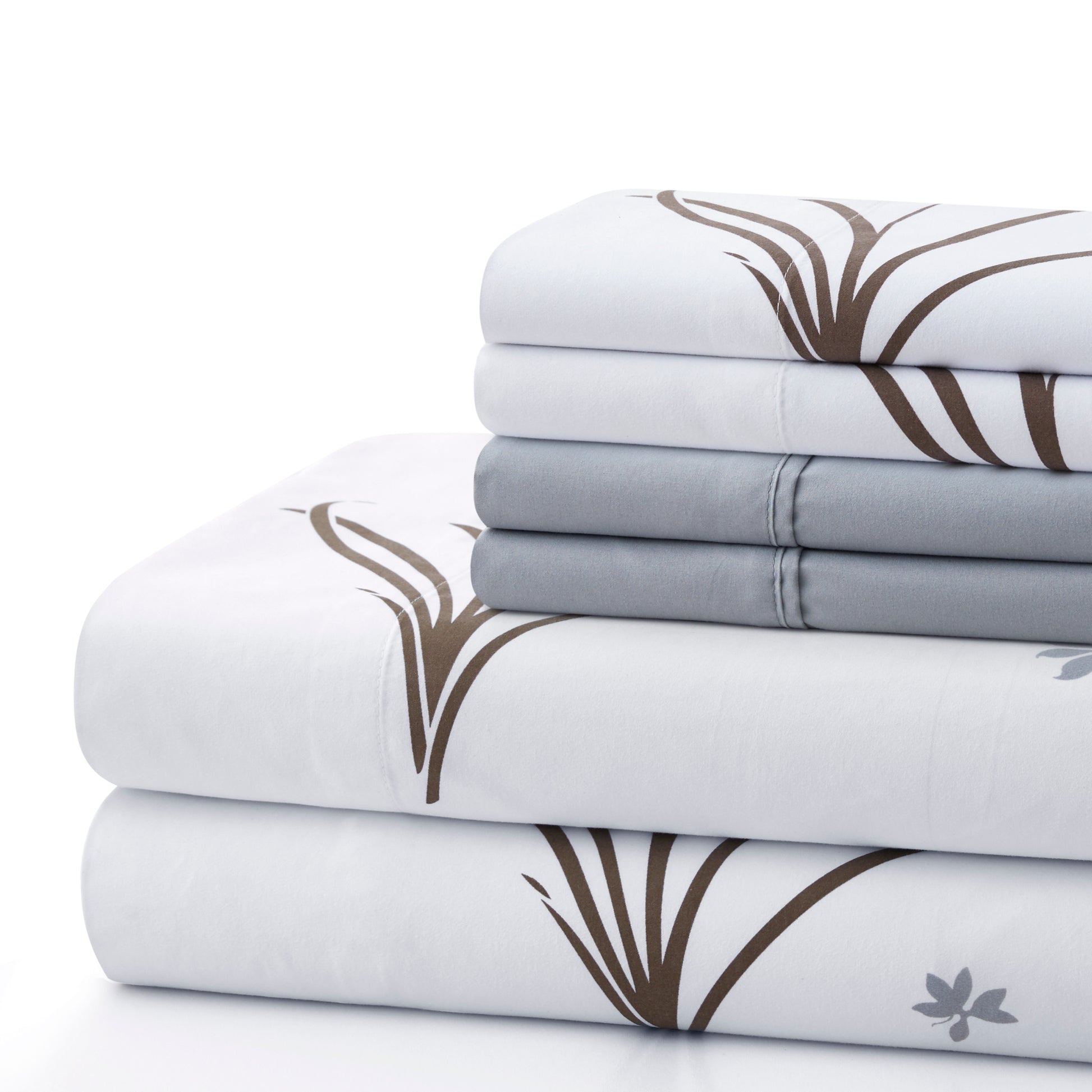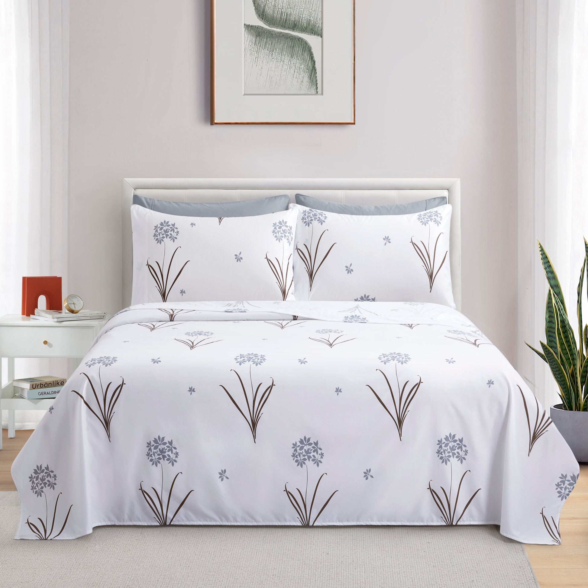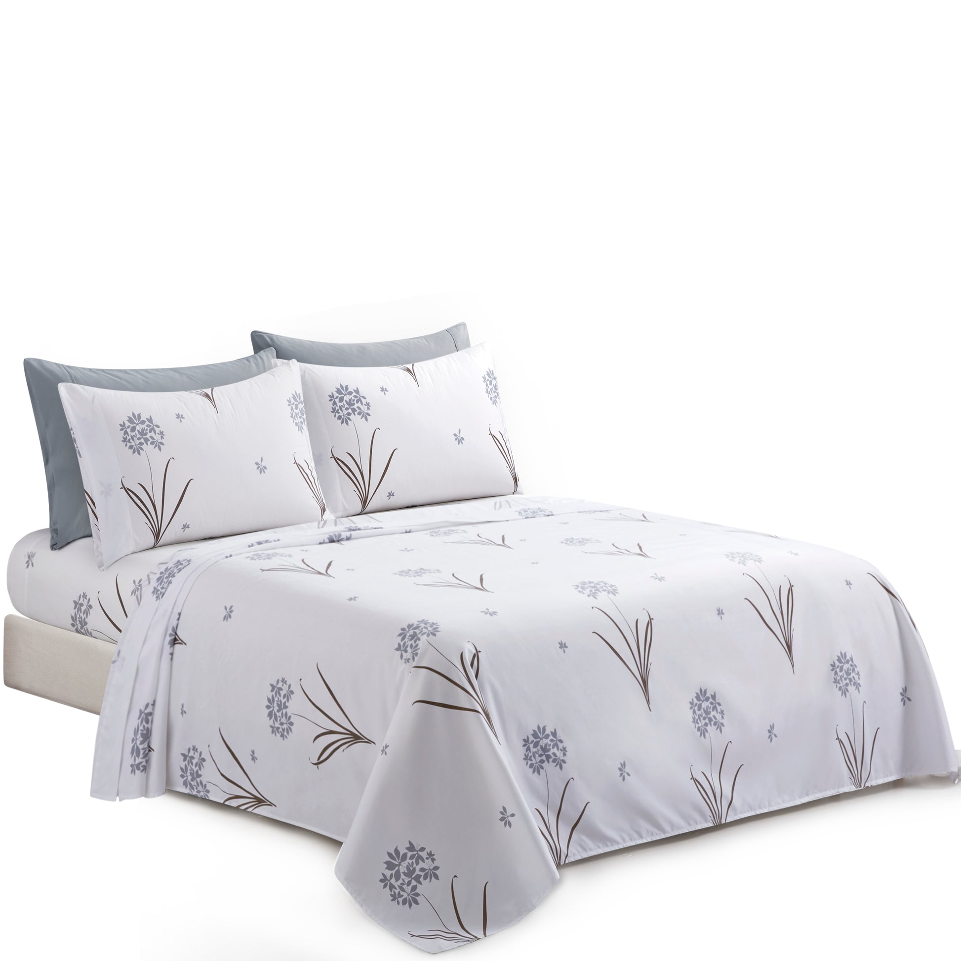 Design - This Modern Flowers Patterns Have White Base with Grey Flower and Leases Branch Decorated on It. Printed Matching Design on the 2 Pillowcases. Our 120 GSM Double Brushed Polyester and Rayon from Bamboo is Soft and Durable and Features a Breathable Weave