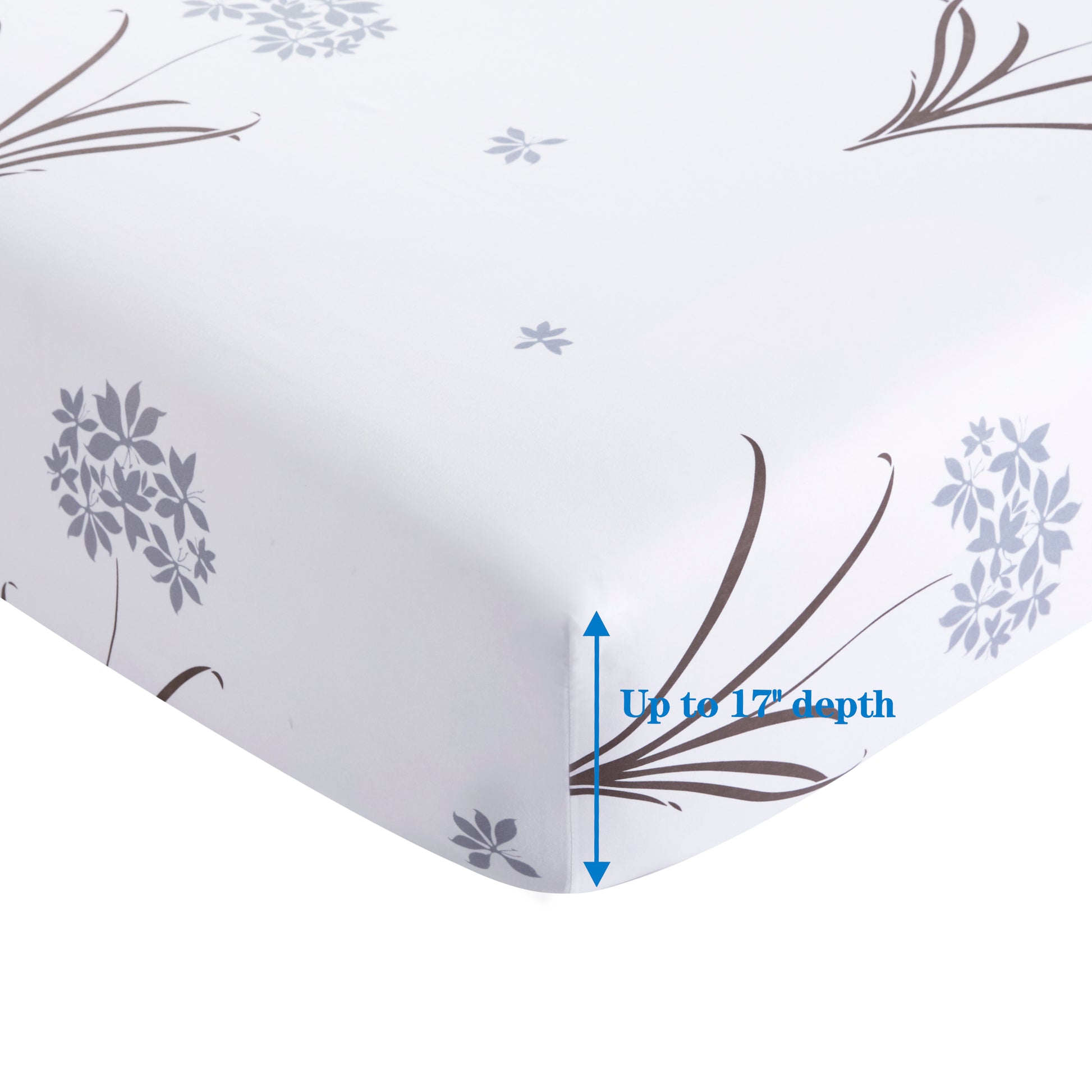 Printed Rayon from Bamboo Soft Deep Pocket Bedding All Season Sheet Set, Grey Hydrangea Floral