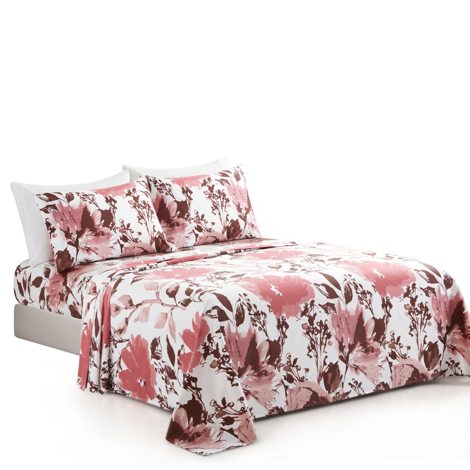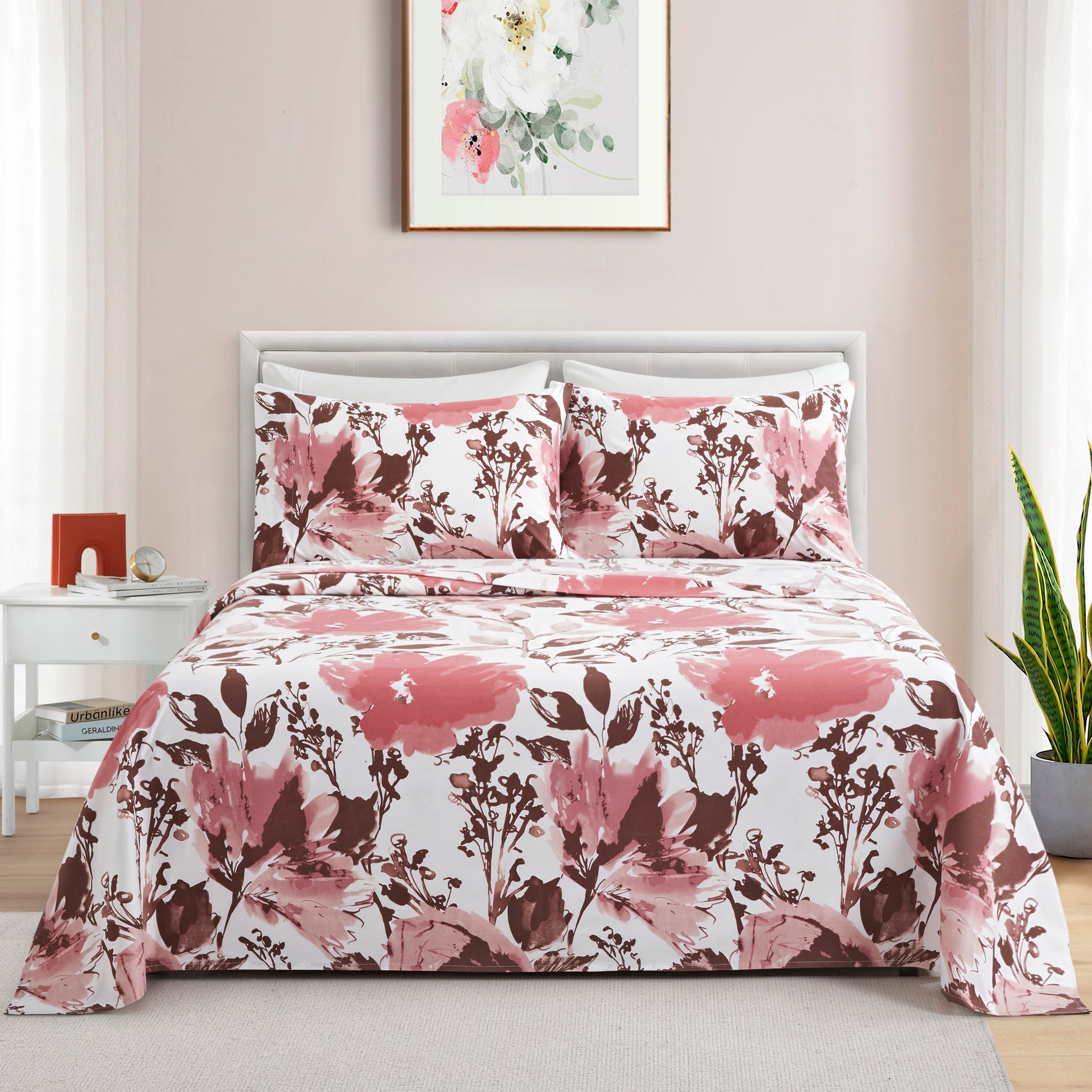 Design - This Modern Flower Patterns have White Base with Red Pink Flowers, and Brown Branch and Leaves Decorated on It. Printed Matching Design on the 2 Pillowcases. Our 120 GSM Double Brushed Polyester and Rayon from Bamboo is Soft and Durable and Features a Breathable Weave