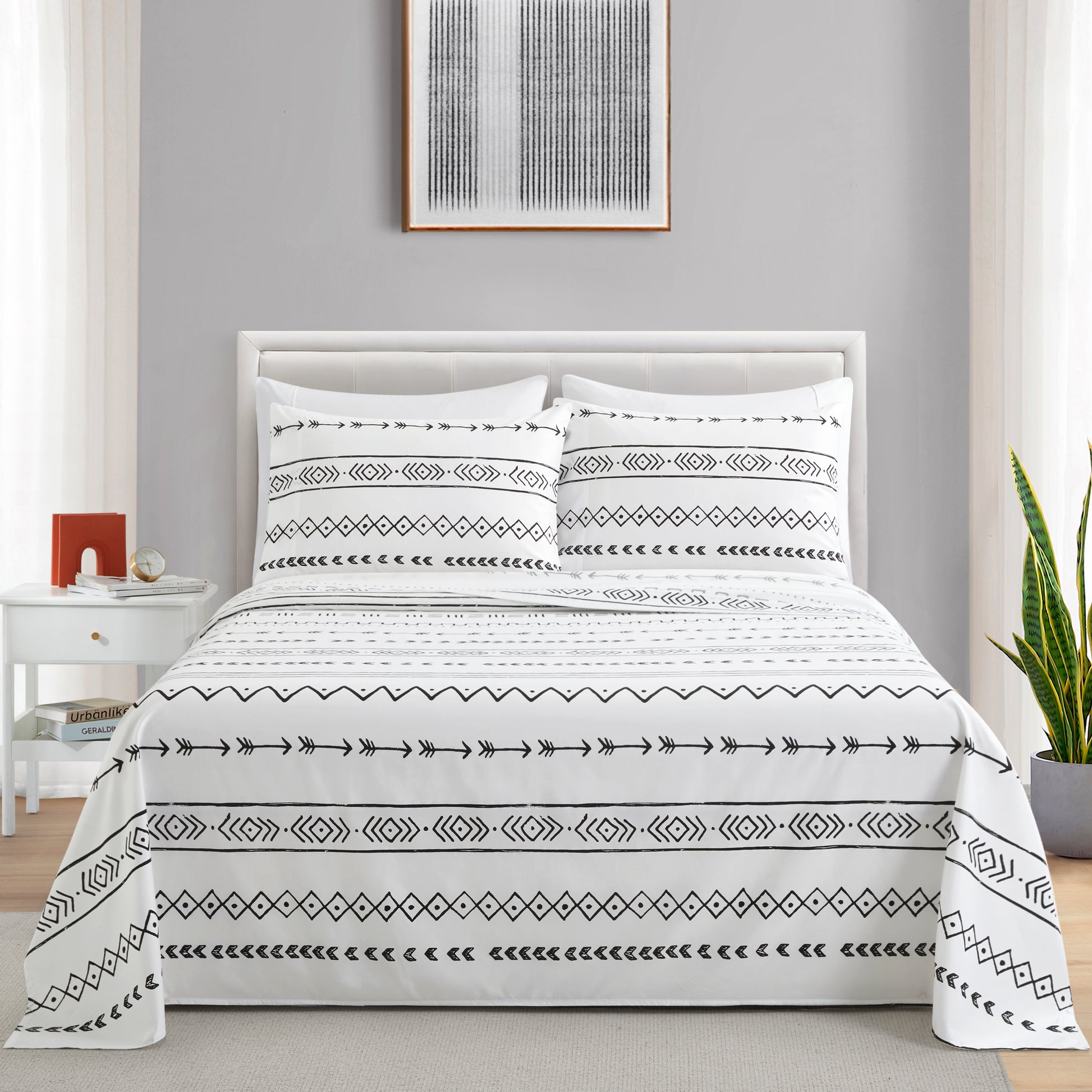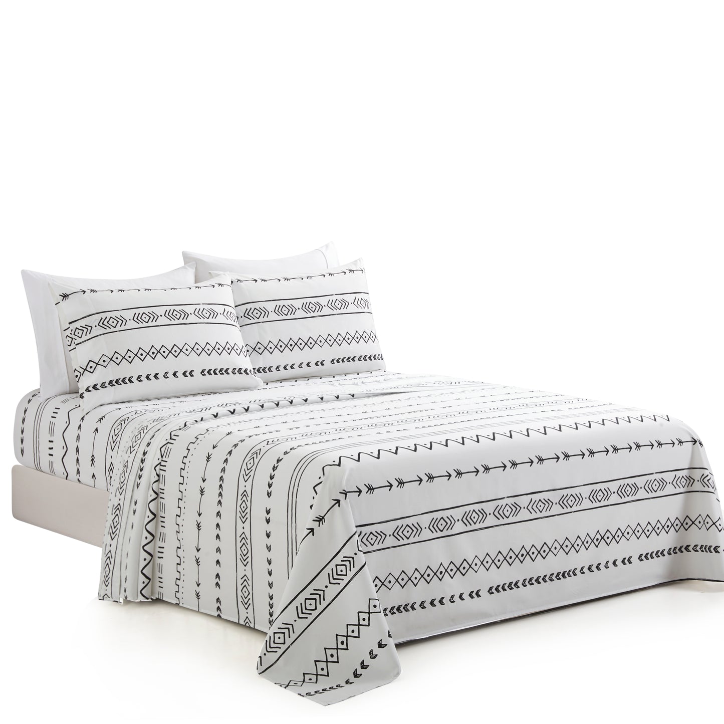 Design - This Simplify Modern Geometric Patterns have White Base with Black Rustic Native American Indian and Arrow Pattern Decorated on It. Printed Matching Design on the 2 Pillowcases. Our 120 GSM Double Brushed Polyester and Rayon from Bamboo is Soft and Durable and Features a Breathable Weave