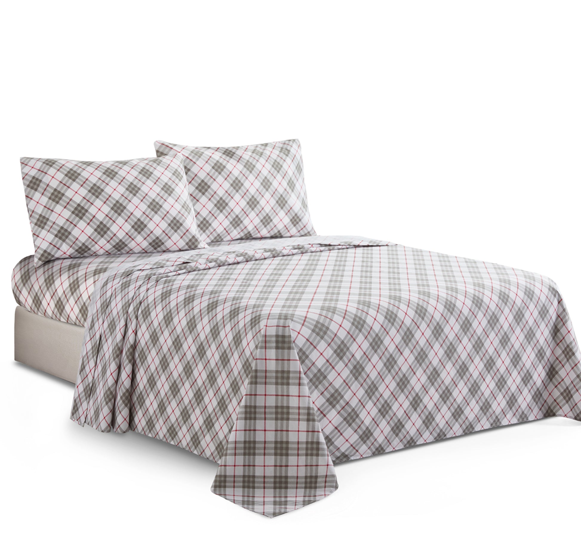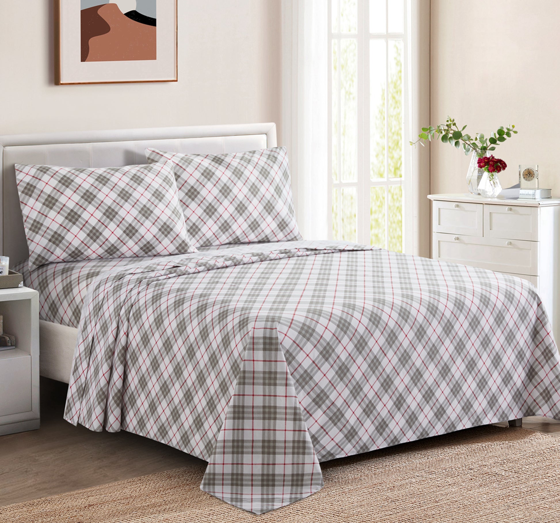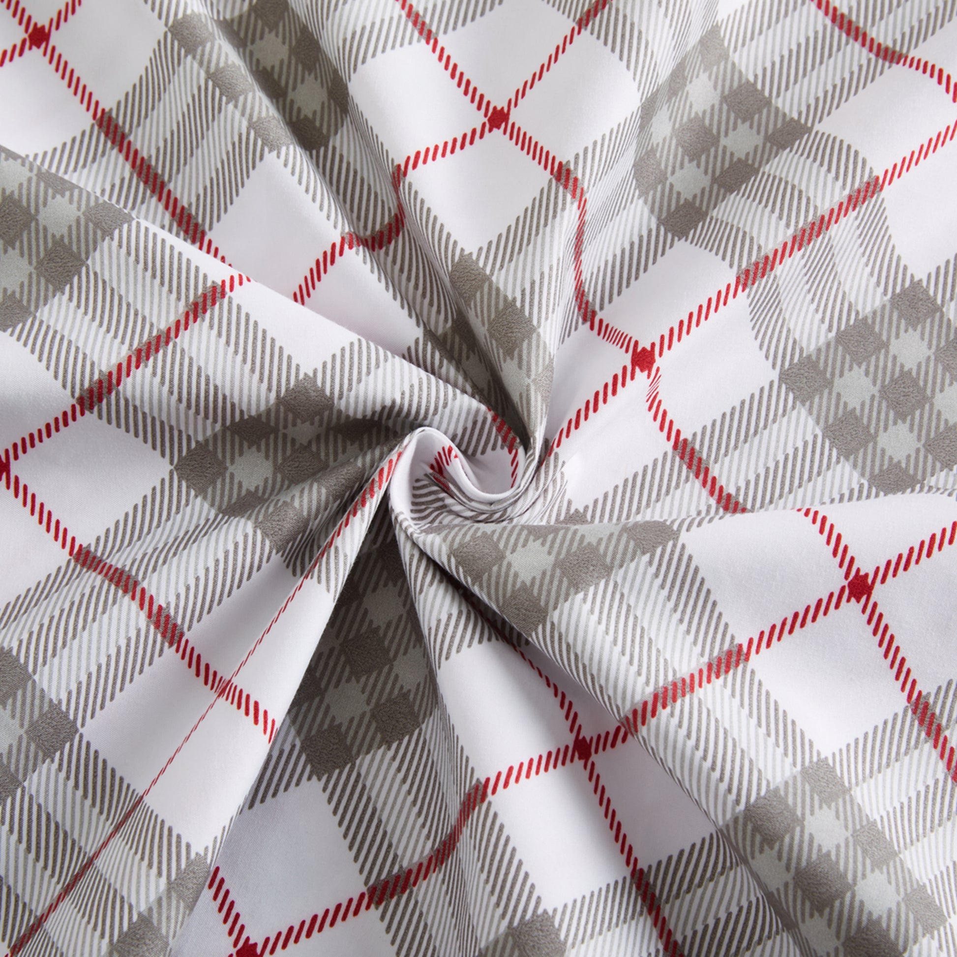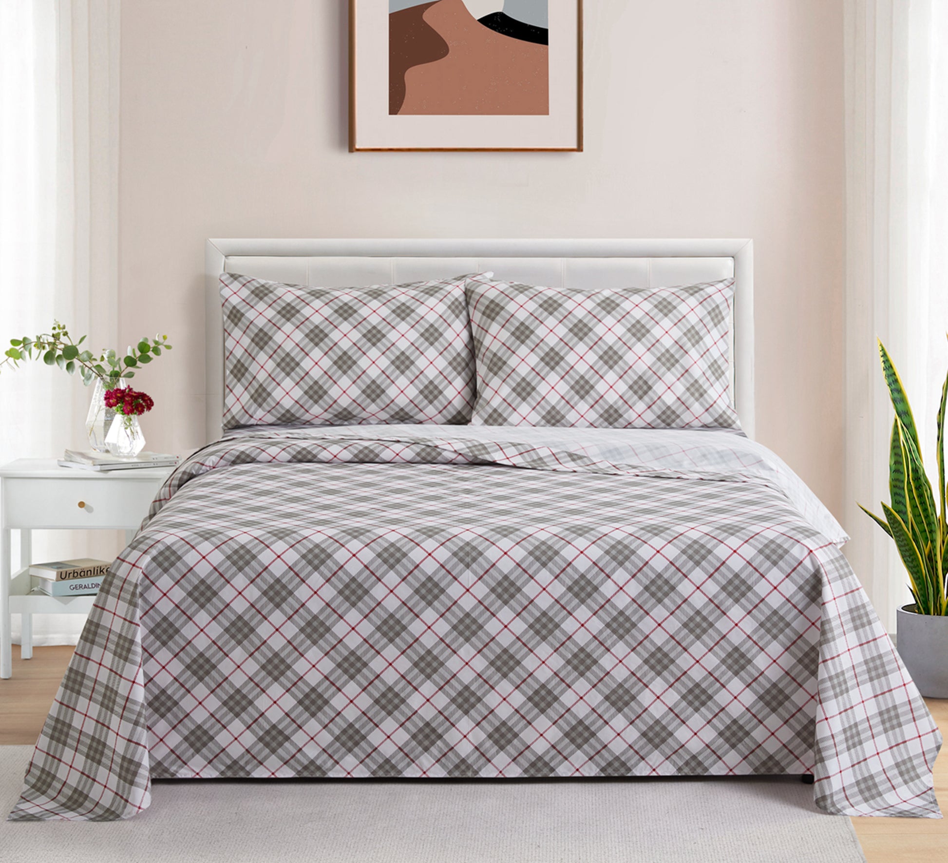 Design - This Modern Patterns have Grey Silver Plaid Red Tartan with White Base. Printed Matching Design on the Pillowcase. The Bedsheets Set is Made from Premium Long Staple Cotton and Ultra-Fine Weave Double Brushed Polyester is Super Soft Feel, Wrinkle Resistant