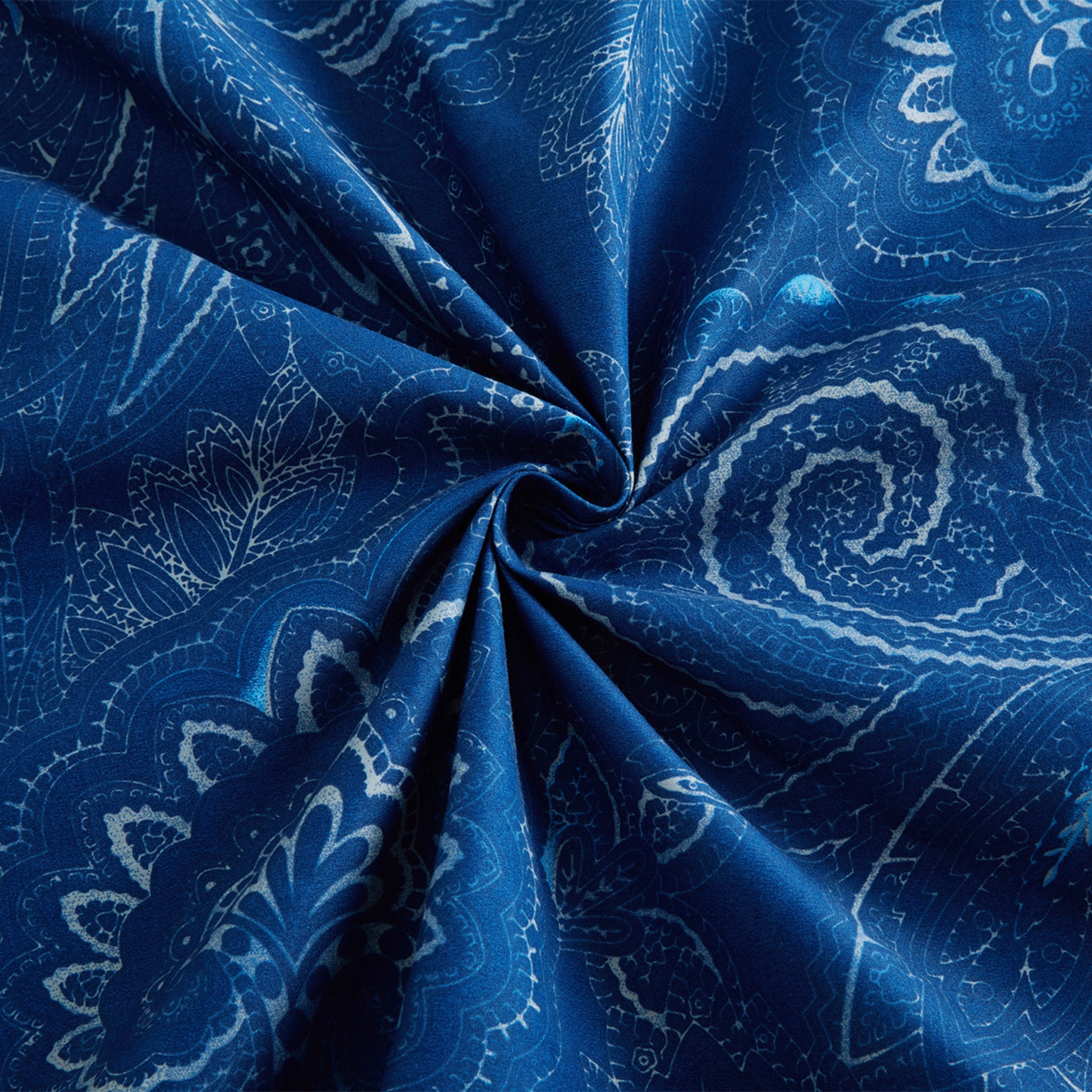 Design - This Modern Patterns have Ink-Wash Blue Floral and Leaves Paisley with Royal Blue Base. Printed Matching Design on the Pillowcase. The Bedsheets Set is Made from Premium Long Staple Cotton and Ultra-Fine Weave Double Brushed Polyester is Super Soft Feel, Wrinkle Resistant