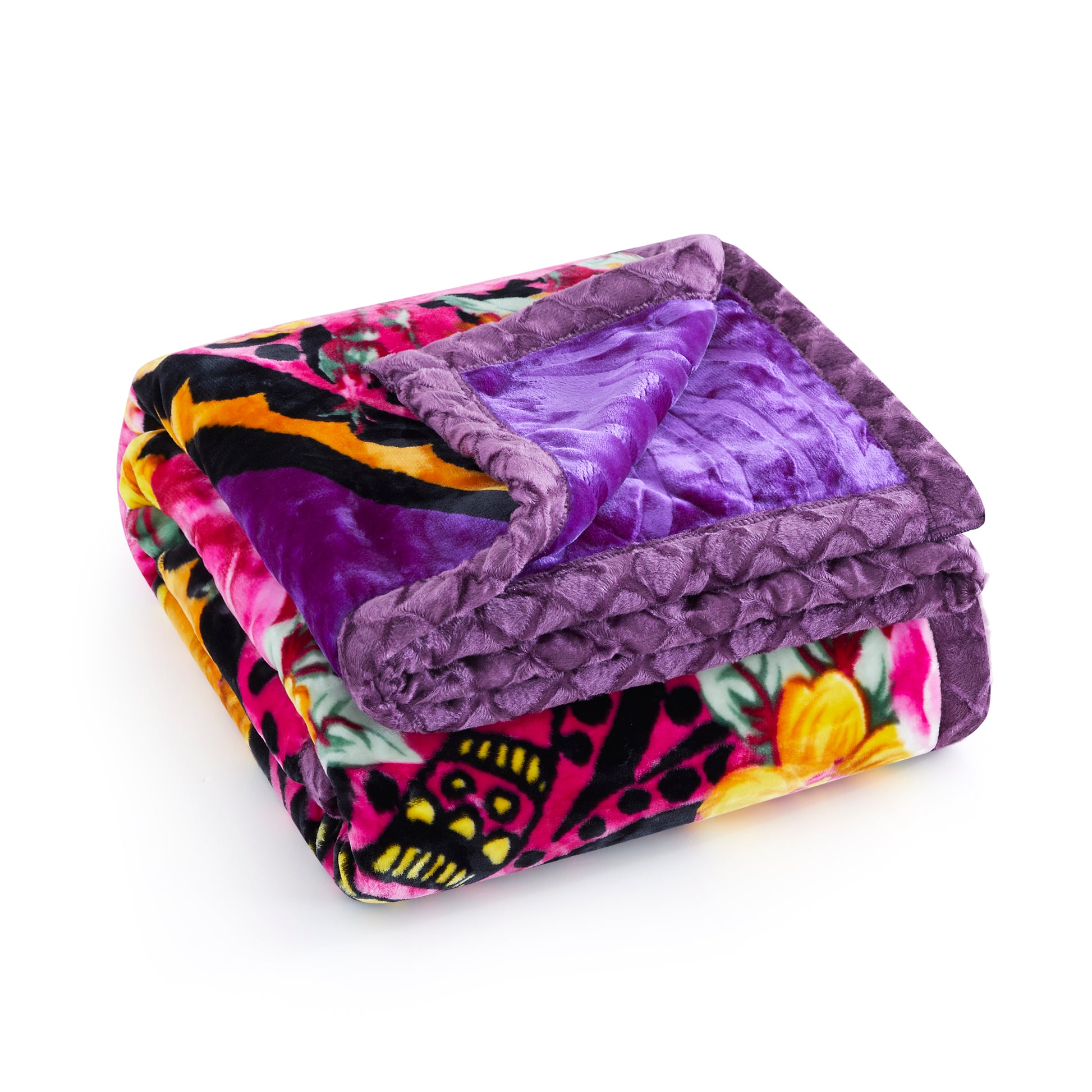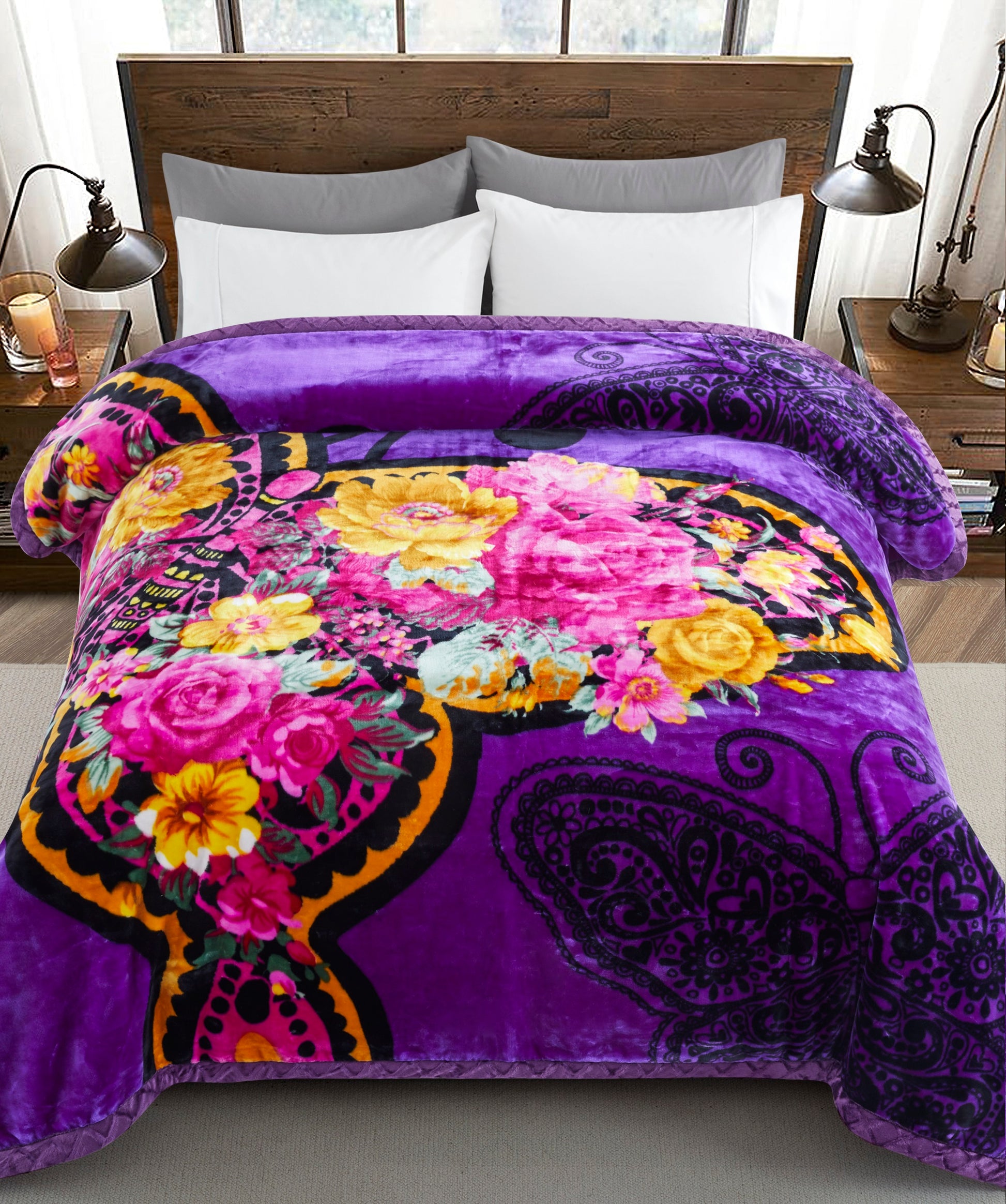 Design - This Design have Purple Base with a Huge Butterfly Decorated Yellow Red Pink Flower. Our 2-Ply Blanket Throw Can Hold More Air to Keep Warm When You're Sleeping, Time Goes by, Warmth Continues, at The Same Time. Elegant and Exquisite Designs Easily Coordinates or Enhances Existing Bedding or Home Décor, Adds an Upscale Look to any Room in the House