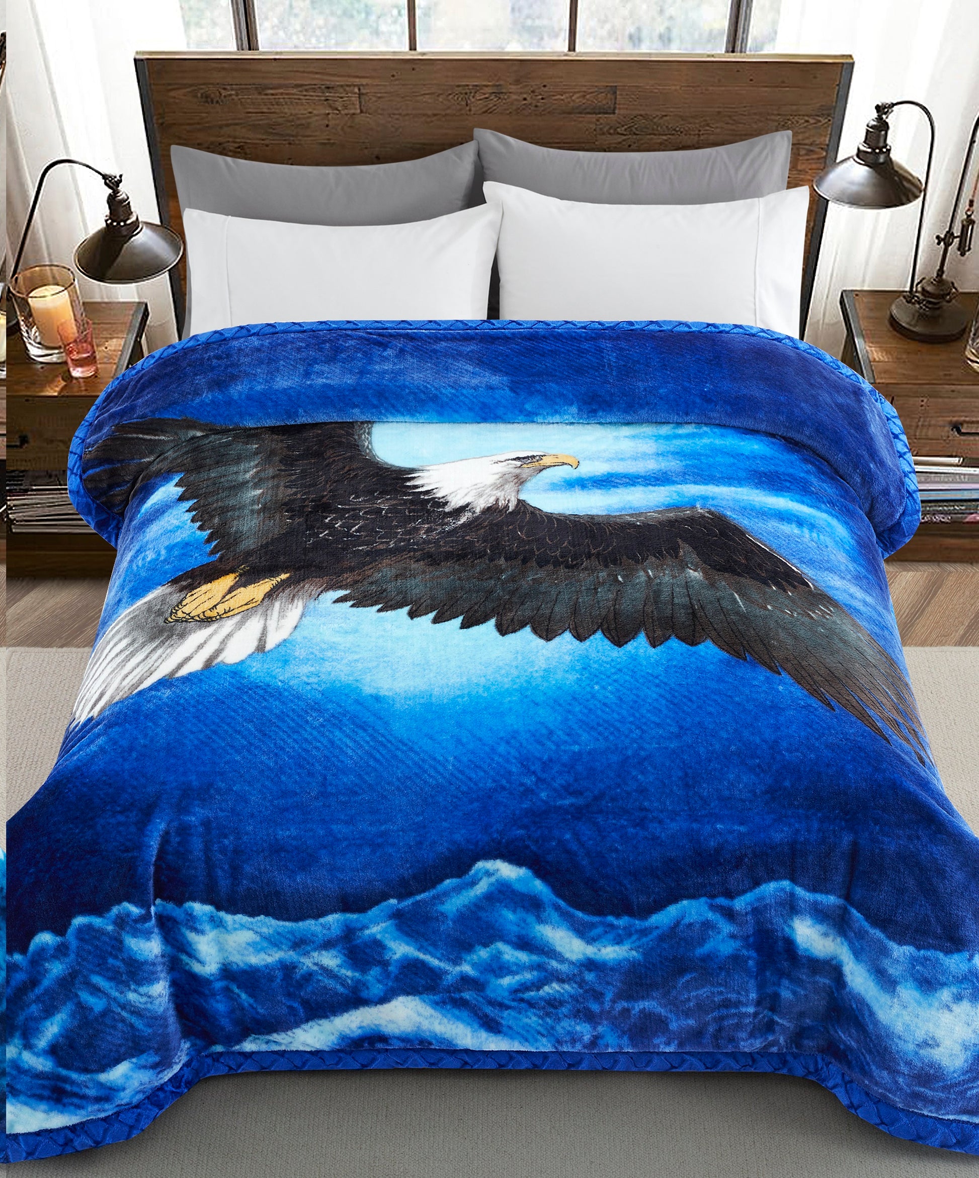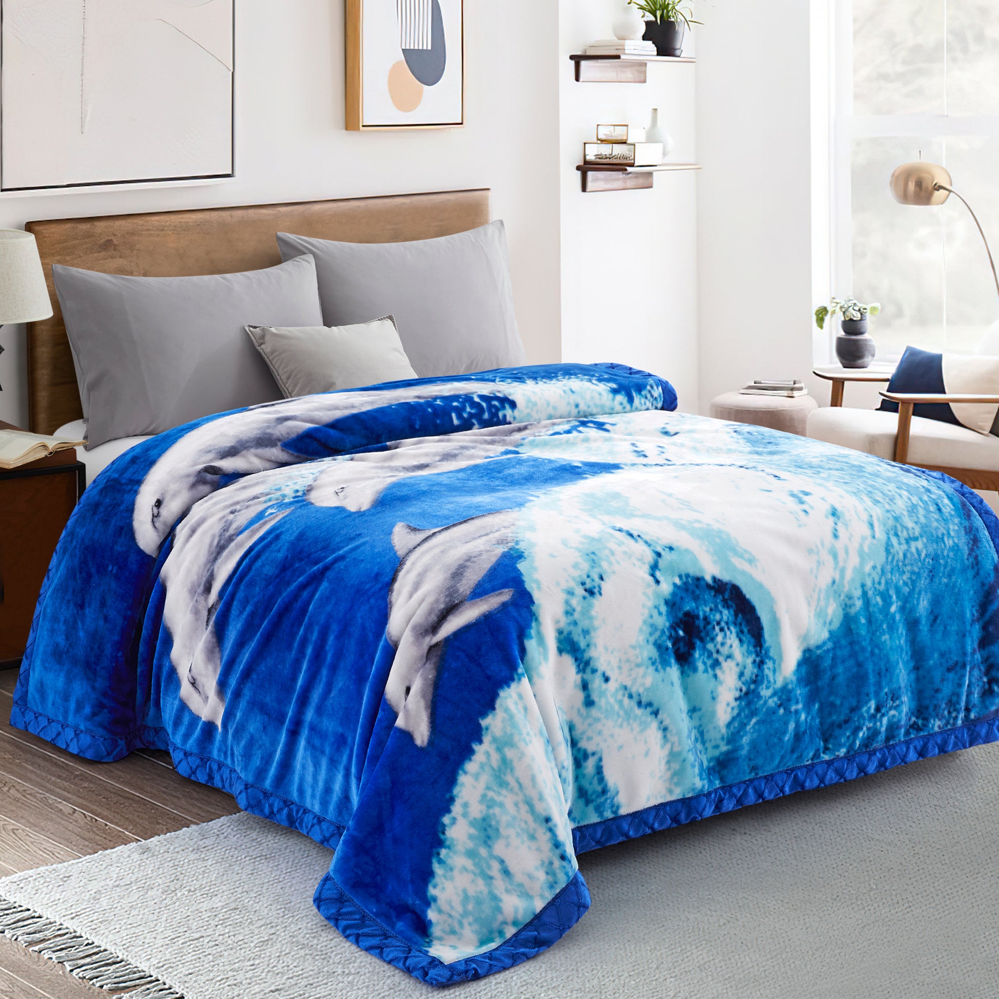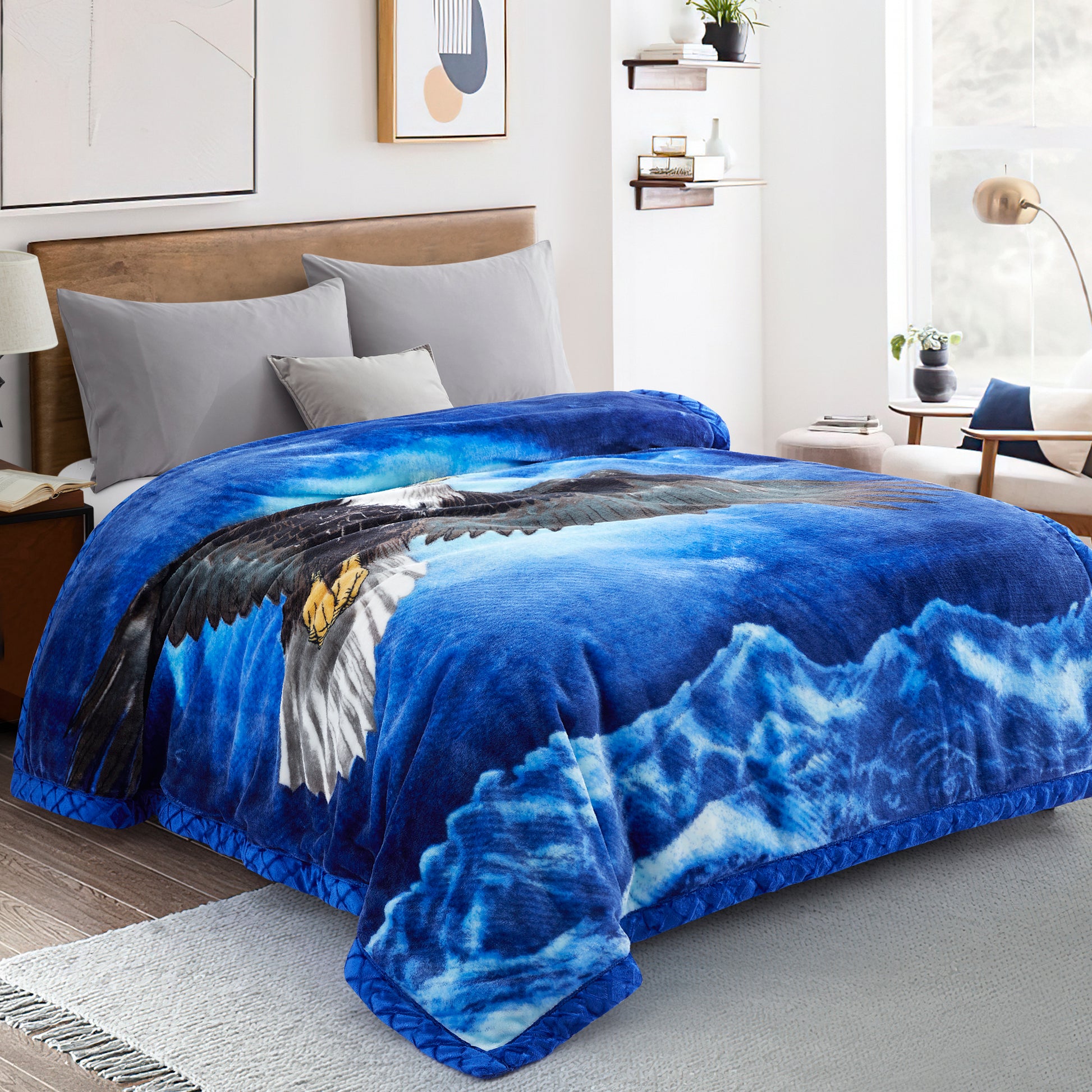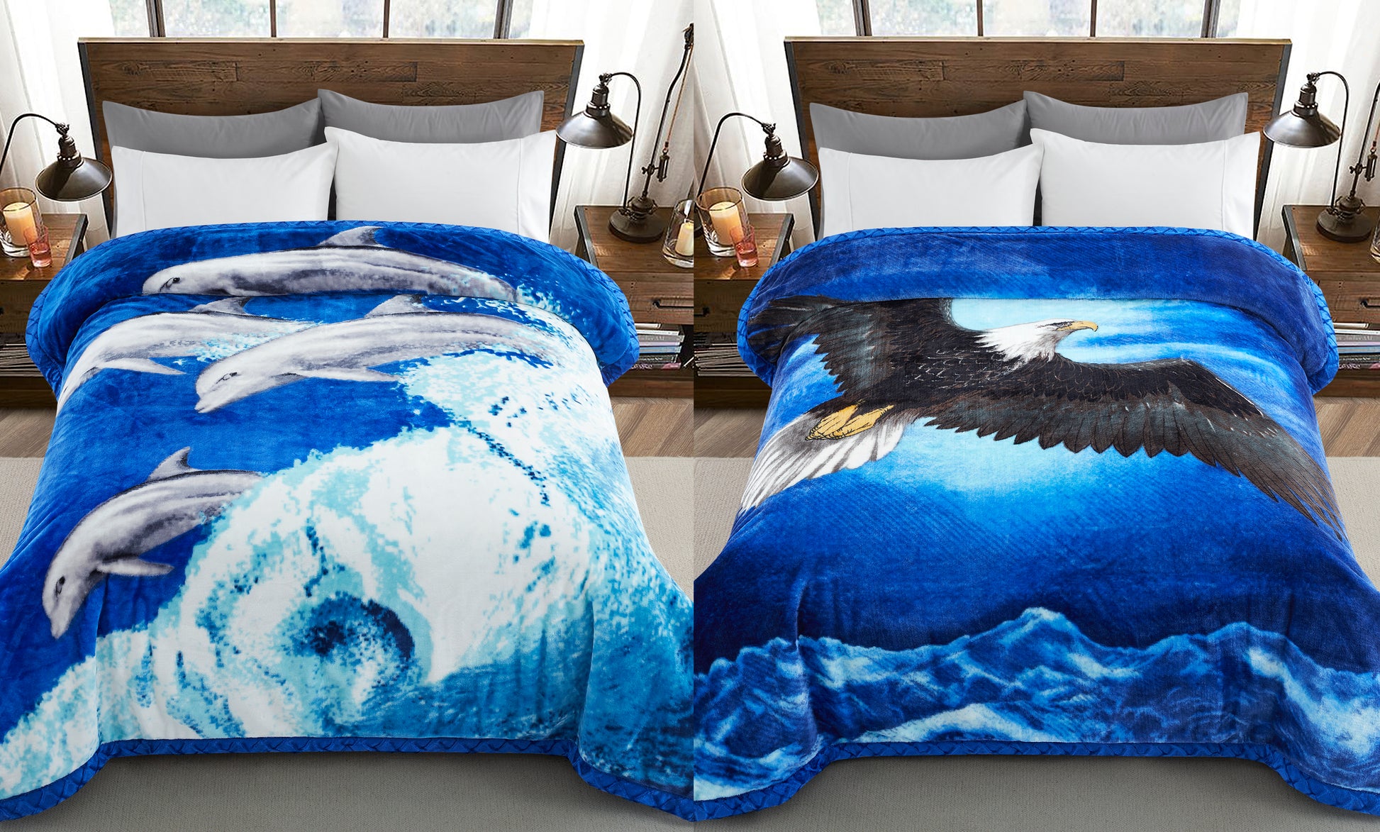 Printed Reversible Woven Fluffy Plush Soft Warm Korean Style 2 Ply Flannel Fleece Throw Animal Mink Blanket, 78" x 86" Bald Eagle Dolphin