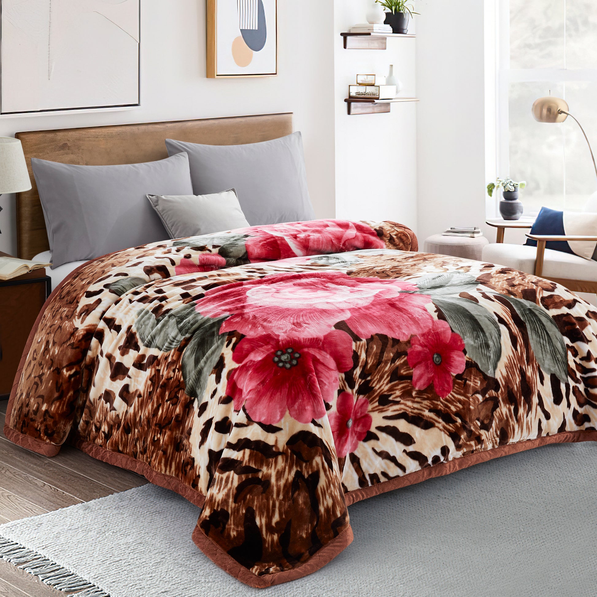 Design - This Design have Brown Leopard Base with Pink Red Pink Flower. Our 2-Ply Blanket Throw Can Hold More Air to Keep Warm When You're Sleeping, Time Goes by, Warmth Continues, at The Same Time. Elegant and Exquisite Designs Easily Coordinates or Enhances Existing Bedding or Home Décor, Adds an Upscale Look to any Room in the House